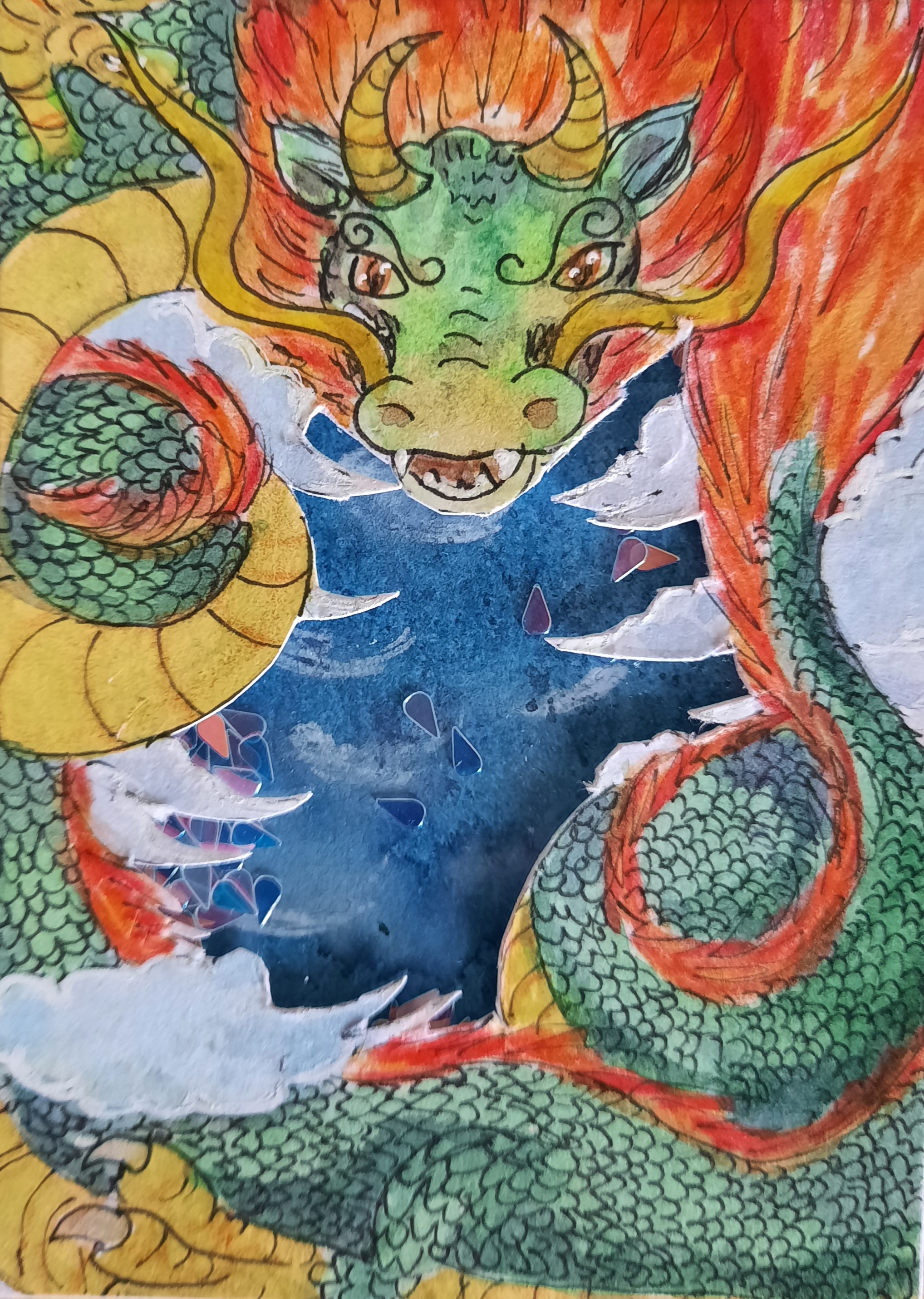 also man erkennt ihn, wenn man zweimal hinsieht⊠aber vielleicht kann man mit Buntstiften noch eine Schuppentextur andeuten? WÀre aber nur ein Vorschlag :)