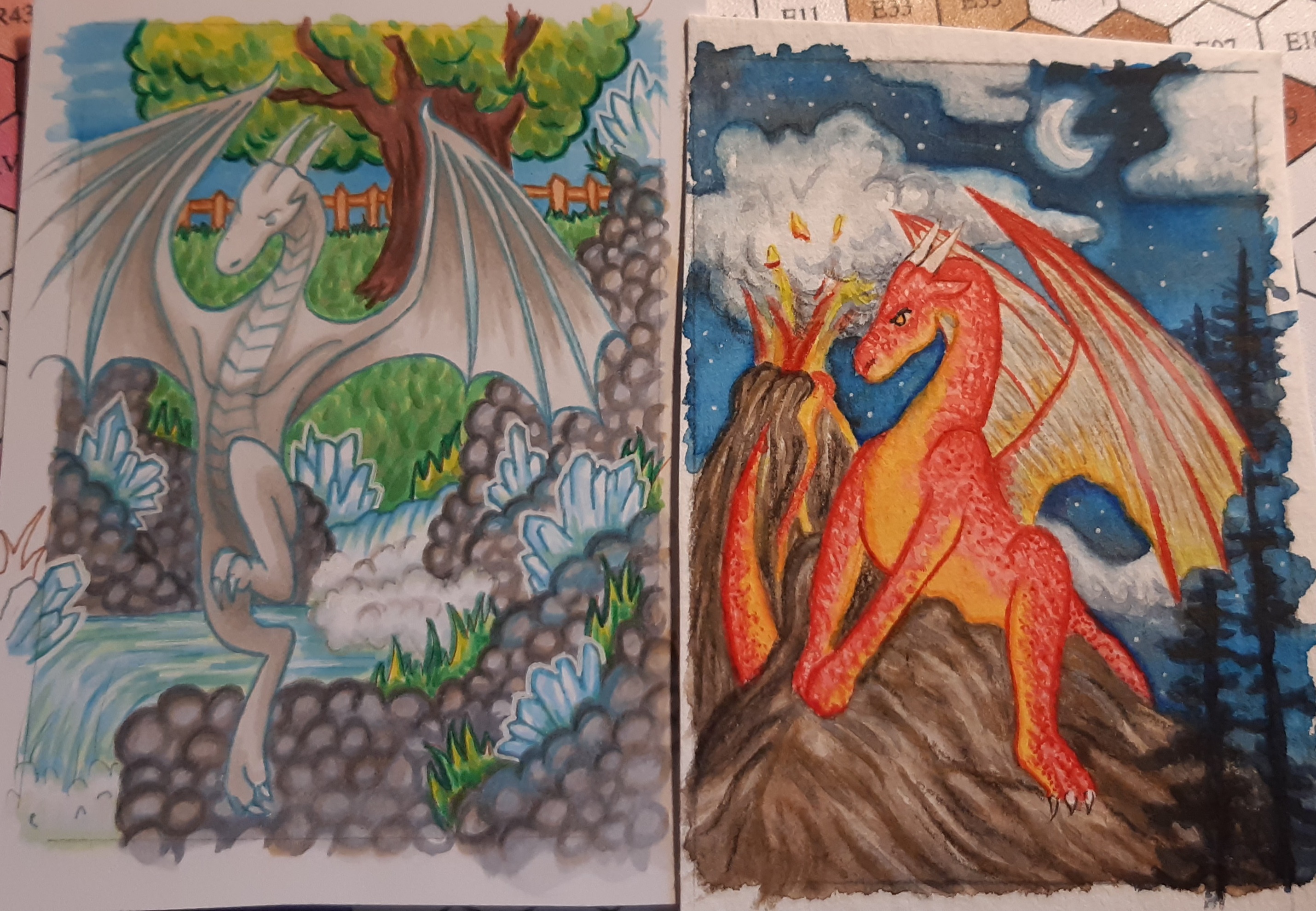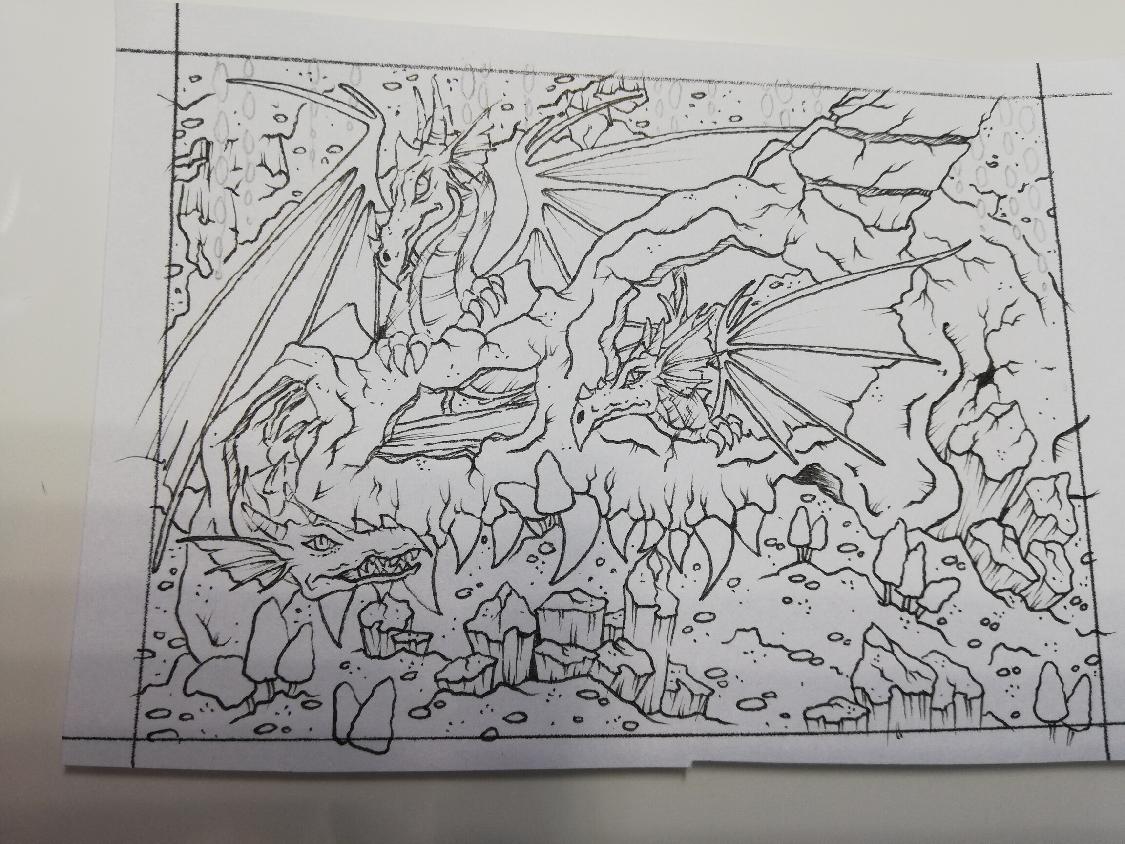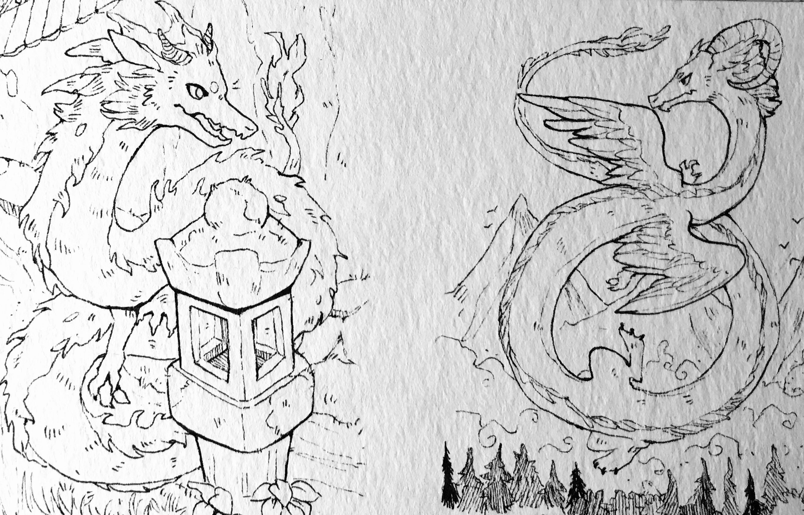 bei der Zweiten muss ich auch gestehen, dass man den Drachen nicht so gut erkennt. Vielleicht musst du hier nochmal mit bisschen mehr Schatten und Konturen versuchen das herauszuarbeiten.