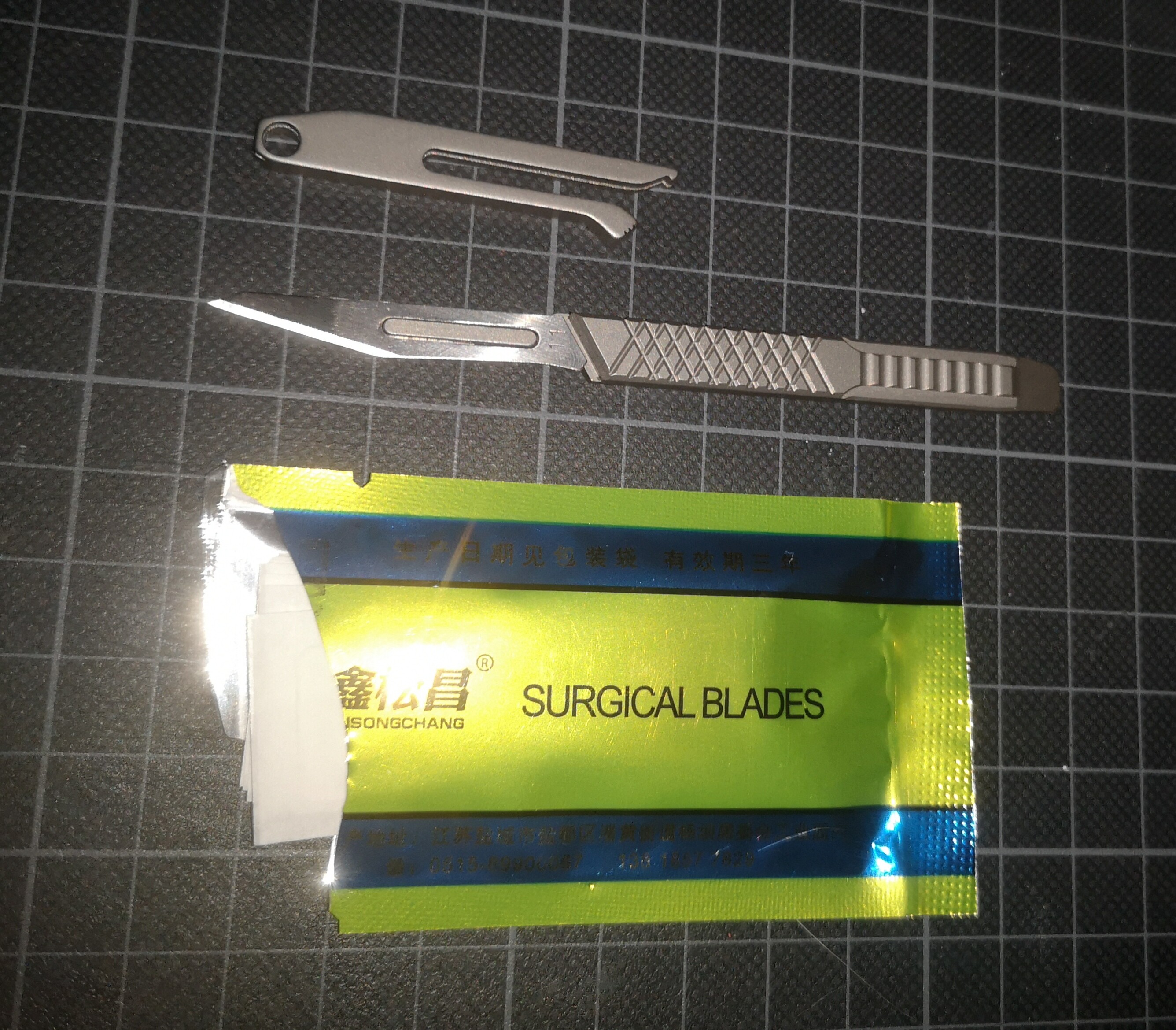Ich hab’ ein Miniskalpell mit chirugischen Klingen.