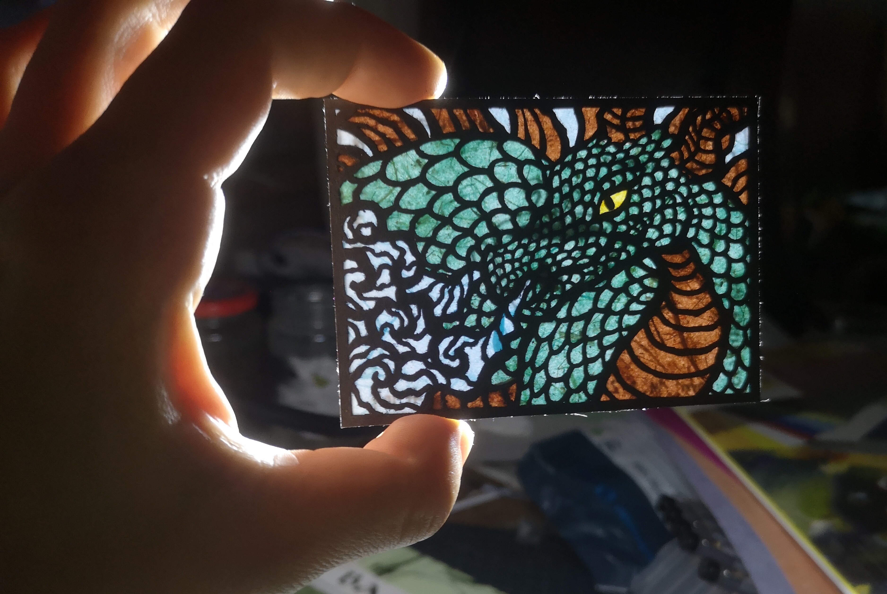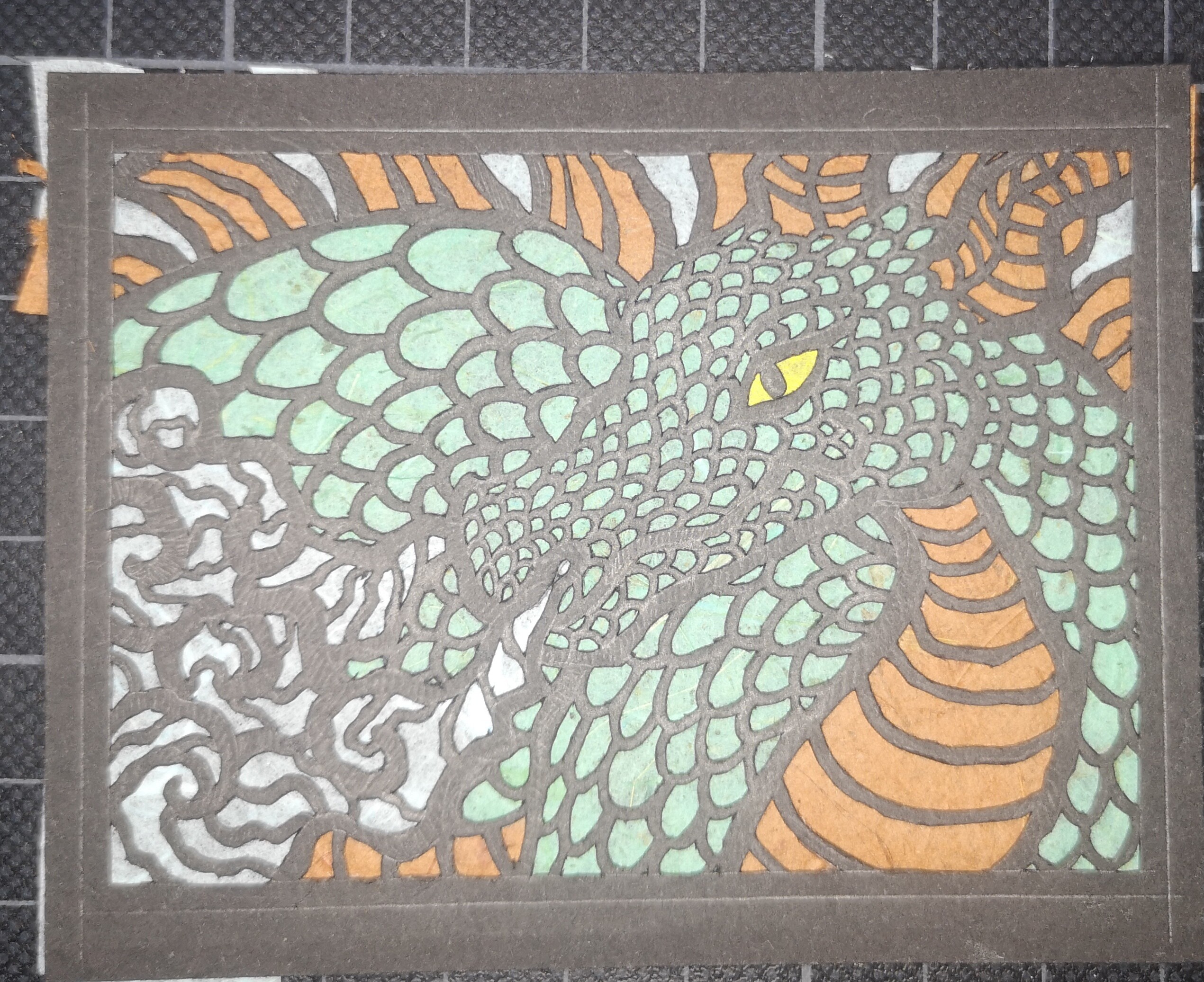 Werd nachher auch hoffentlich noch die letzten Schuppen geschnippelt bekommen und dann geht es direkt weiter zu Drache Numero 2. Da hab ich mir auch einen Scherenschnitt vorgenommen