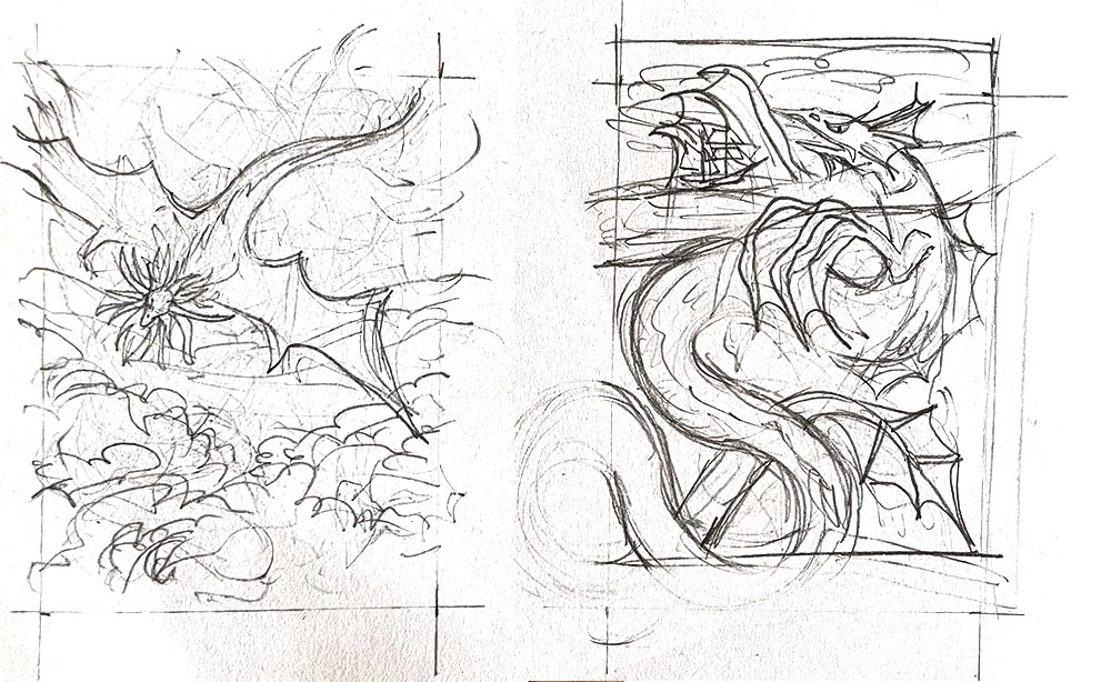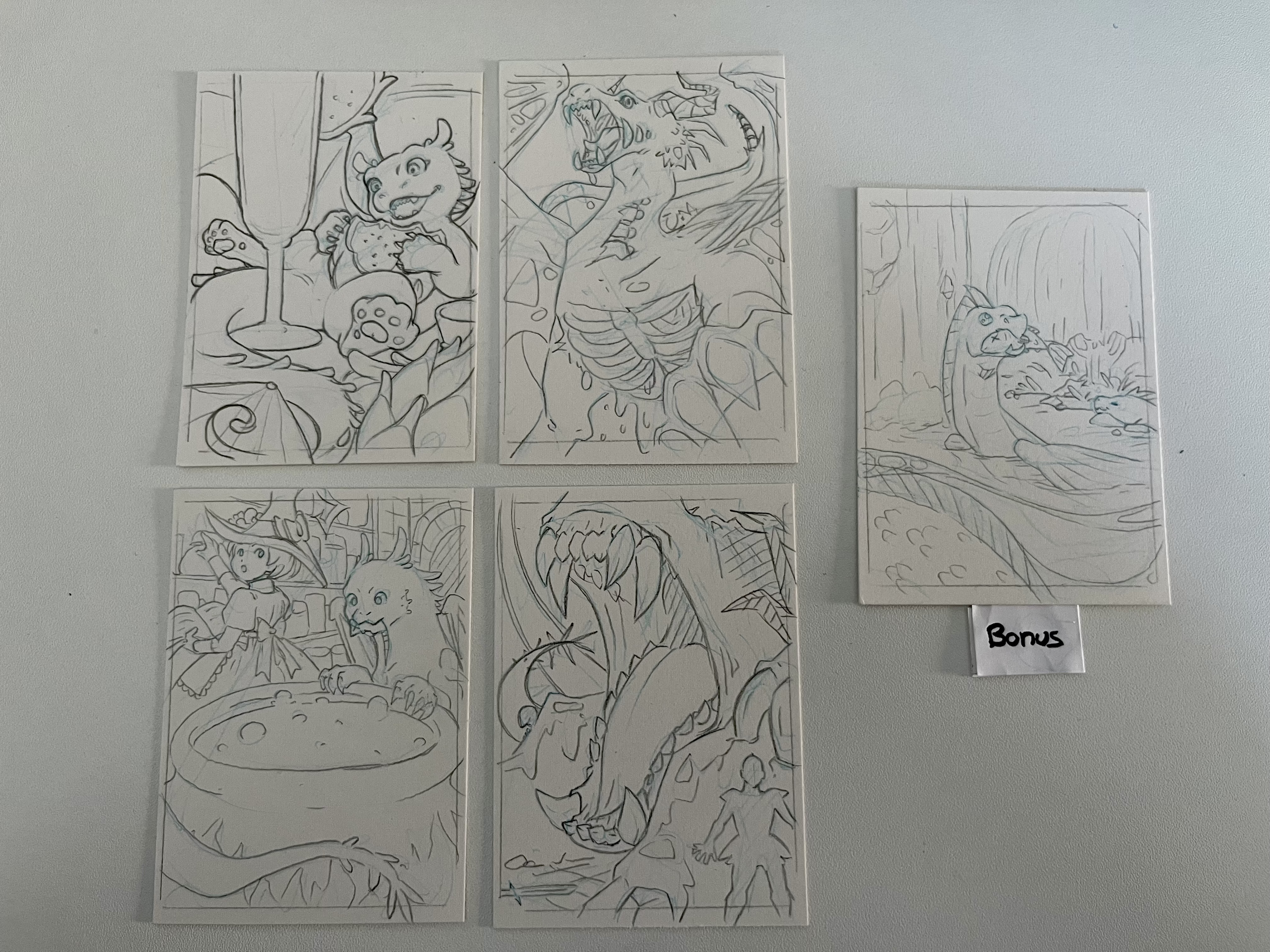 Hier meine Skizzen, jetzt muss ich eigentlich nur noch auswählen welche drei davon ich fertig mache ^^