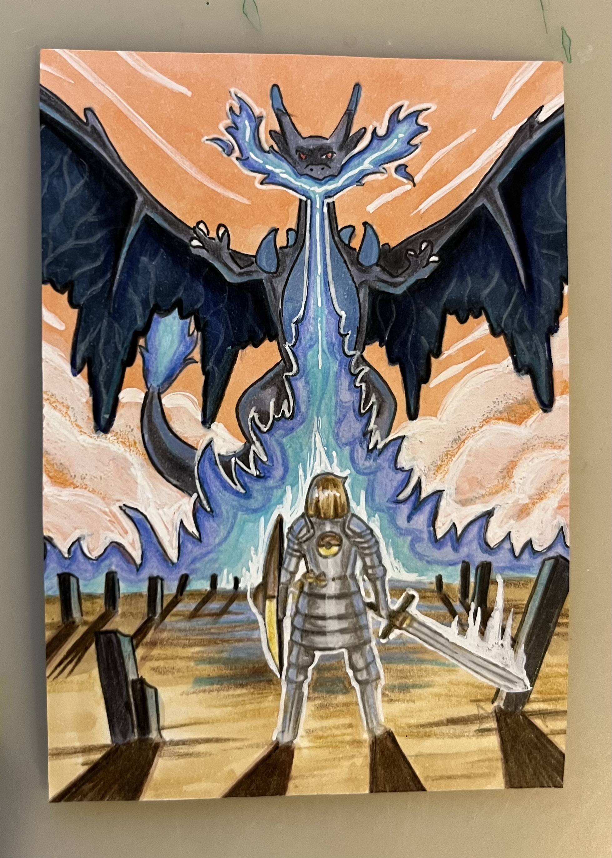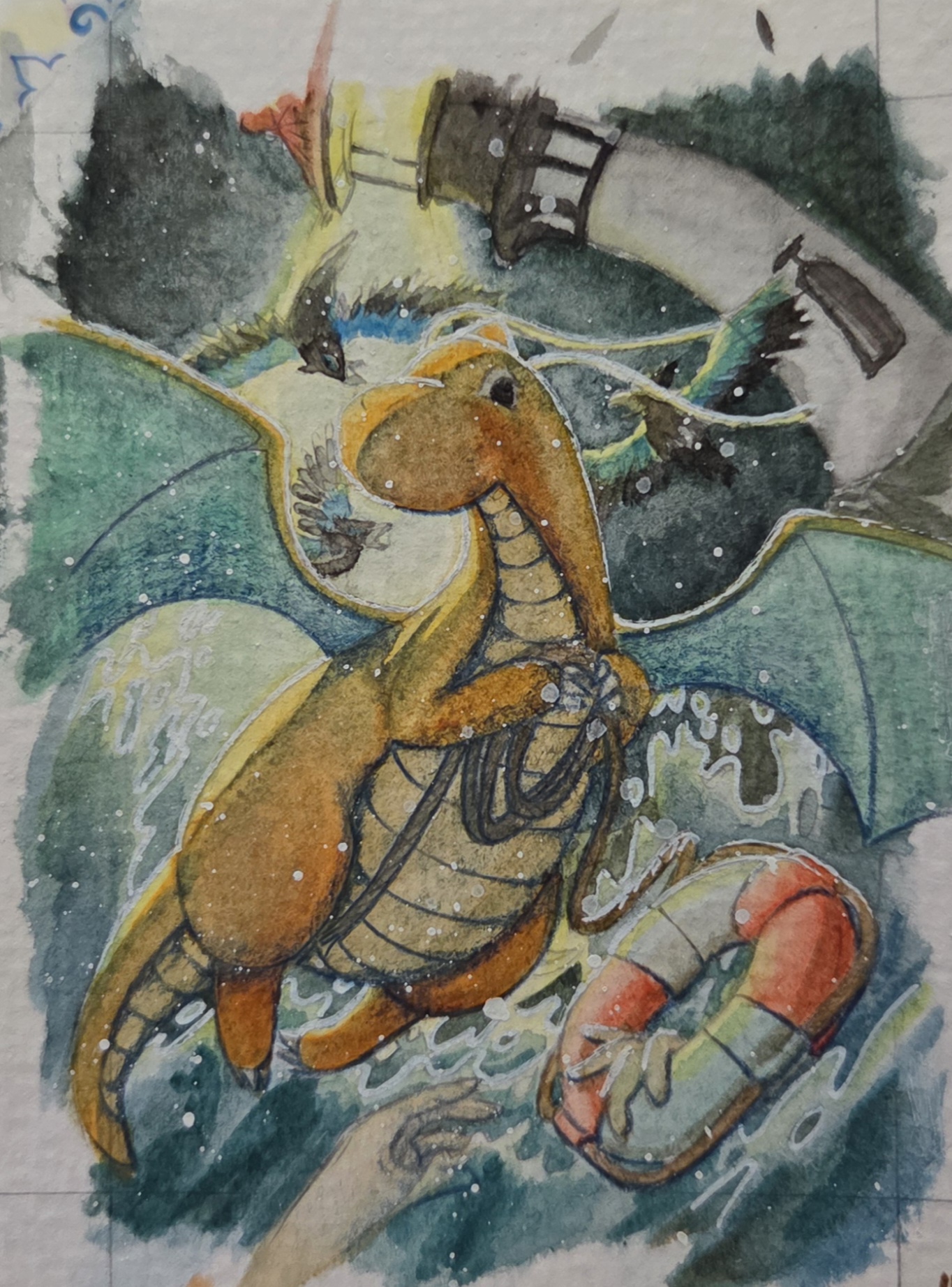 Ich hätte einmal ein Seedraking im Kelpwald. Libelldra und Vibrava. Da möchte ich mal versuchen den übergang von Sonnenuntergang zur Nacht darzustellen und dann noch Windewoge. Sein Kopfteil war dann doch größer als gedacht XD da werde ich versuchen den Bildausschnitt noch was anzupassen.