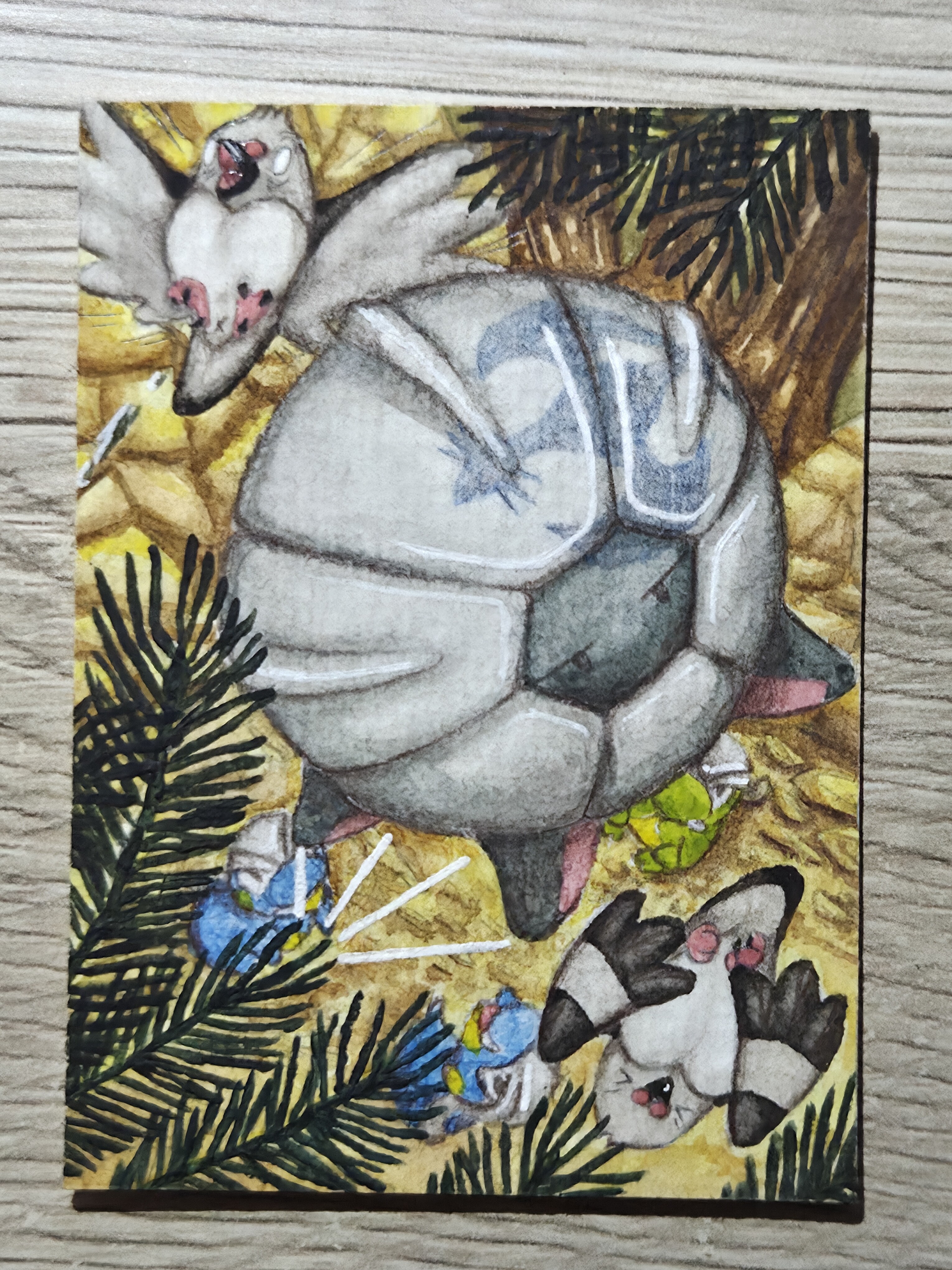 Meine zweite Karte ist ebenfalls fertig, nachdem ich sie leider zweimal komplett malen musste. Bei der ersten war der Brutalandaschatten leider total verhunzt. Es war ein wenig zum Heulen…