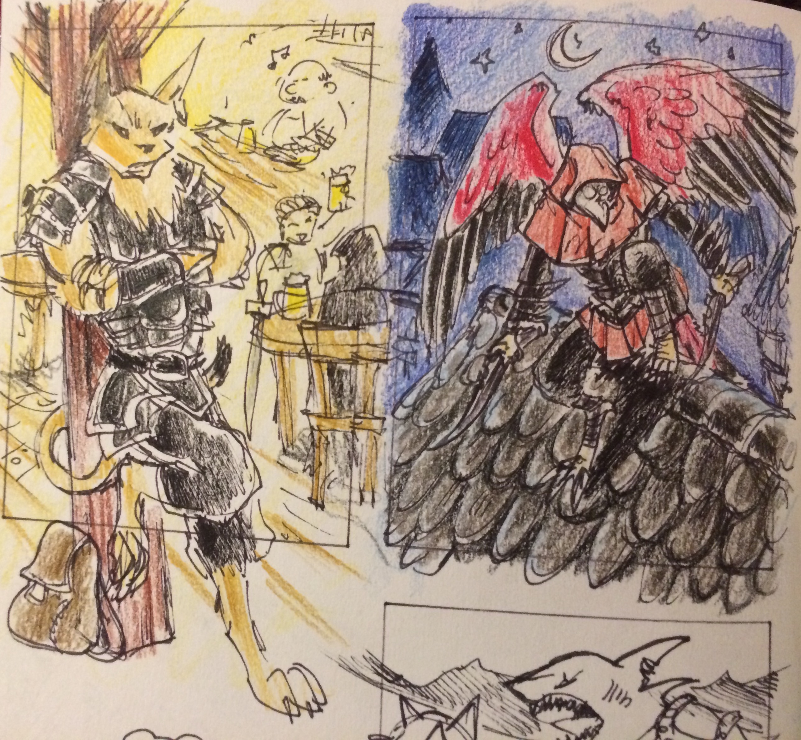 Und ja, der Anreiz, die Charas UND die Welt zu zeigen ist wirklich super. Vor allem weil ich persönlich mehr dazu neige, entweder nur die Charas selbst zu zeichnen (ein Farbverlauf im Hintergrund läuft bei mir schon unter “gewagt” :'D) oder solche “Symbolbilder”, die zwar was über den Chara aussagen, aber nicht wirklich über die Welt oder die Geschichte. Diese STA ist wie geschaffen, das mal zu ändern ^^
