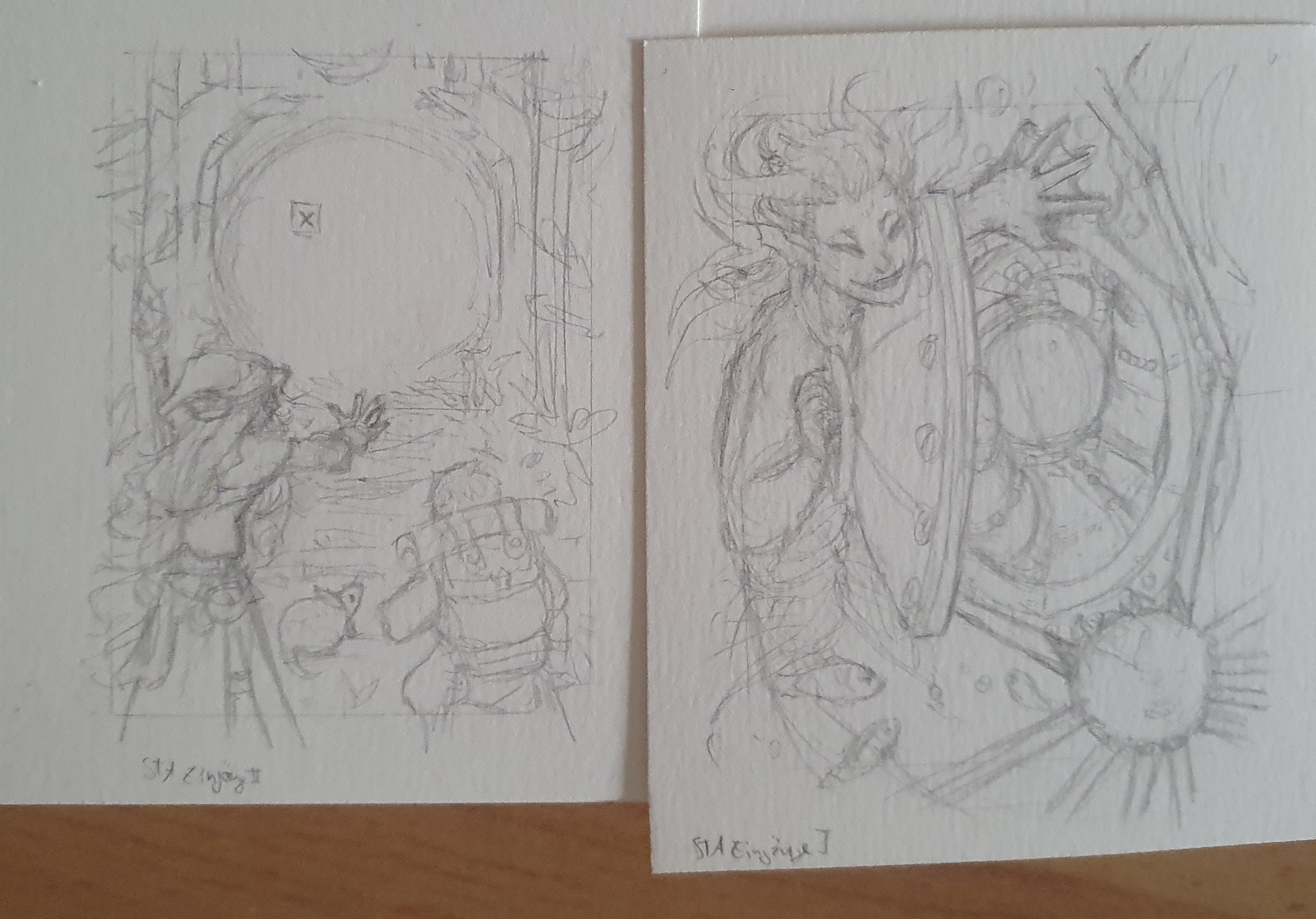 Ähnlich ist es mit Personen/Tieren/whatever im Motiv. Person macht irgendwas und irgendwo im Hintergrund ist ne Tür wäre wahrscheinlich nicht zugelassen, weil der Eingang wieder nur ein unwichtiges Element im Hintergrund ist. Wenn aber jemand zB gerade eine Tür aufmacht, zu hält oder durch ein Portal geht oder so, ist der Eingang für das Motiv wichtig und die Karte ist zugelassen. Was auch gehen würde wäre zB jemand, der beim Schreibtisch sitzt und zeichnet, und auf einmal geht die Zimmertüre auf und etwas/jemand schaut oder kommt rein (merkt man, dass ich gestern den neuen Alien-Film gesehen hab und ich dauernd irgendwelche Grusel-Motive im Kopf habe? XD)