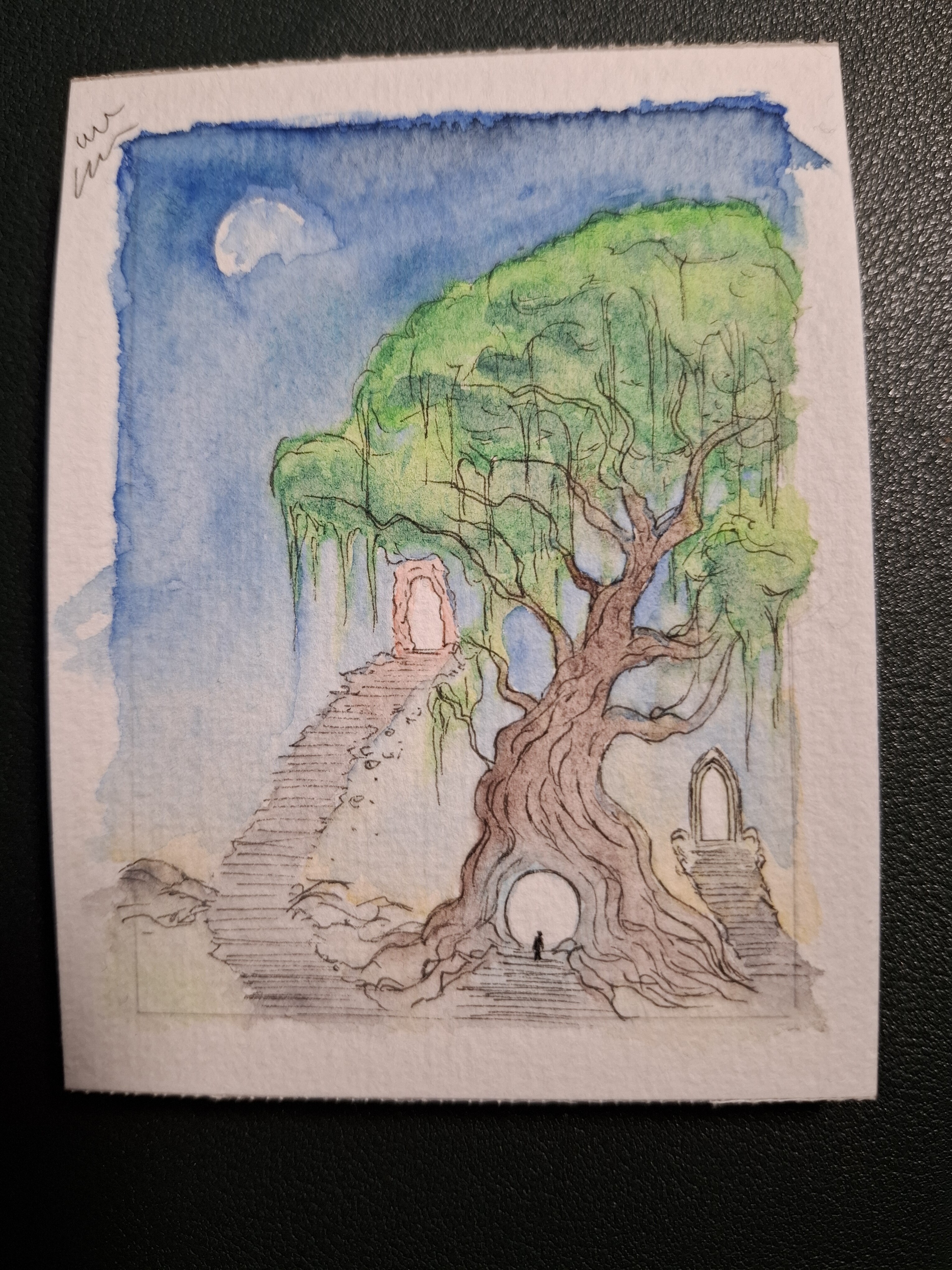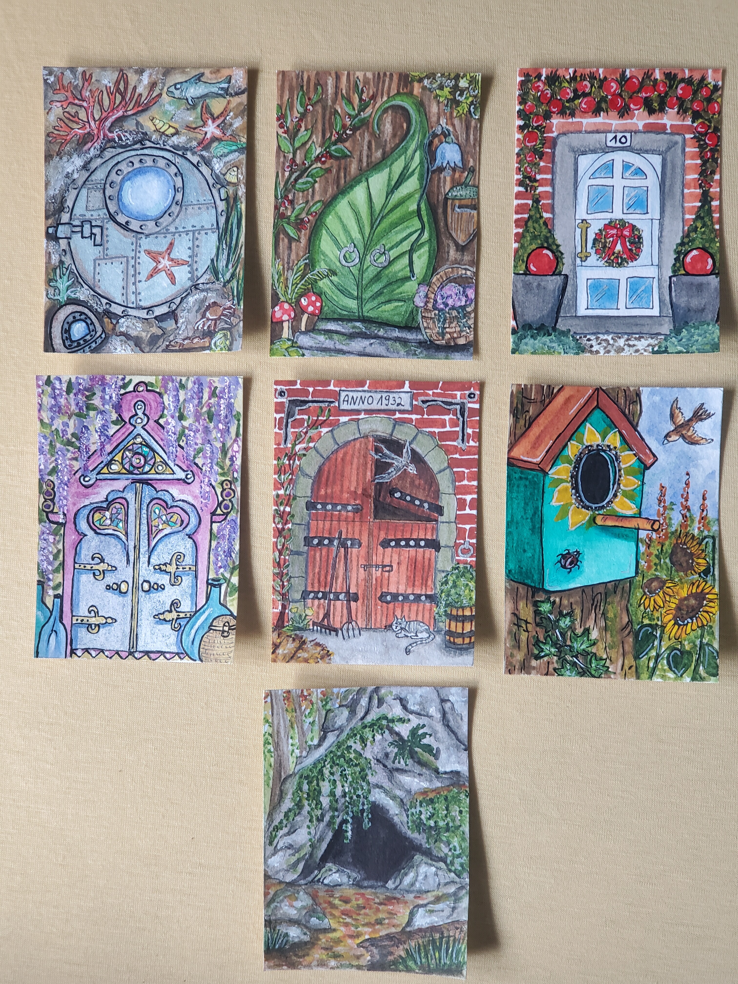 Weil ich jetzt schon ein paar Mal gefragt wurde auch hier öffentlich noch ein wenig dazu, was ich als “im Fokus” zähle, damit die Karte zugelassen ist: der Eingang muss entweder wichtig für die Szene auf der Karte sein oder das “Hauptmerkmal” der Karte sein. Das kann man natürlich machen, indem man den Eingang groß und mittig auf die Karte packt, muss aber nicht sein. Also ein paar Beispiele, um das vielkeicht besser zu erklären/klarer zu machen: