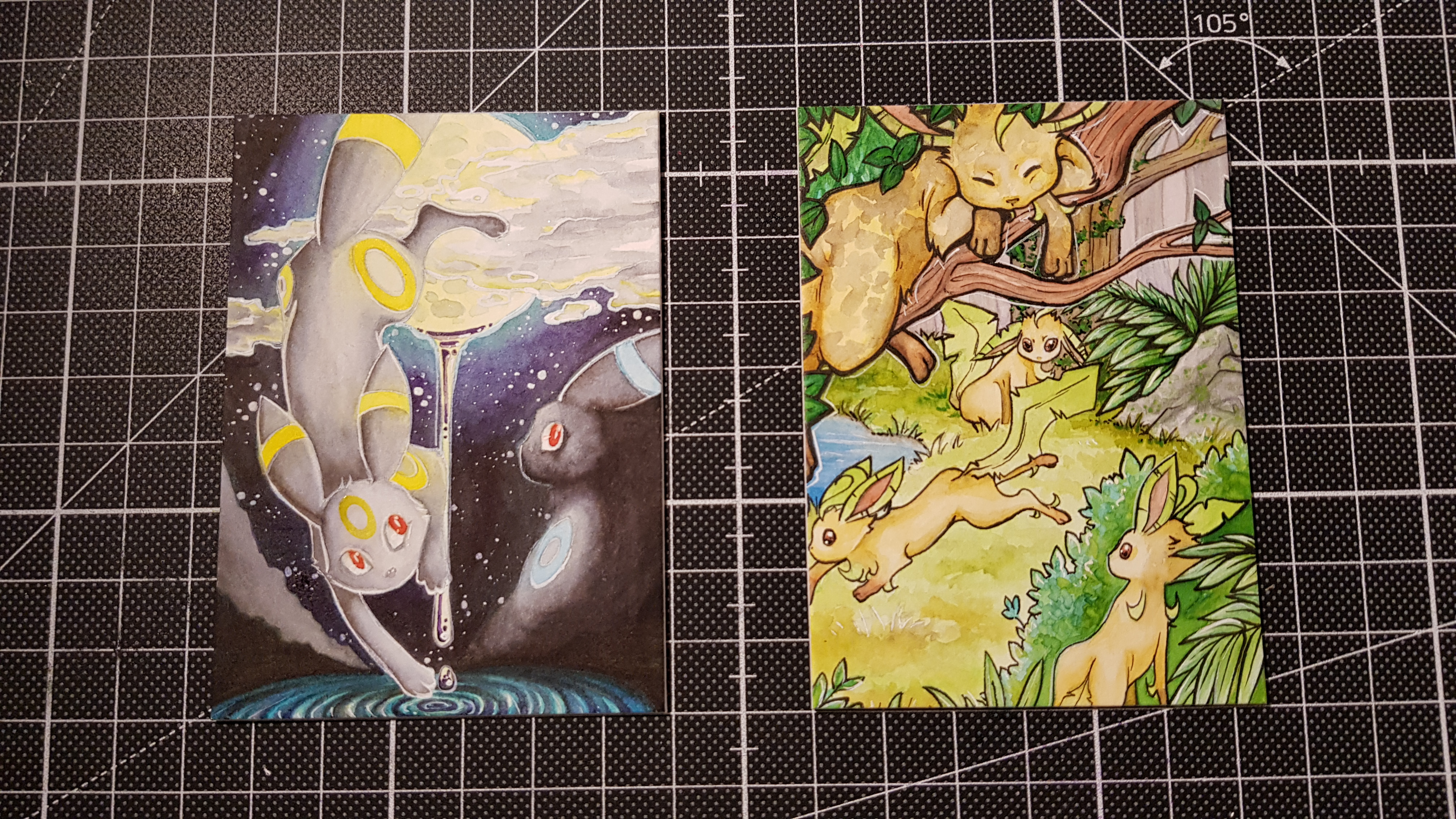 wäre super wenn man bis morgen noch was machen kann, zwei Karten sind gleich Fertig, aber die dritte karte bekomm cih erst morgen komplett zuende, die trocknungszeiten bei aquarell sind manchmal nervig D: