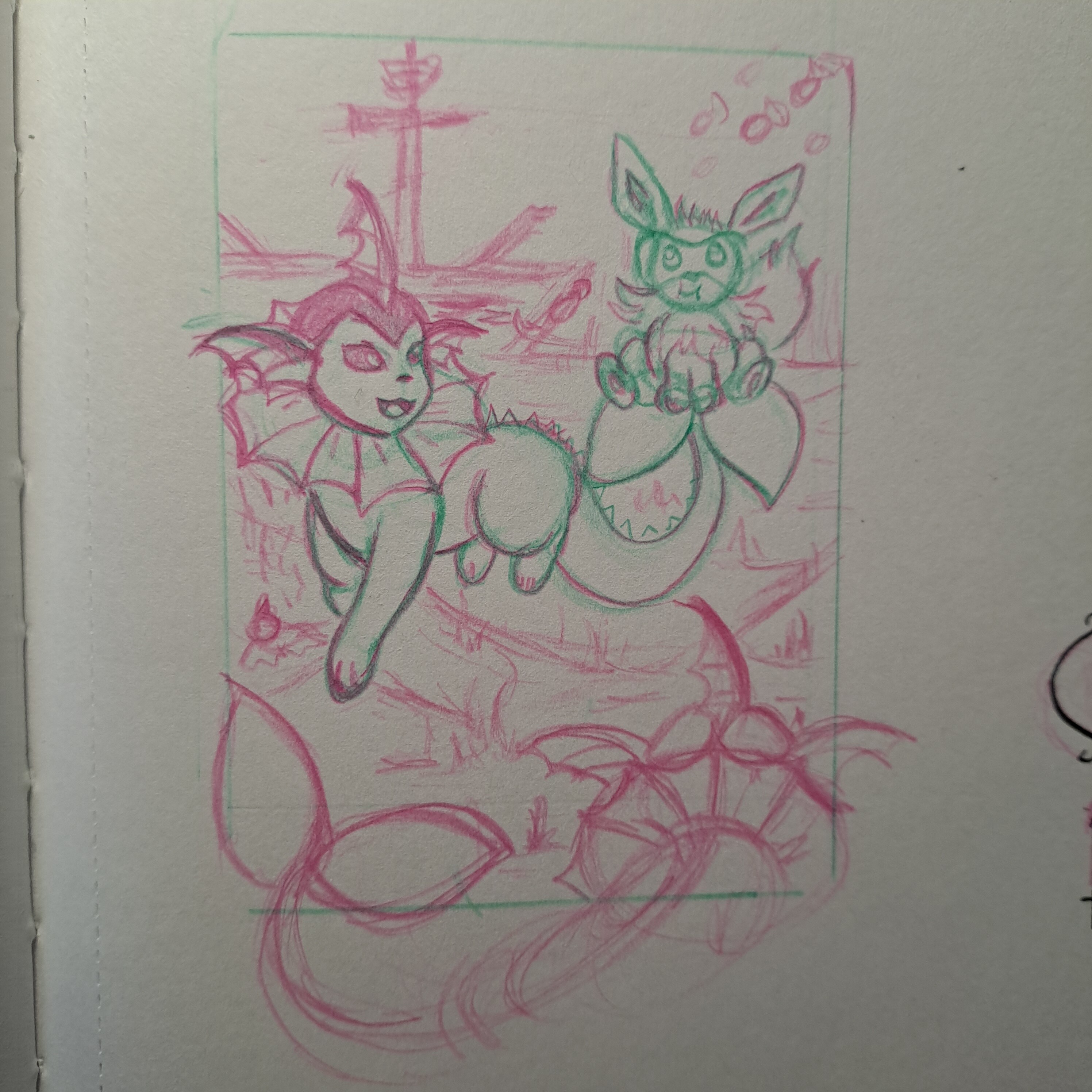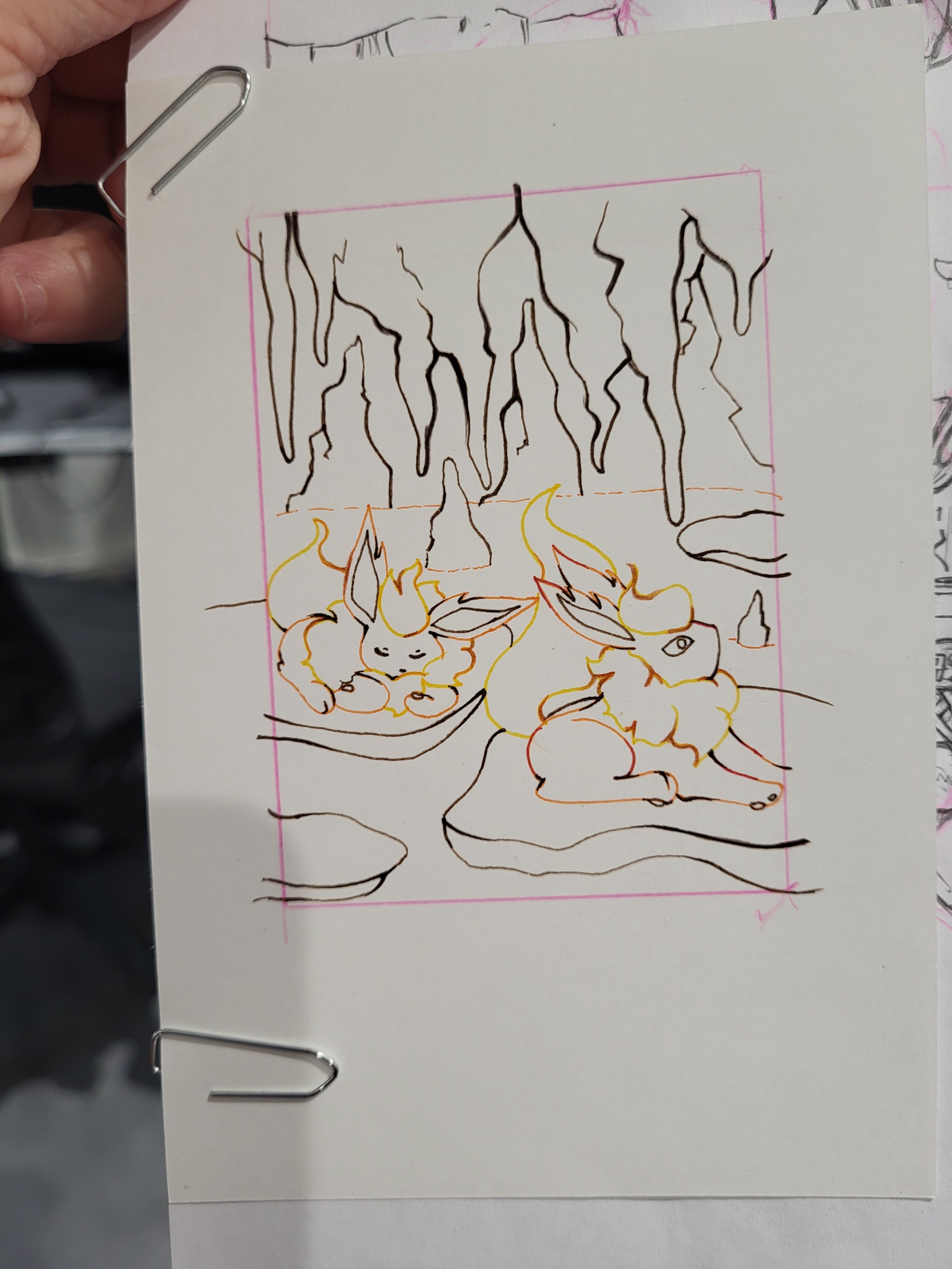 Da saß erst ein Flemmli auf der kleinen Plattform aber da war der Fokus nicht genug auf Flamara fand Ich, aber ja die Lines würde ich nun nicht neu machen. Ich war so gehyped auf das Thema das ich ultra schnell angefangen hab und gar nicht dran dachte die SKizzen zu zeigen >_>