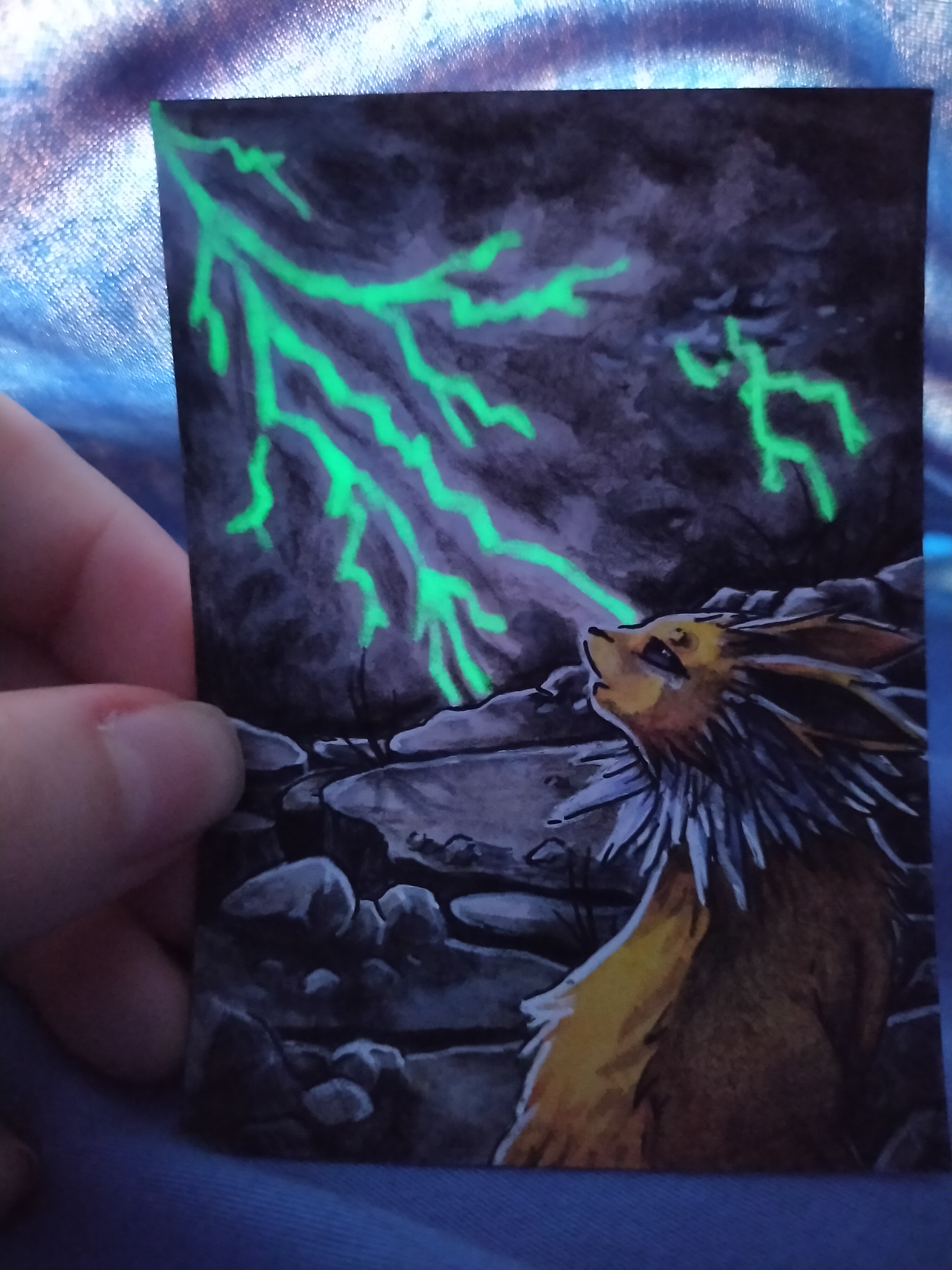 Hab die erste Karte fertig bekommen, aollte sie so angenommen werden. Die Blitze leuchten im Dunkeln ^^
