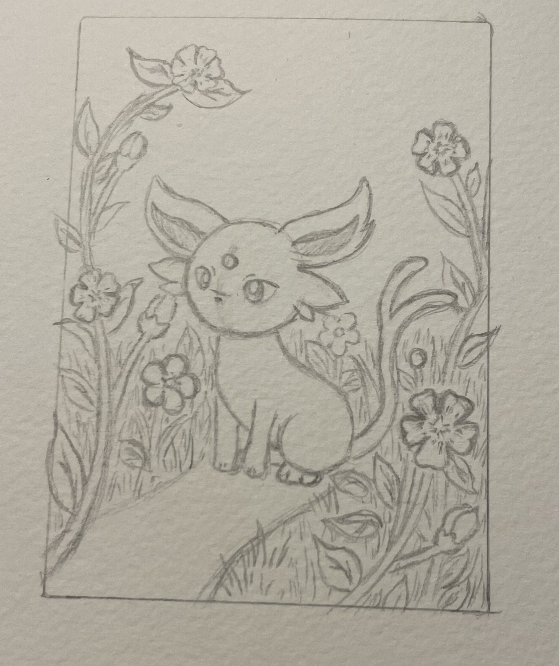 Ich habe endlich auch mal mit Skizzen angefangen :‘D. Ich will auf jeden Fall Psiana und Blitza malen. Hier habe ich mal Psiana versucht. Erkennt man es als Psiana? Was in den Hintergrund soll, bin ich mir noch nicht ganz sicher :‘D. Vielleicht etwas blumiges?