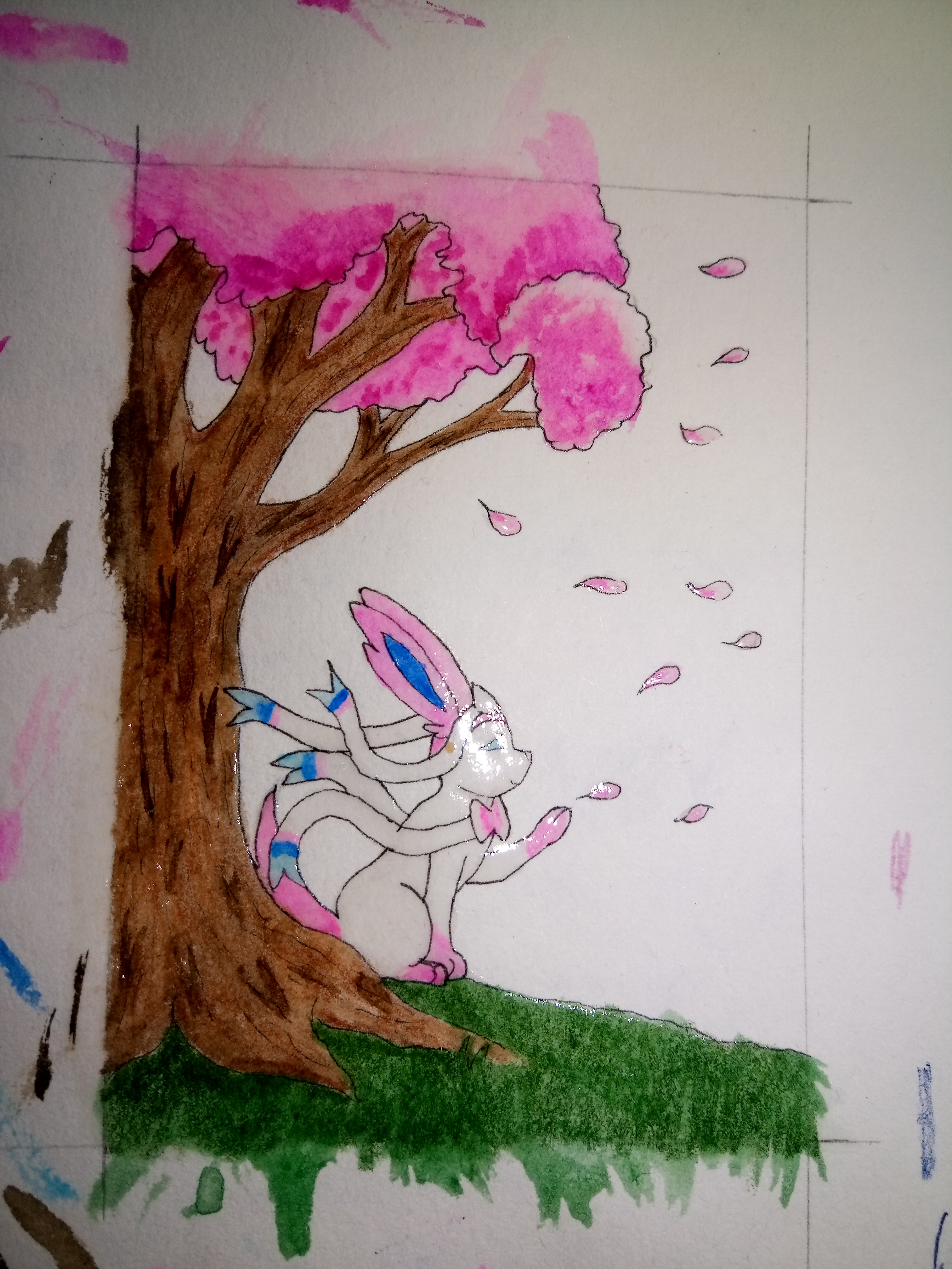 Das Motiv mit Feelinara ist auch super hübsch, so schön ruhig und entspannt <3 Ich denke, beides könnte da gut funktionieren im Hintergrund - also direkt hinter Feelinara (vielleicht auf Hügeln für mehr Tiefe oder so?) noch ein paar Kirschblütenbüsche/bäume und dahinter ein dämmriger Himmel - auch hier kann ich dir gern digital einzeichnen, was ich meine, wenn du möchtest