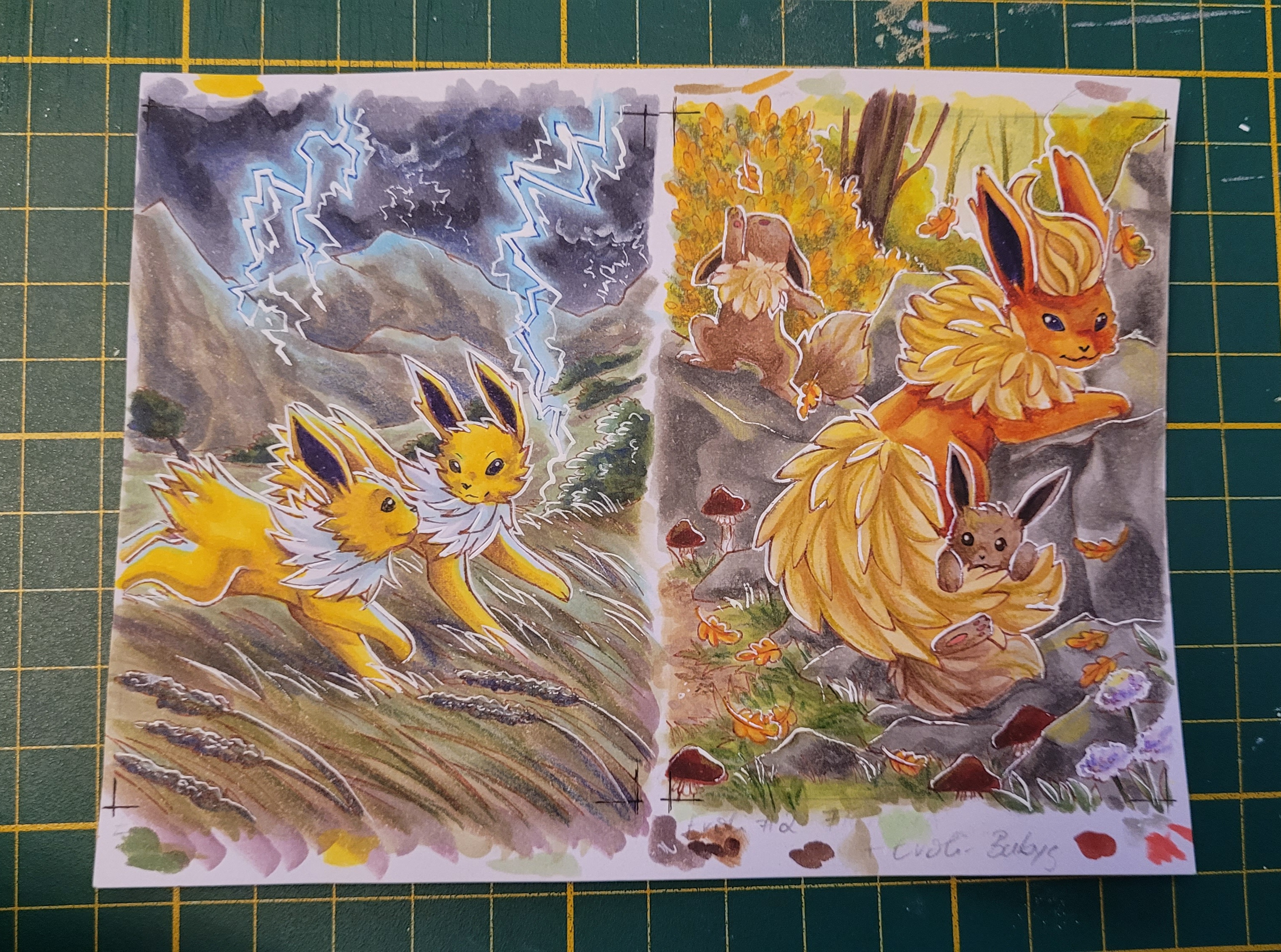 @Moonrose : Der Wassereffekt bei der ersten Karte ist ja mega cool :0 Die zweite ist auch super niedlich, aber wirkt noch ein wenig blass, ich glaube da könnten ein, zwei Schichten Farbe und vielleicht ein paar Schatten noch helfen :3