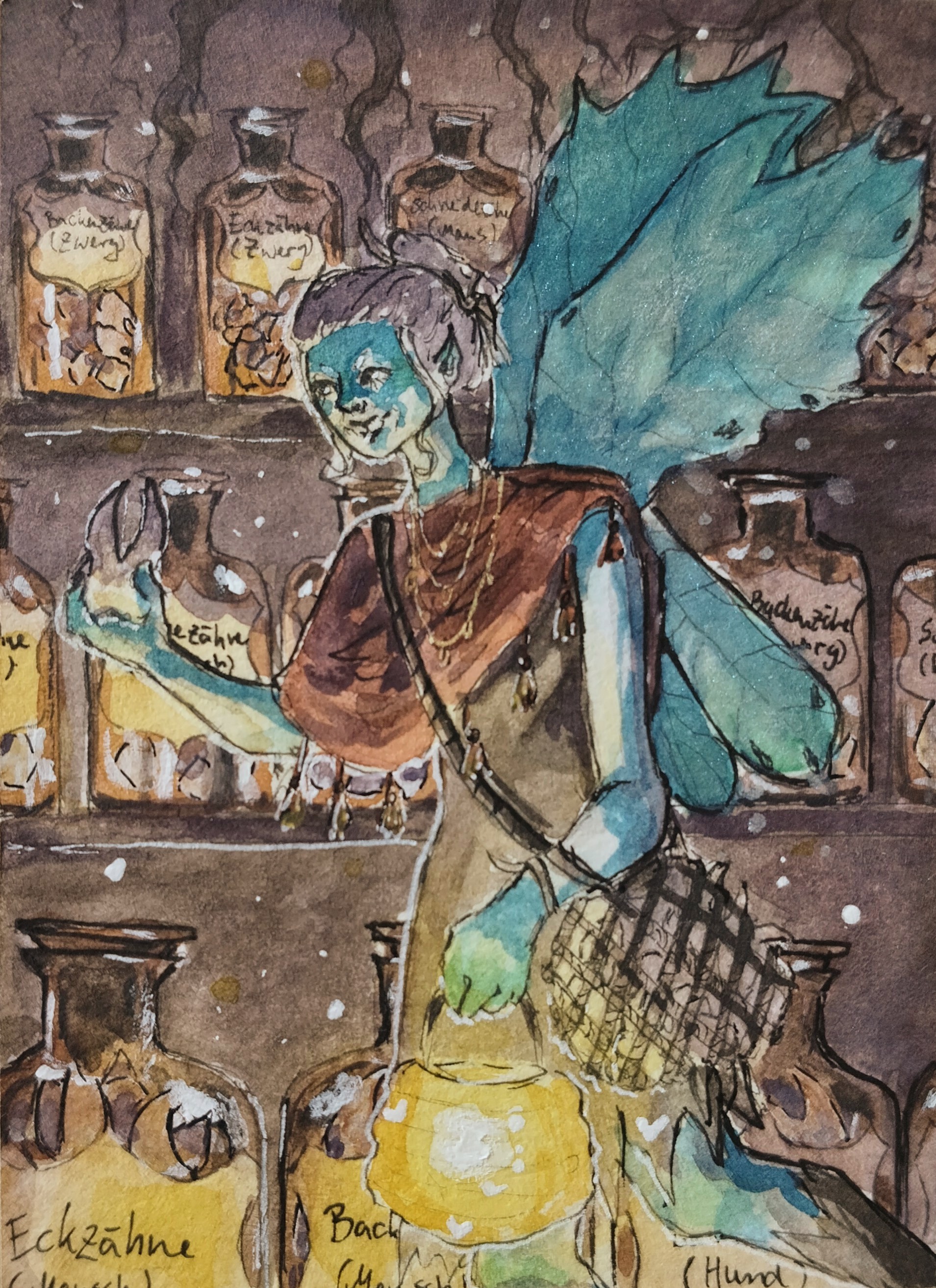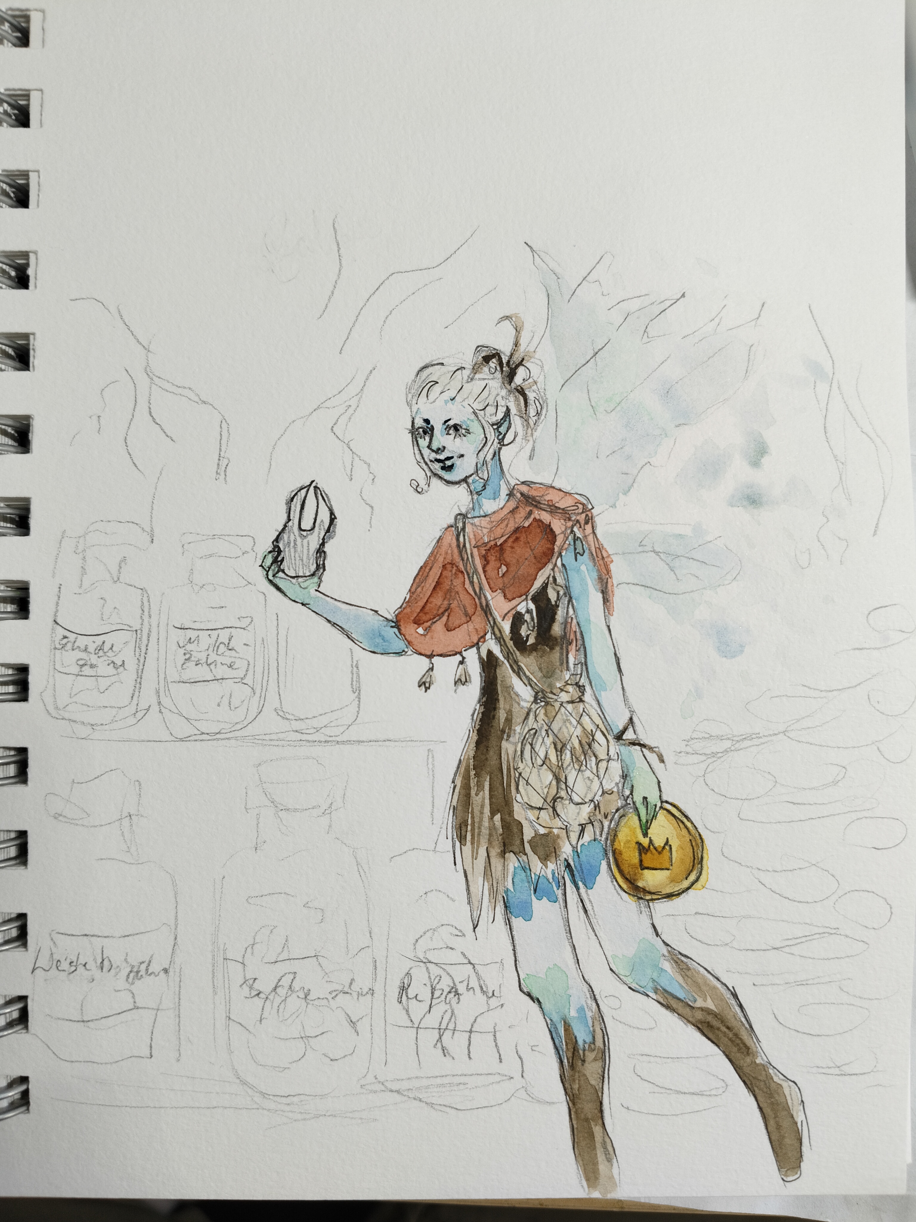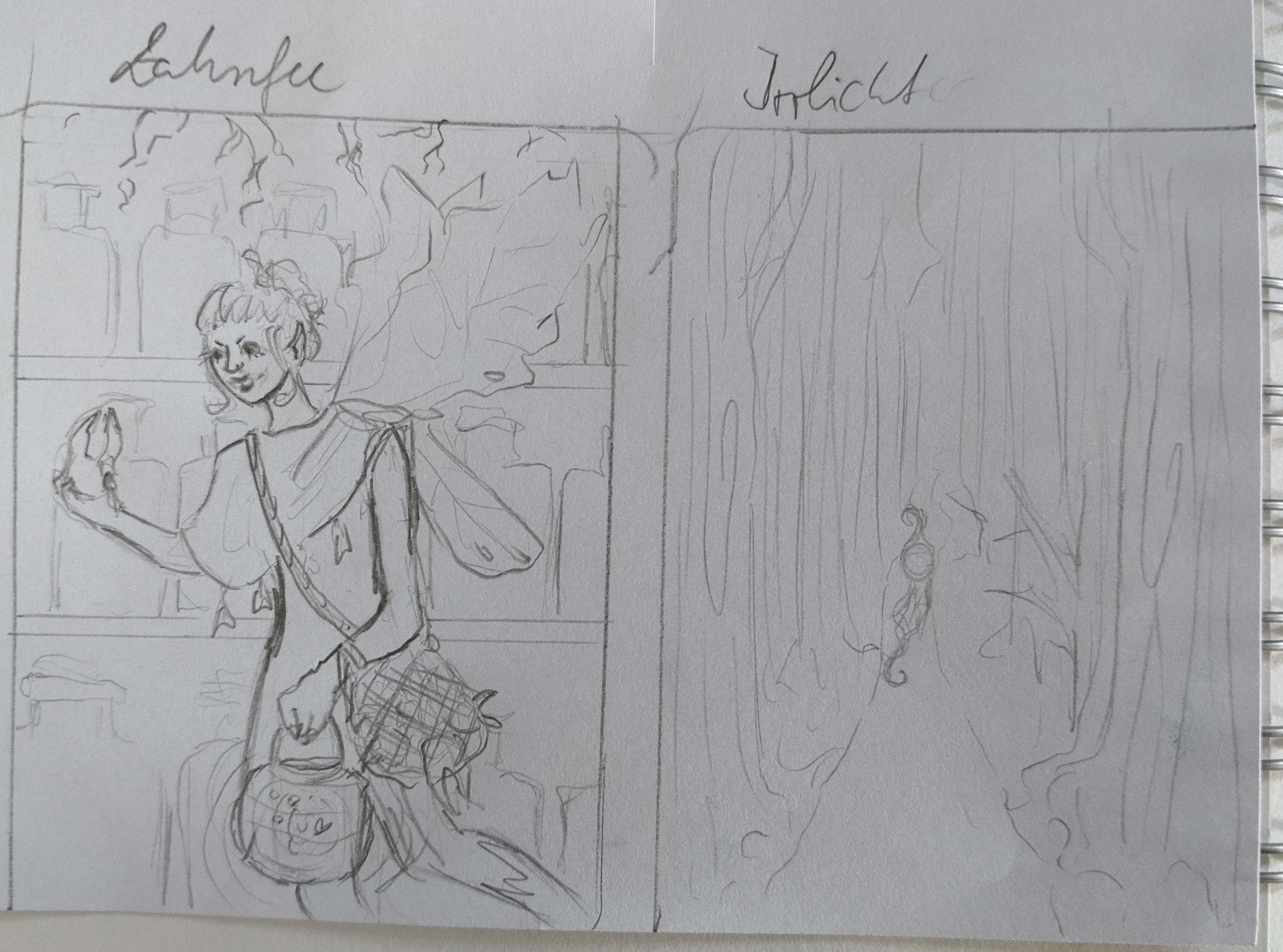 Als ich in der Liste Zahnfee gelesen habe, war mir sofort klar, das ich eine malen will, also hab ich auch schonmal was in mein Skizzenheft gekritzelt: