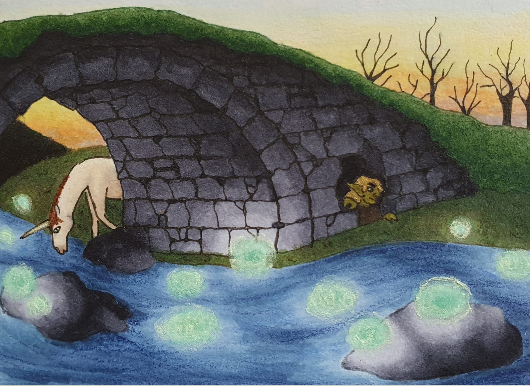 Die Karte ist durch Einhorn und Troll i.o., da macht es jetzt weniger, dass ich die Nymphen nicht so richtig erkennen kann. Aber die Lichtstimmung im Bild gefällt mir sehr