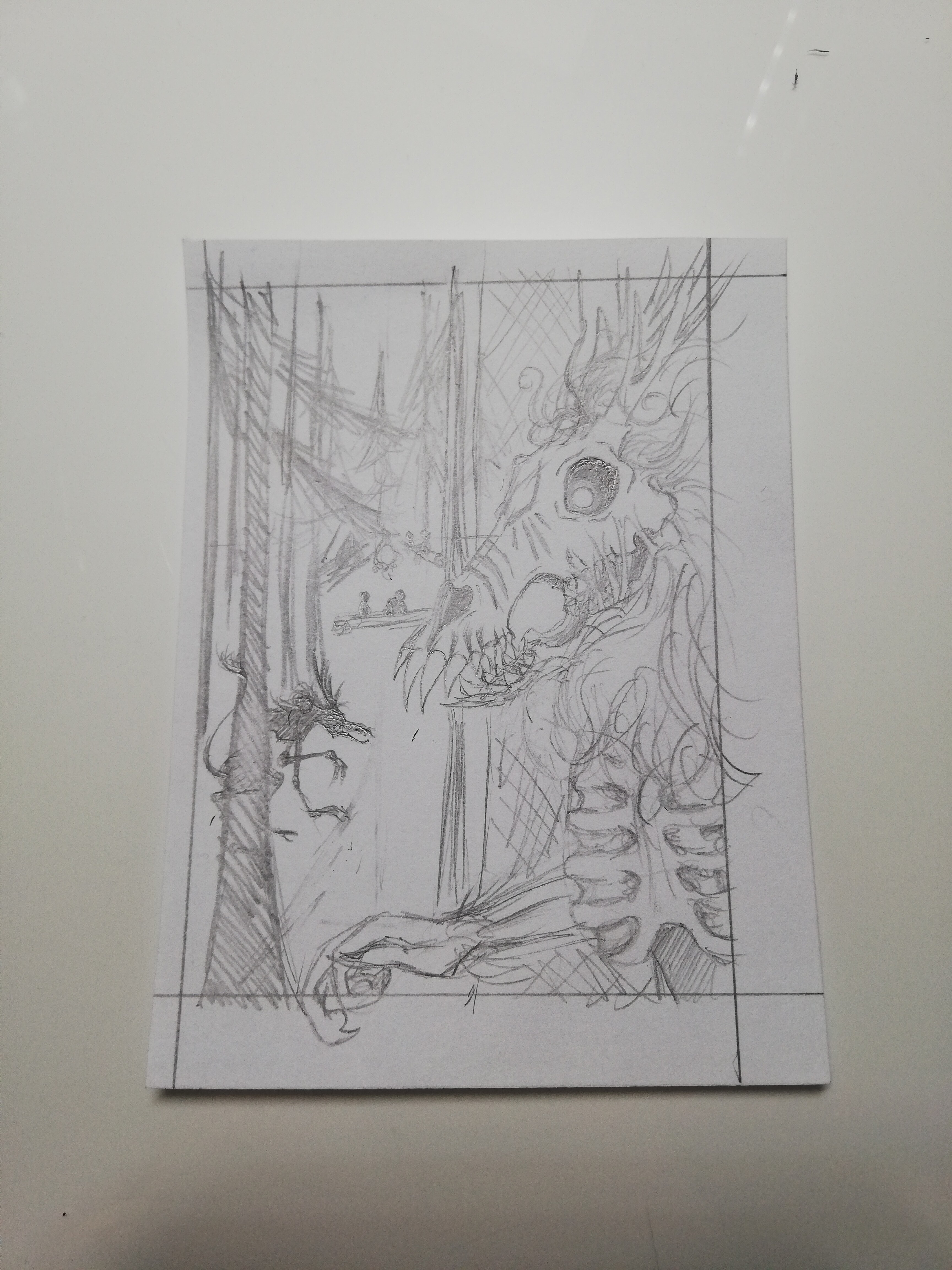 Herzlichsten Dank für die Aufnahme in diese spannende Runde. Ich war schlagartigst inspiriert und das wäre die Skizze für meine erste Karte… wenn die so klar geht, leg ich mit den Lines los. Wendigos auf Beutefang