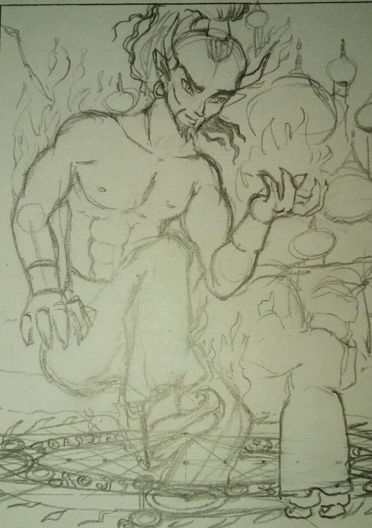 Einmal Beschwörung eines Dschinn.Die Lines sind nicht ganz vollständig,da fehlt der magische Zirkel,weil ich den später mit Goldeffekt machen möcht.