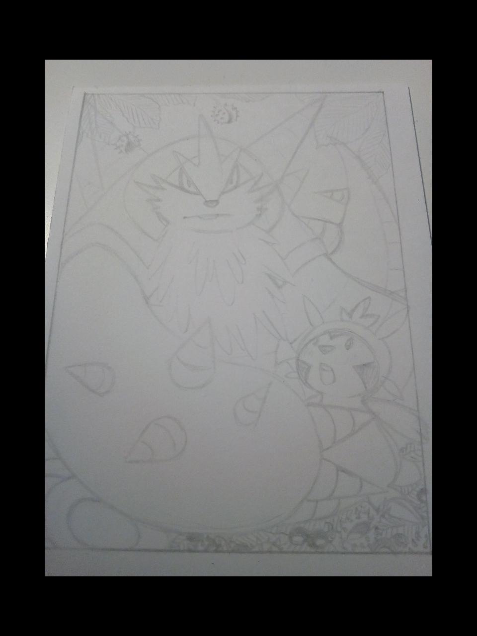 Nachdem ich heute nach allen Regeln der Kunst meine Hornraben und Rettan Karte mit einer super hässlichen Koloration versaut habe, habe ich mich jetzt erstmal an die Skizze für meine dritte Karte gesetzt :)