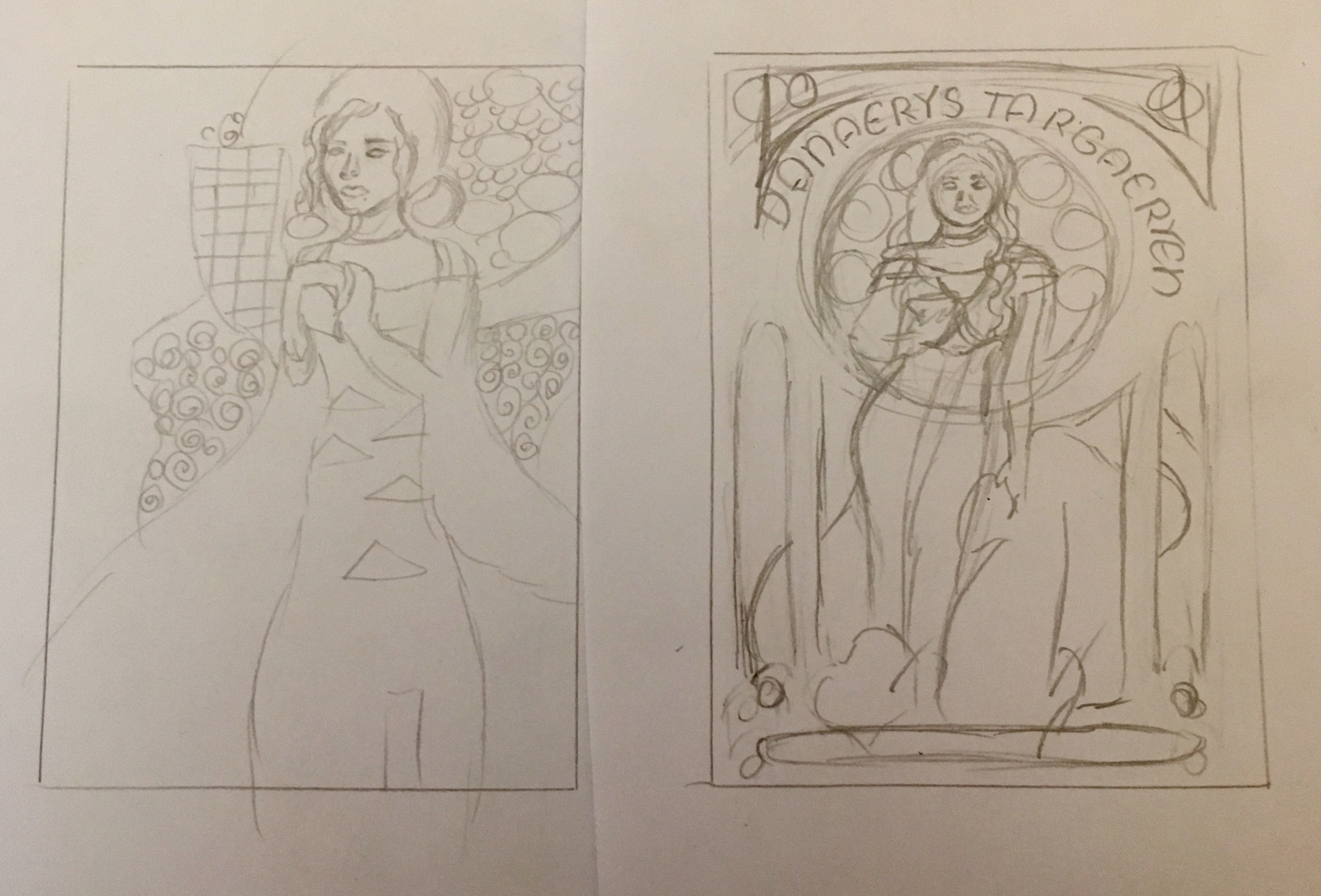 An etwas Richtung “Mucha” wollte ich mich auch schon länger mal probieren. Evlt. dieses hier + Daenerys Targaryen.