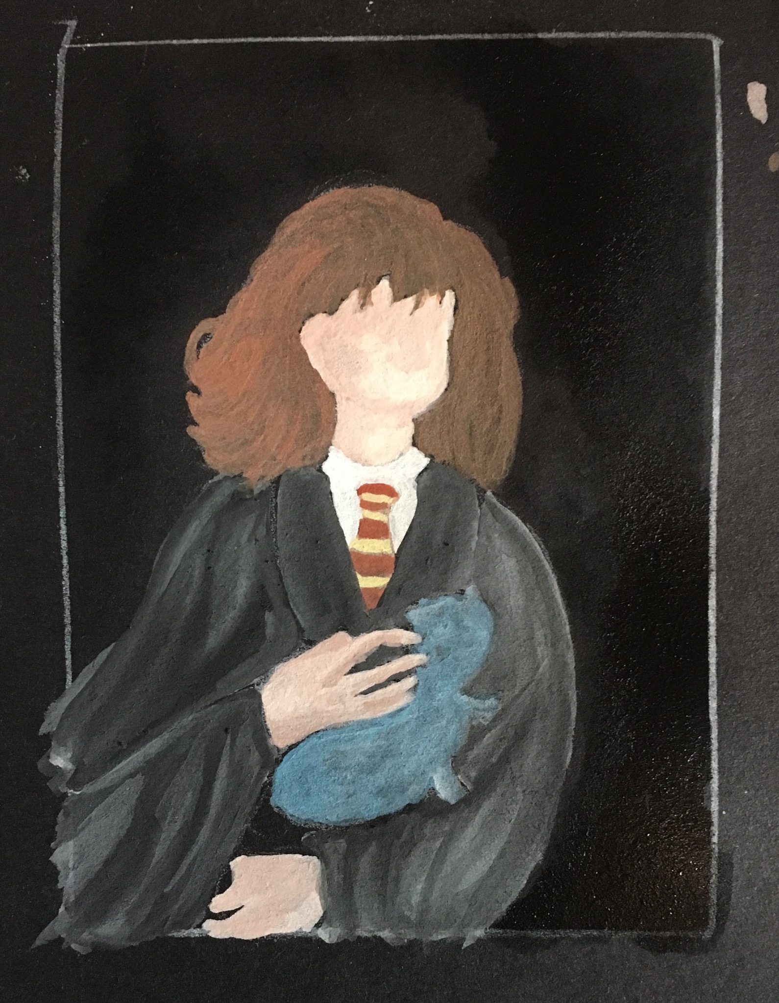 Das Bild erinnert jetzt schon weeesentlich mehr ans Original! Ich würde ihr in die untere Hand noch einen Zauberstab zeichnen, damit man auch erkennt, dass es Hermine ist ;)