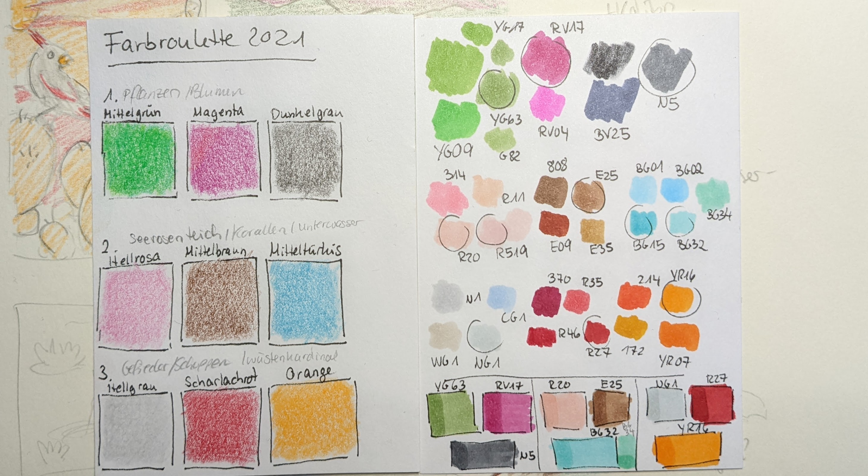 Hier auch mal meine Farben sie ich wählen würde und ein paar mischproben etc.