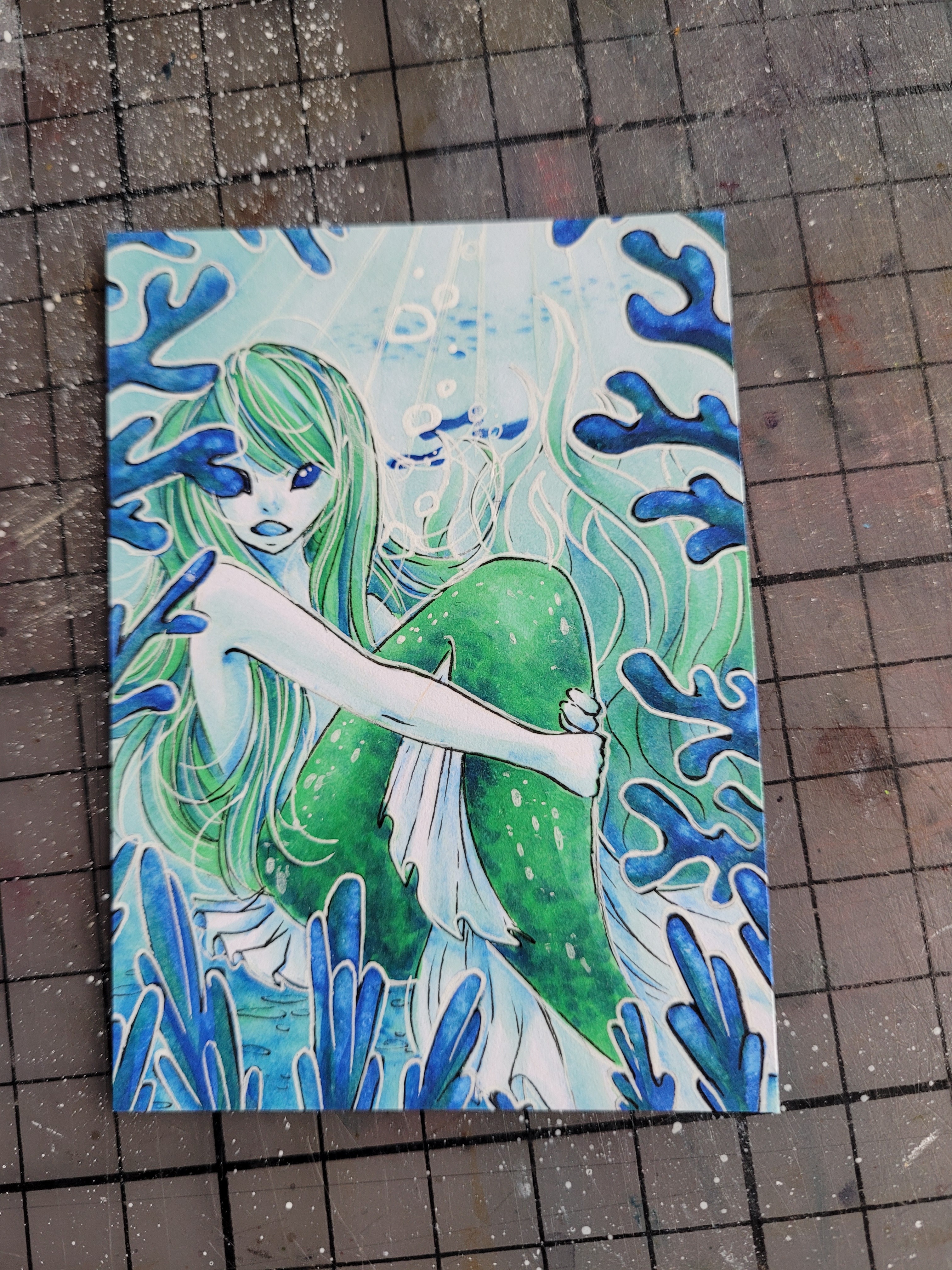 @Glitzermond : Tut mir leid, hab deinen Post erst jetzt gesehen. Sieht auf jeden Fall schon cool aus! Aber wäre es möglich, vielleicht noch ein paar mehr Schatten einzubauen? Gerade der Charakter wirkt etwas flach und ich denke, mit dem Blauviolett sollten sich ganz gut Schatten setzen lassen. Wenn du möchtest, kann ich dir das digital etwas einzeichnen, wie ich es mir vorstellen könnte :)