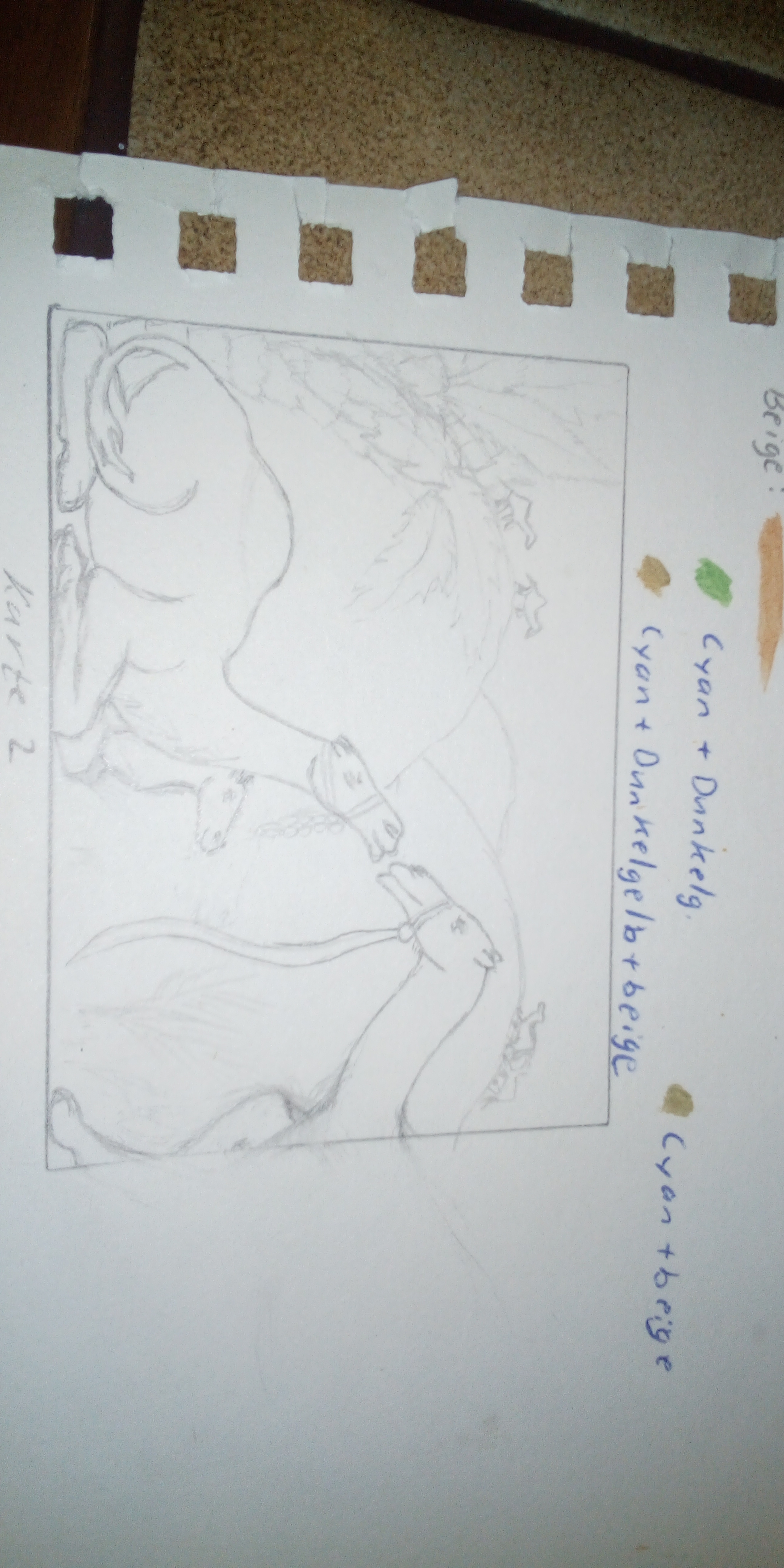 Ich hab jetzt nochmal drangesetdrangesetzt besser kriege ich es aber nicht hin weil sich das rechte Kamel ja runterbeugt und das sonst irgendwie nicht passt. Ich hab aber dafür noch ein Kamelfohlen hinzugefügt