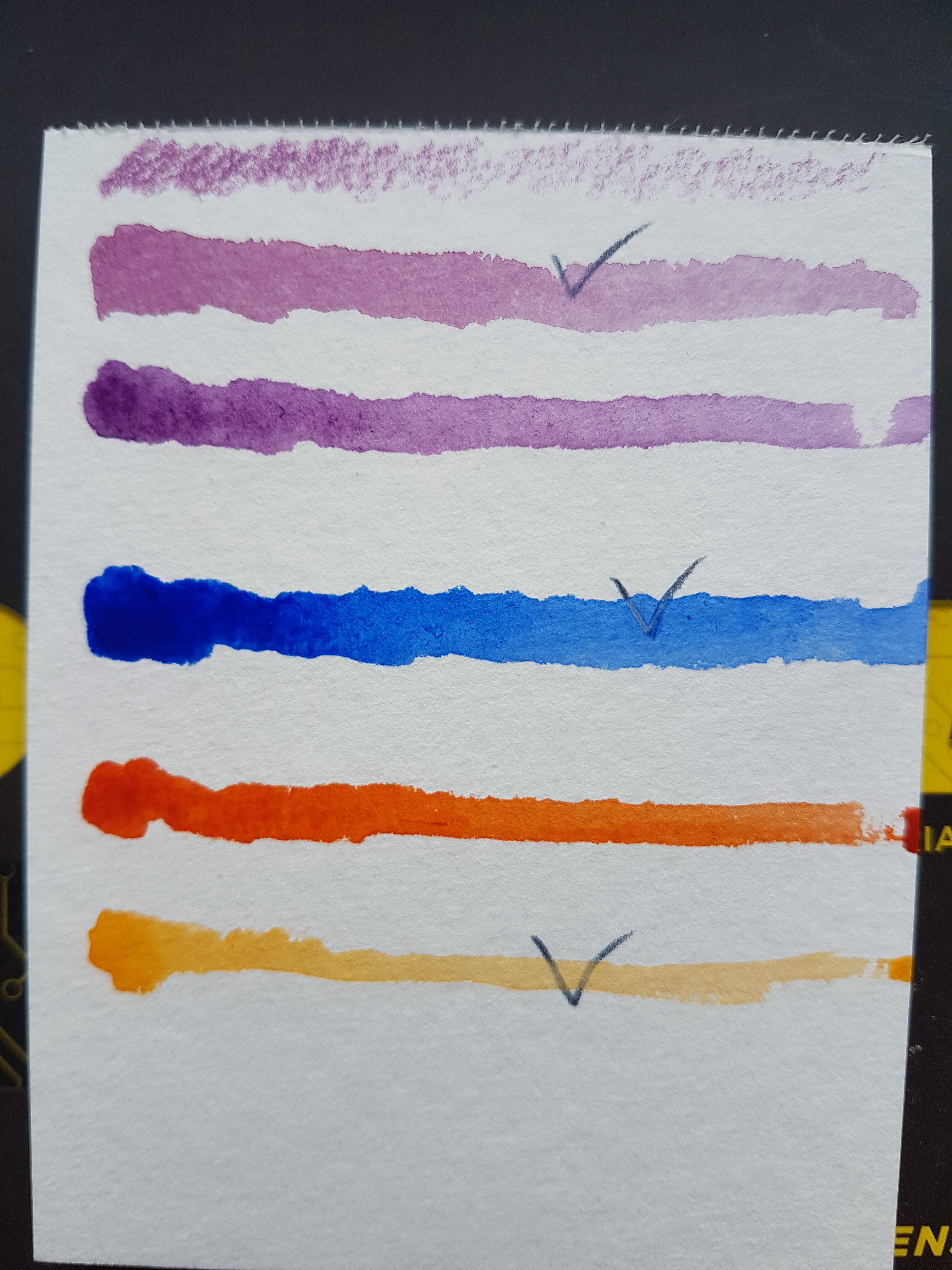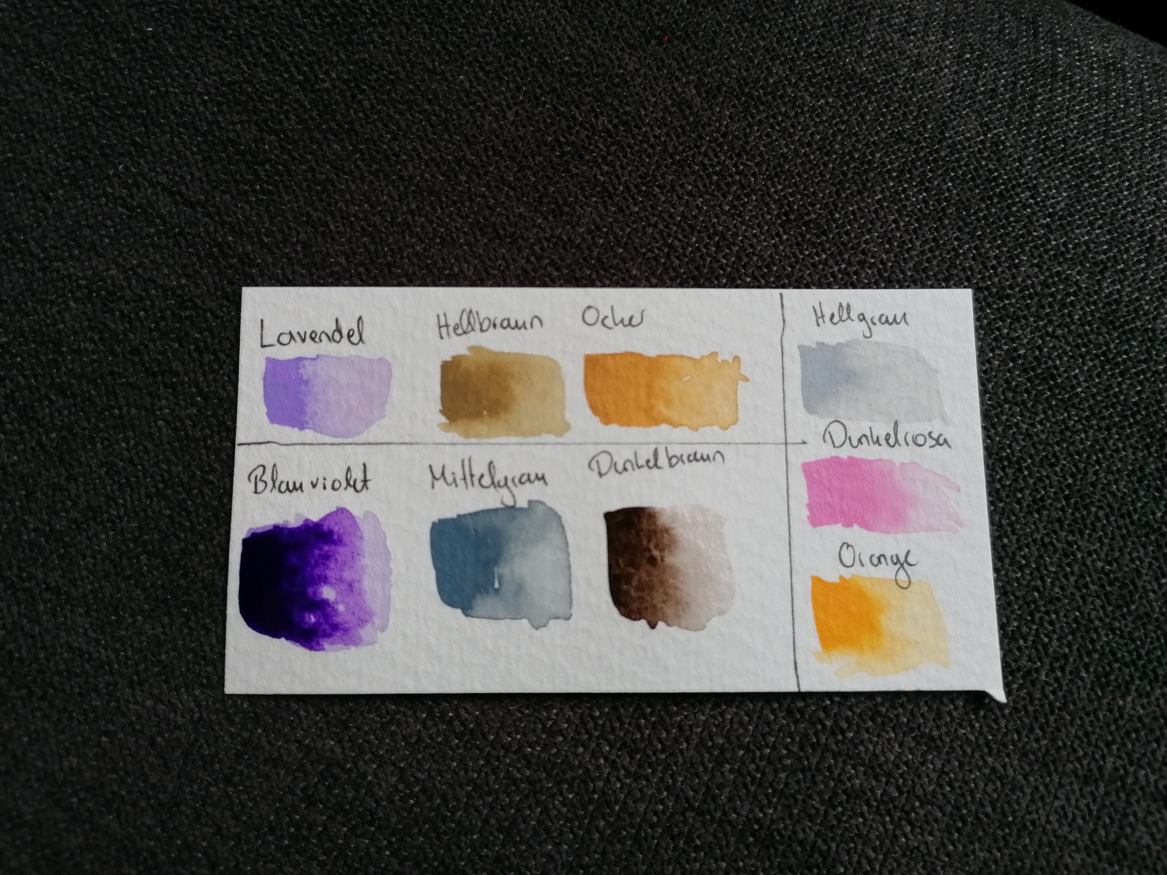 @Naira für die Farbkombie : Hellorgane, Hellviolett und Ultramarin hab ich mal Farbproben gemacht…die mit Häckchen würde ich nehmen passt das so? Hellviolett und auch Hellorange sind von einer Farbprobenkarte von Eller und ich hab nicht mehr den Zettel mit den Farbnamen…kann ich die trotzdem verwenden?
