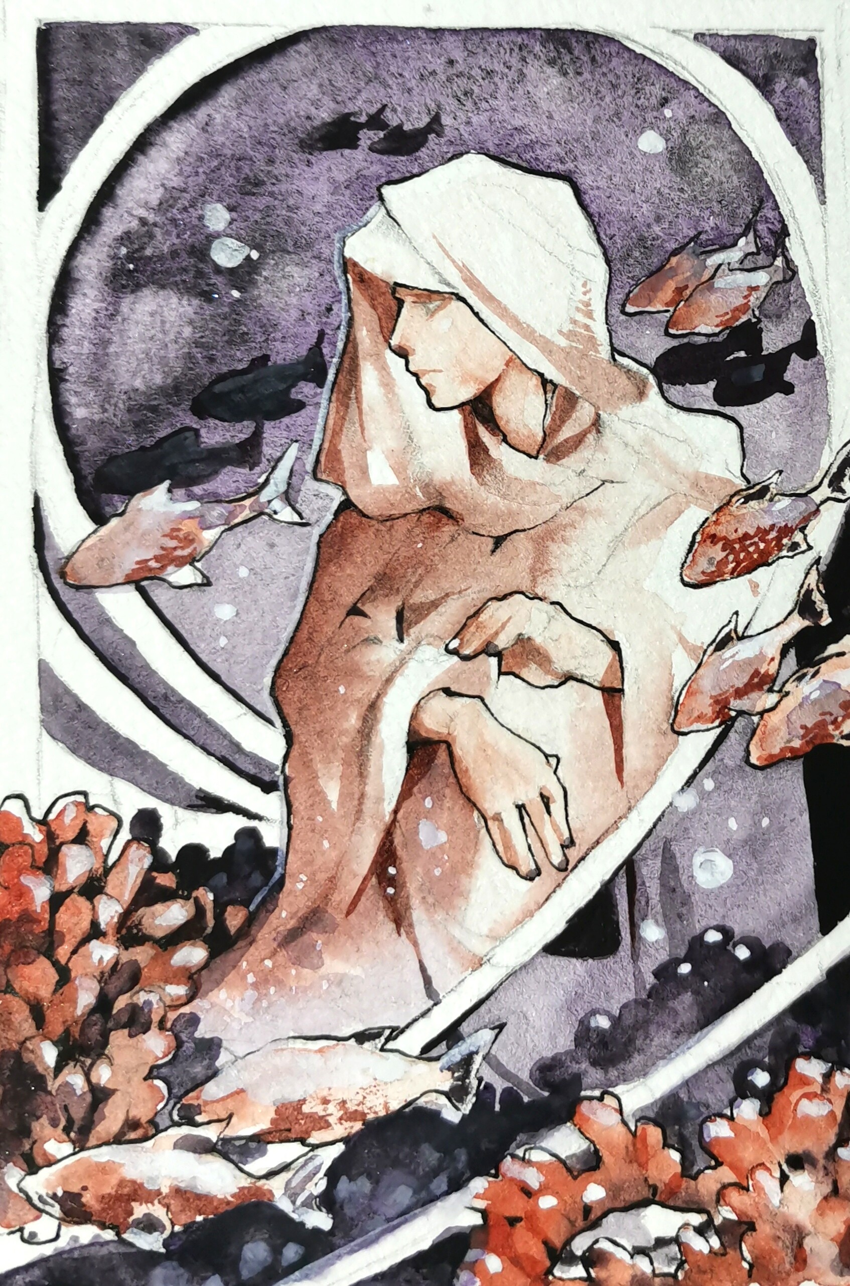 Koralle (ne Mischung aus Scharlach und einem Hauch goldocker Aero Colour acrylic ink)