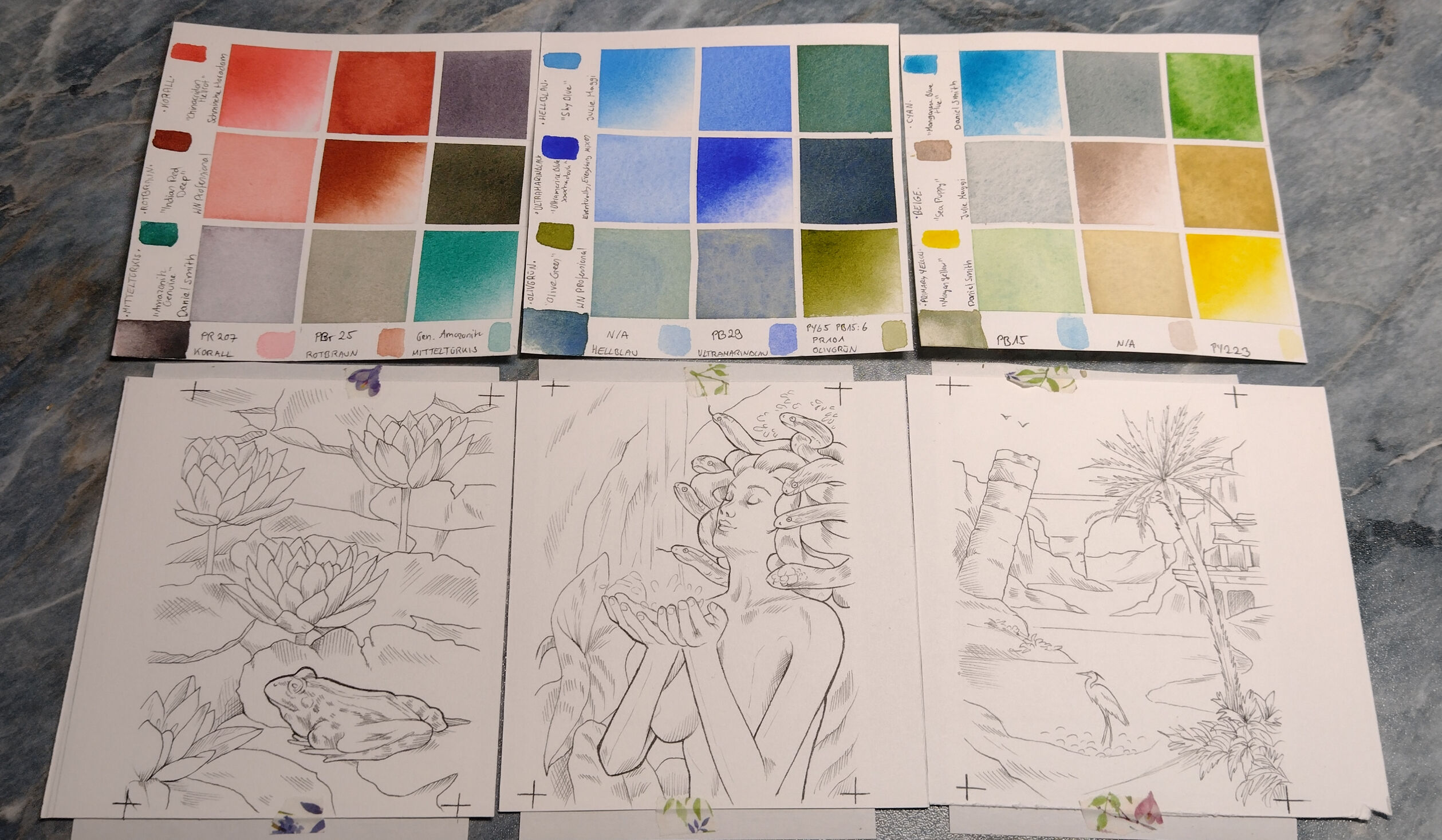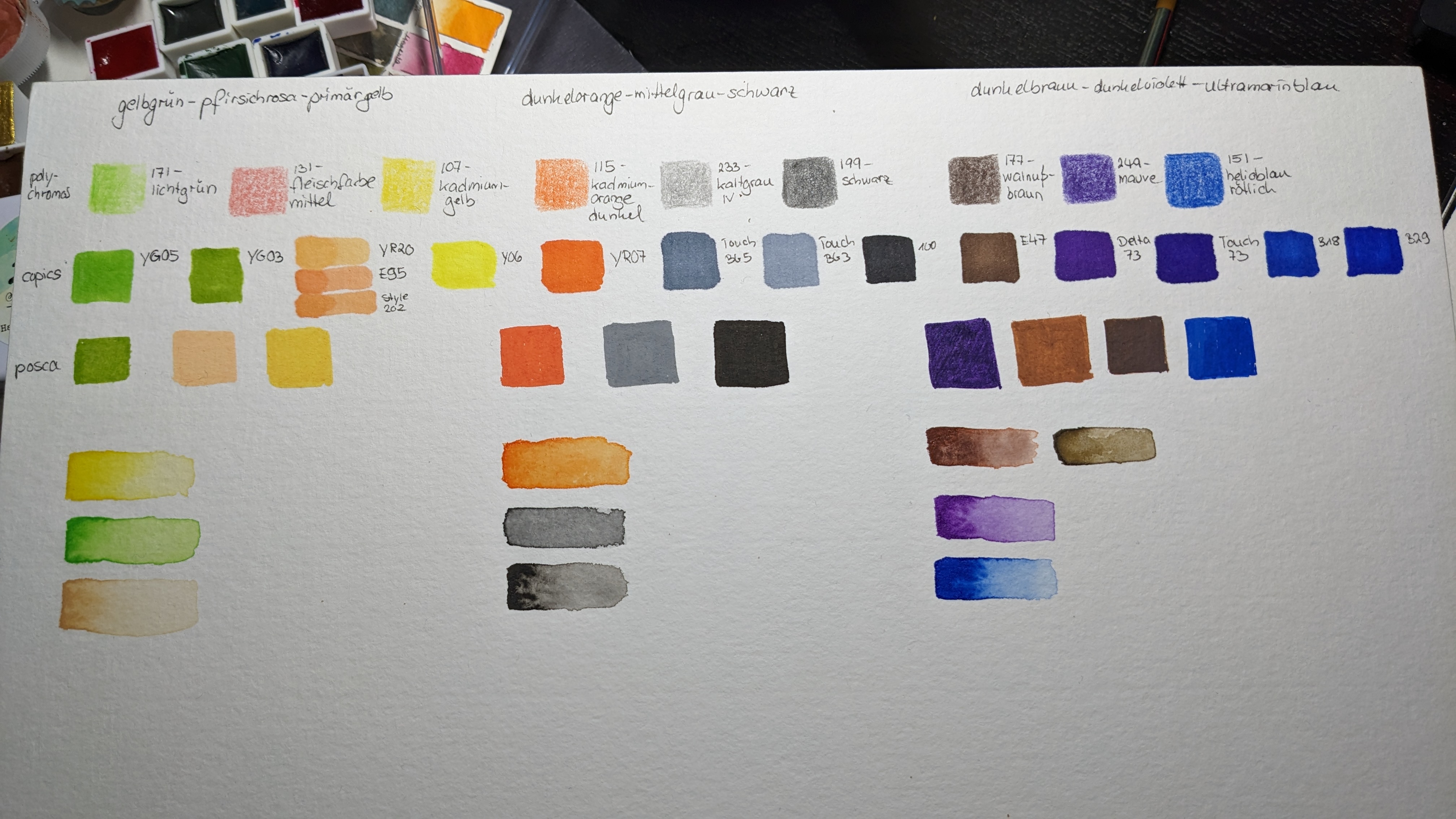 Ich habe auch mal meine Farben geswatcht, ich muss da ein bisschen “schummeln” weil ich farbentechnisch gar nicht so gut ausgestattet bin, naja