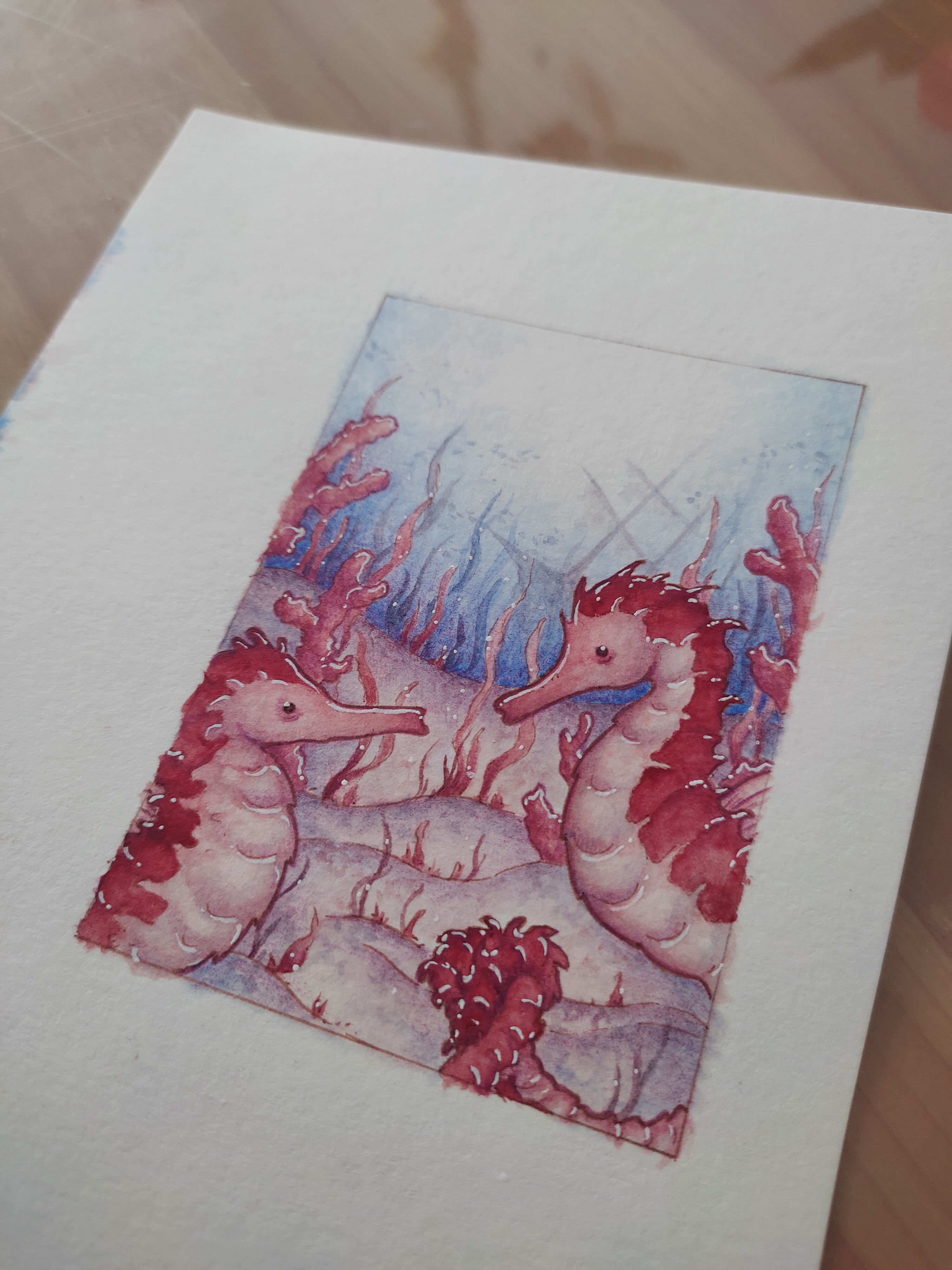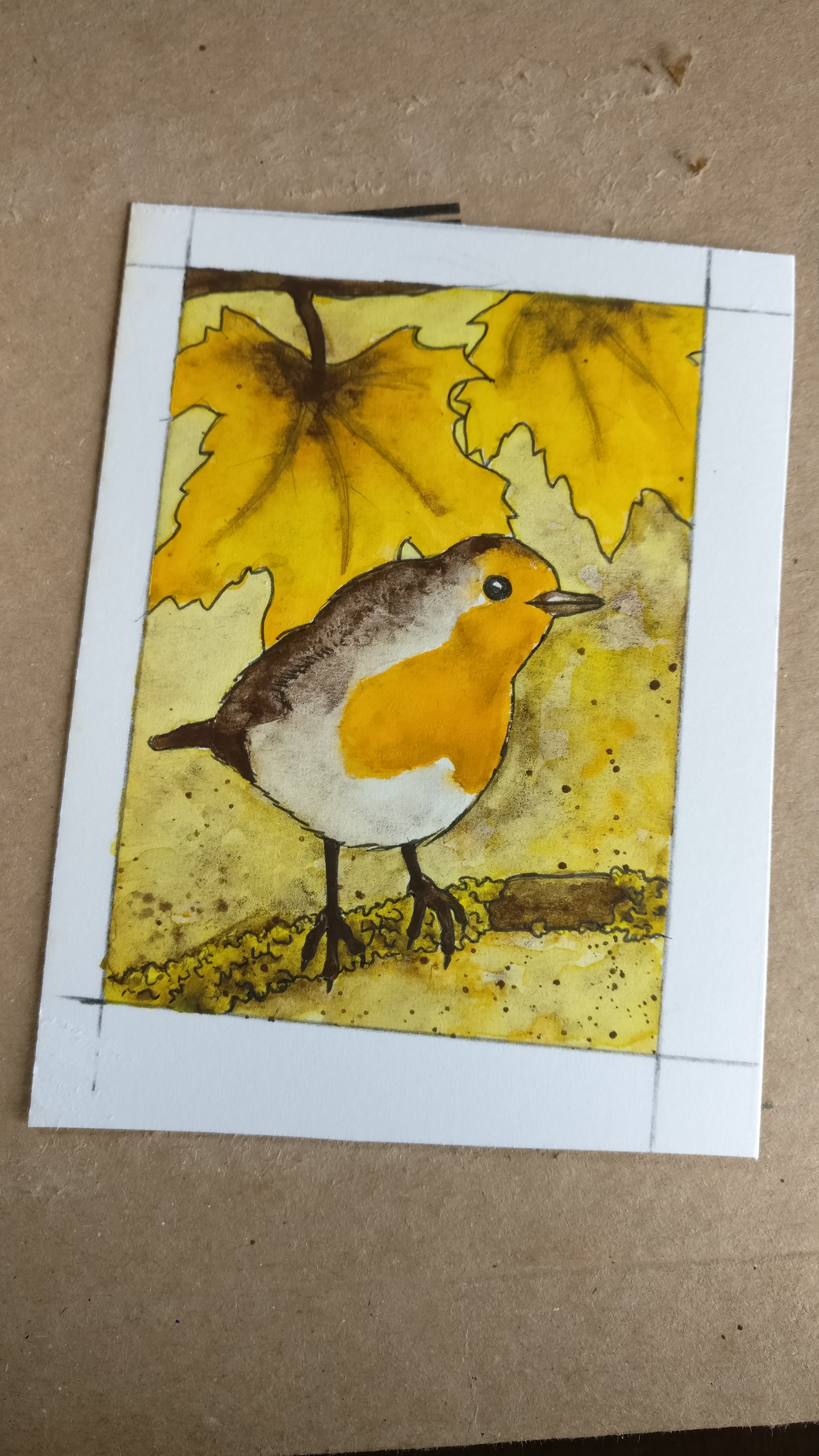 @Hiltia : An sich ein super niedliches Motiv, aber ich glaube, da kannst du noch etwas mehr rausholen! Aktuell stehlen wie ich finde die Blätter dem Rotkehlchen noch etwas die Schau durch die starken, dunklen Stellen am Blattansatz. Ich glaube, das ist Aquarell (bitte korrigiere mich, wenn nicht), da könnte es vielleicht gut aussehen, den Blättern noch etwas mehr Struktur/Schatten zu geben damit der Kontrast da nicht mehr ganz so groß ist und dafür dem Rotkehlchen noch ein paar Schatten spendieren, damit es mehr in den Vordergrund rückt.