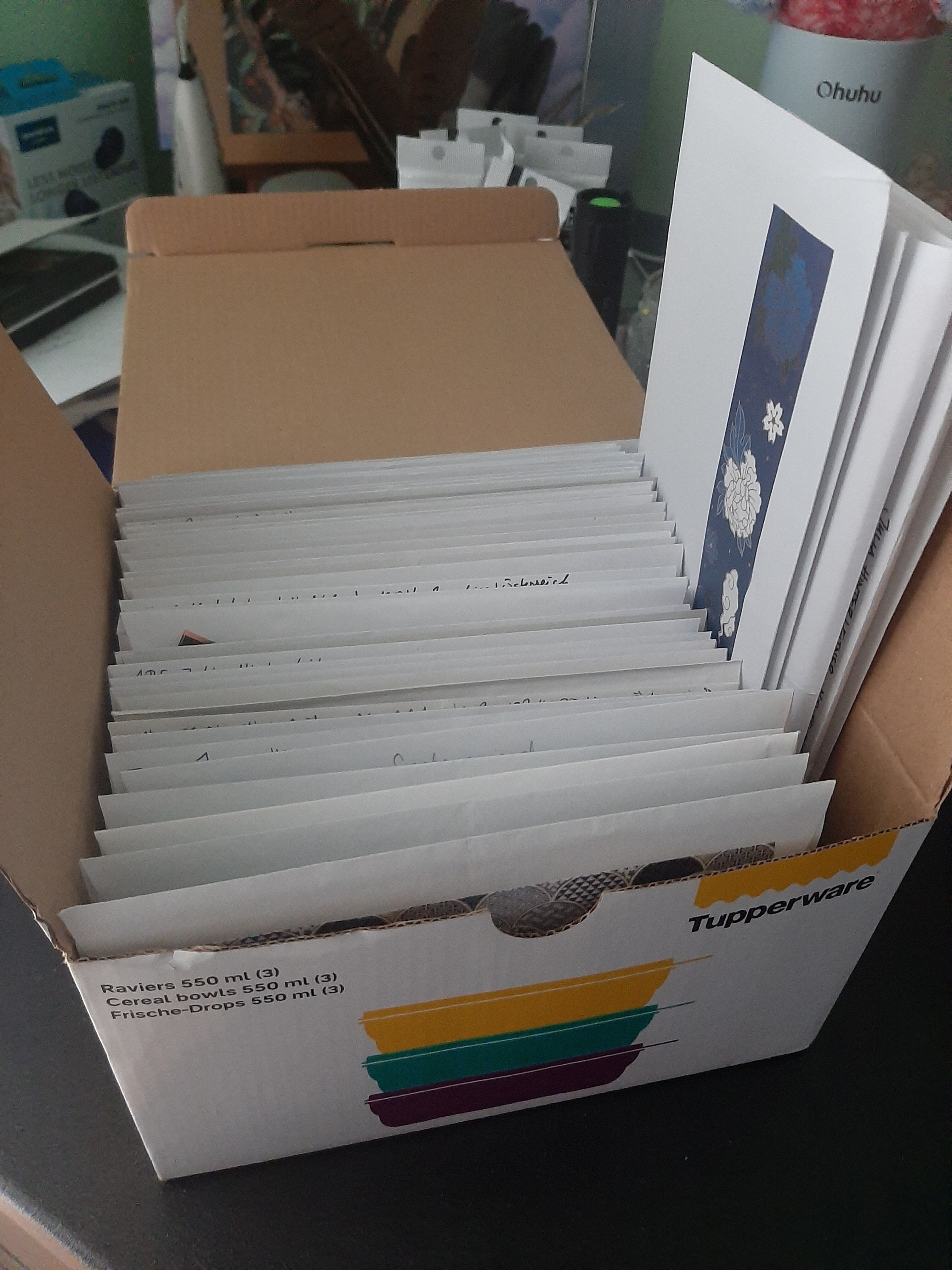 Und nun zu den großen Nachrichten: Der Verteil- und Verpack-Marathon ist abgeschlossen! Ich muss sie nur noch nach Economy und Priority aufteilen und morgen gehts dann ab zur Post :D