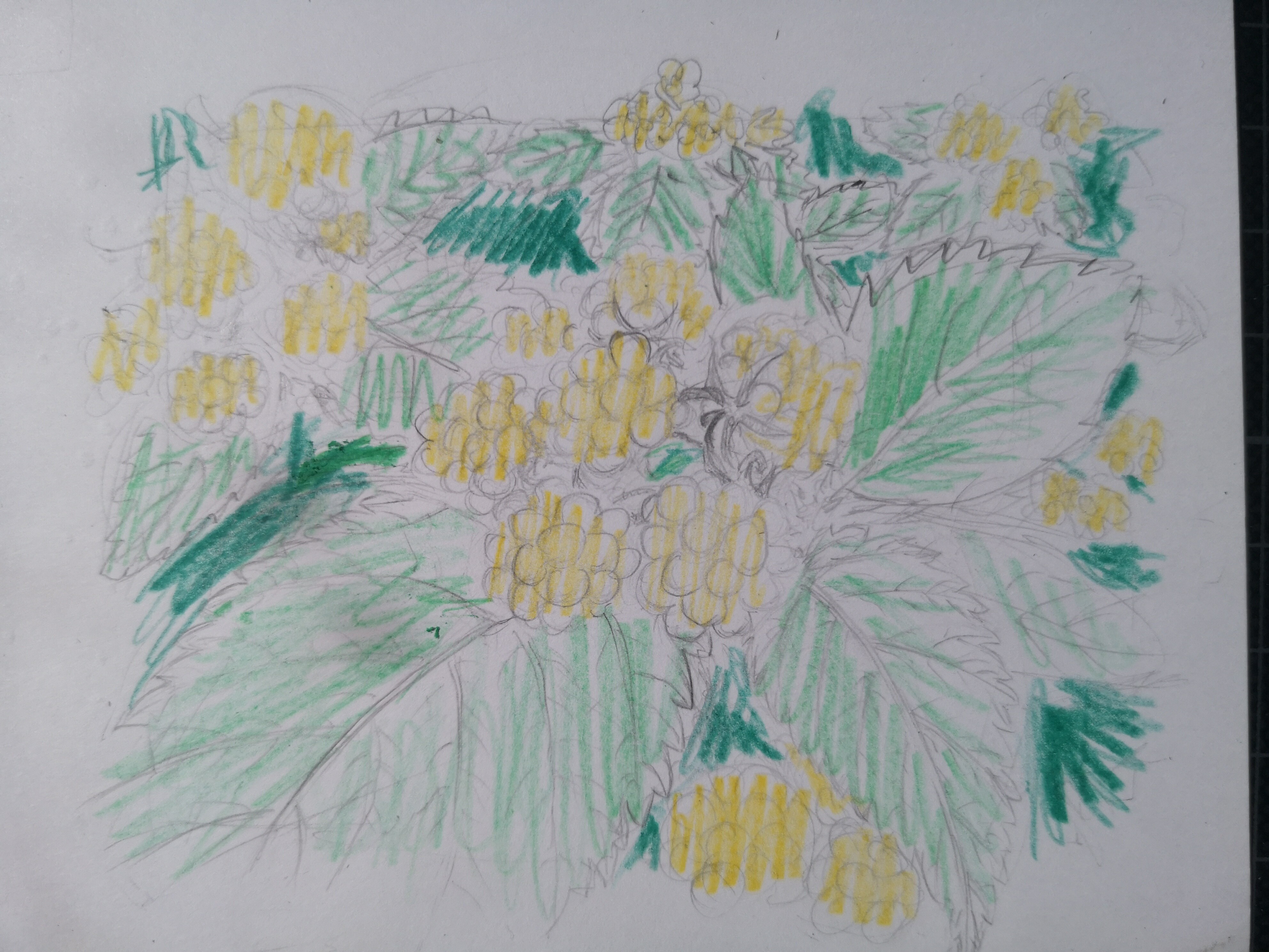 Wobei ich vorhin auch noch die Idee einer goldenen Himbeerpflanze für das Gelb/Minz/Dunkeltürkis hatte. @-@
