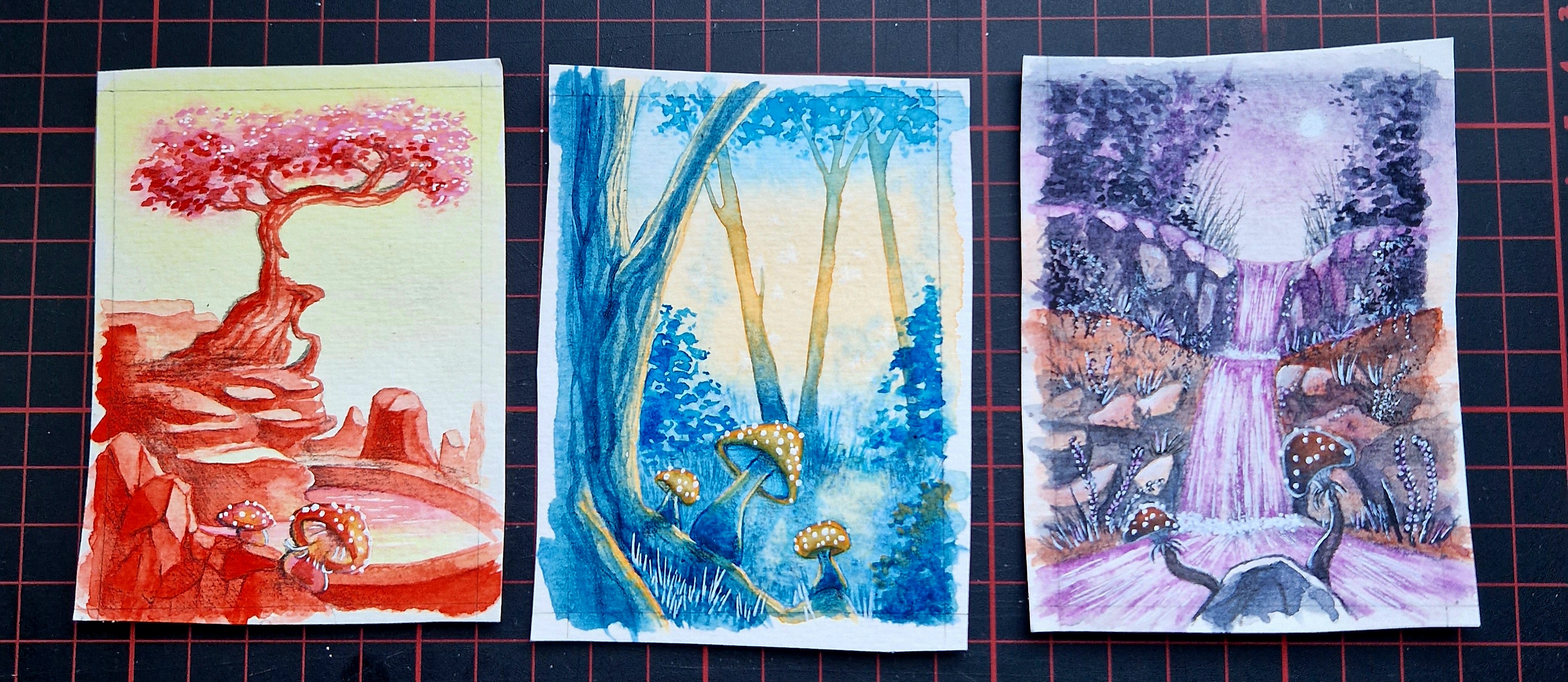 @MellyBell : Super hübsche Karten, ich mag es sehr, wie unterschiedlich die Atmosphäre auf allen ist <3 Dass die Farben auf Fotos/Scans nie ganz so werden, wie sie wirklich aussehen, ist leider immer so das Problem…