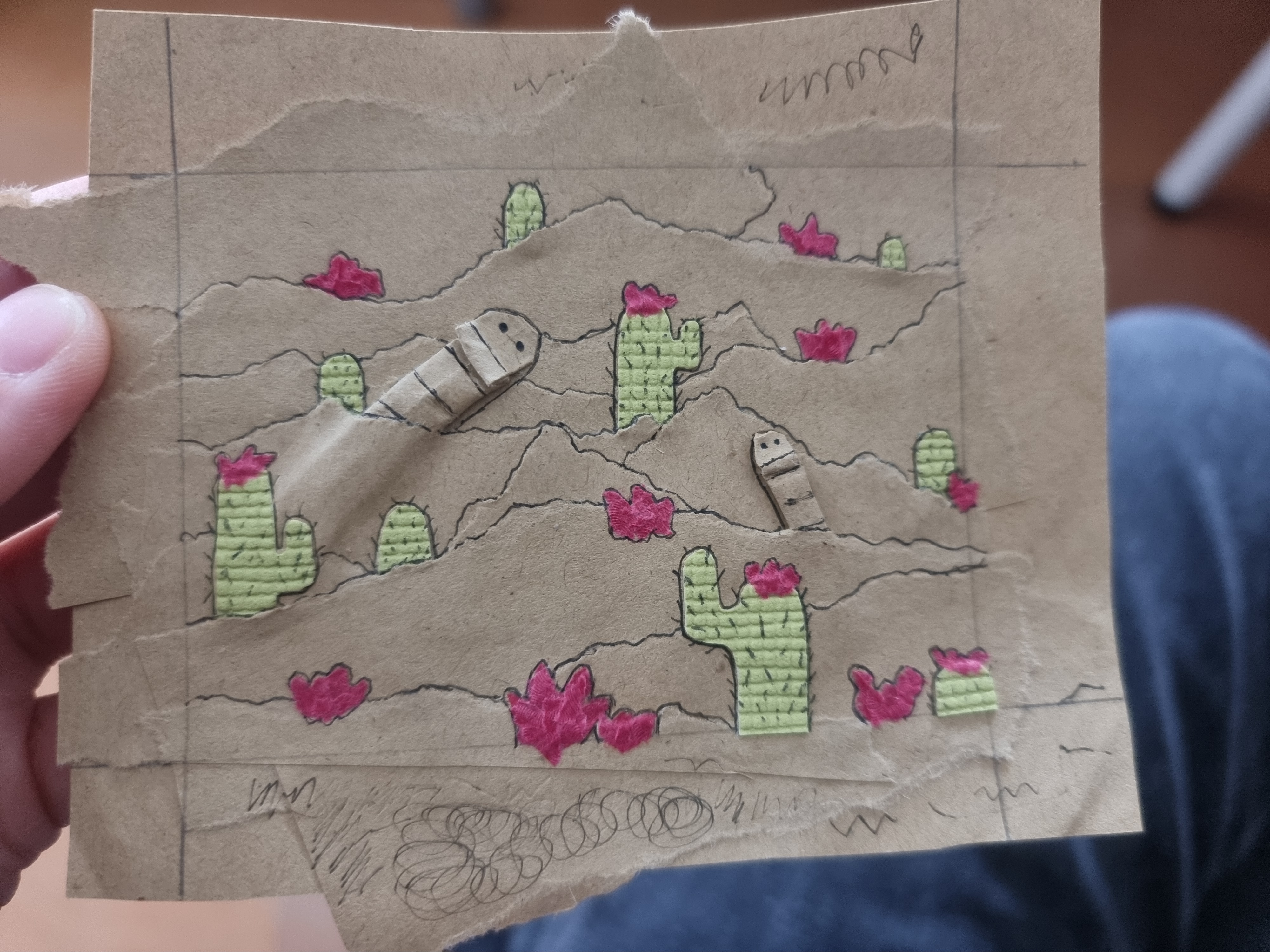 @Up-Quark : Sind das Sandwürmer? xD Das sieht super witzig aus - ich denke auch, dass der Stil so gut funktioniert, nur vielleicht bei den roten Blüten(?) hätte ich noch etwas nachgearbeitet. Ich weiß, es ist echt schwierig so fein auszuschneiden (und ich bewundere alle, die das machen, ich hätte da schon längst aufgegeben xD), aber da da teilweise so große Spalten zwischen Lines und Farbfläche sind, wirkt das etwas unsauber auf mich. Ich glaube, grade auch, weil die Kakteen ihre Konturen so gut ausfüllen