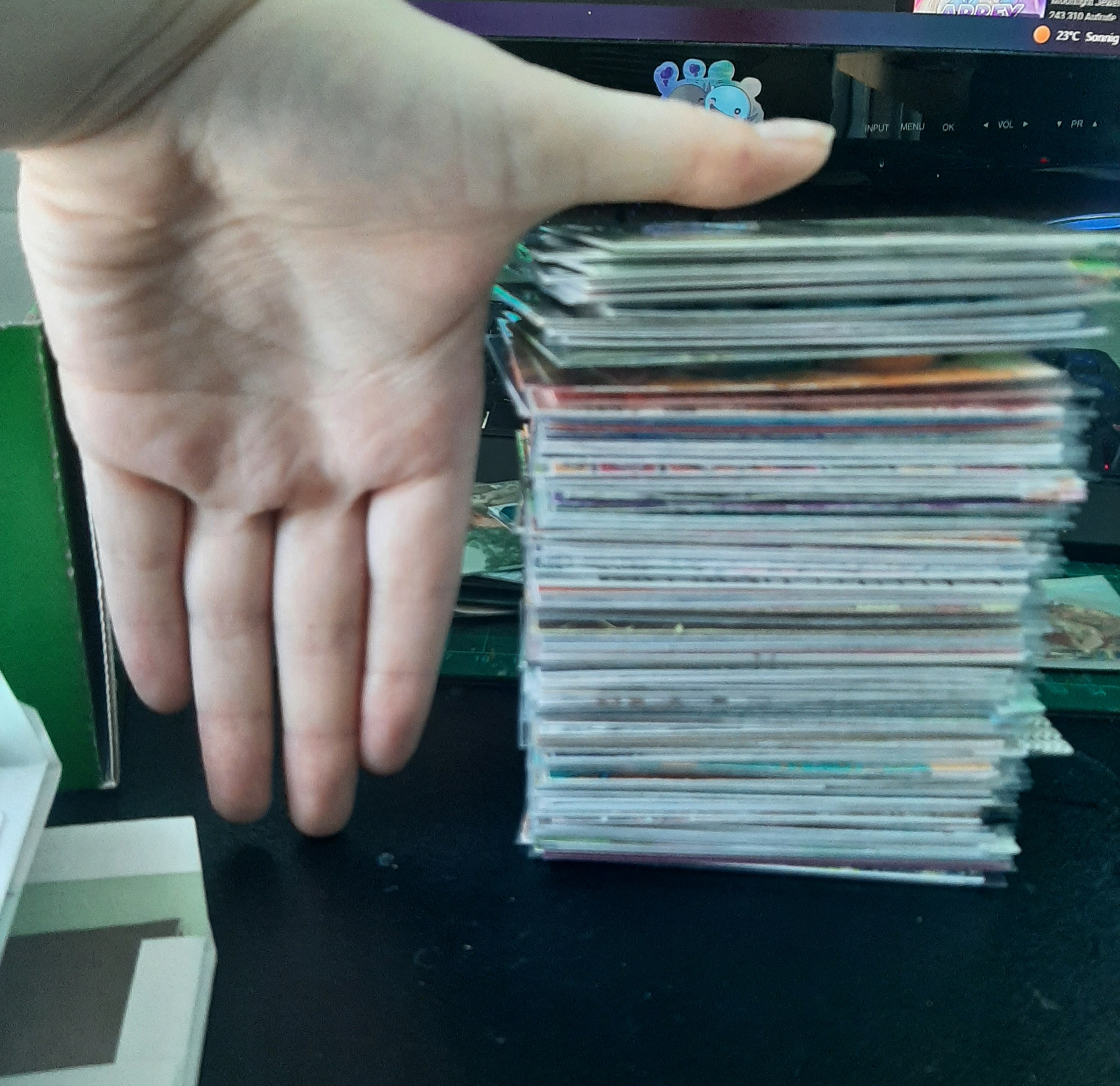 Und falls ihr euch schonmal gefragt habt, wie 111 KaKAOs auf einem Stapel aussehen (mit meiner winzigen Hand for scale):