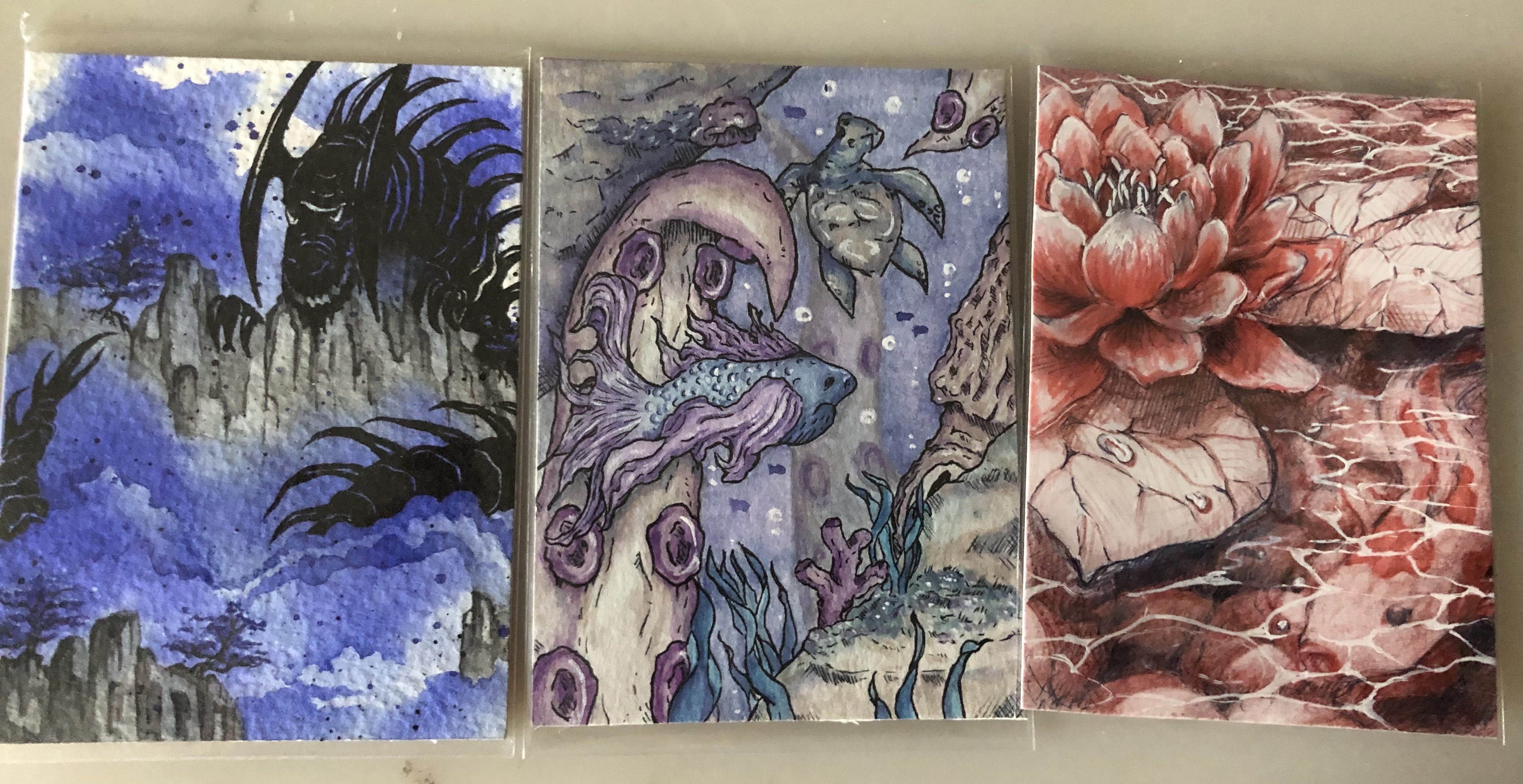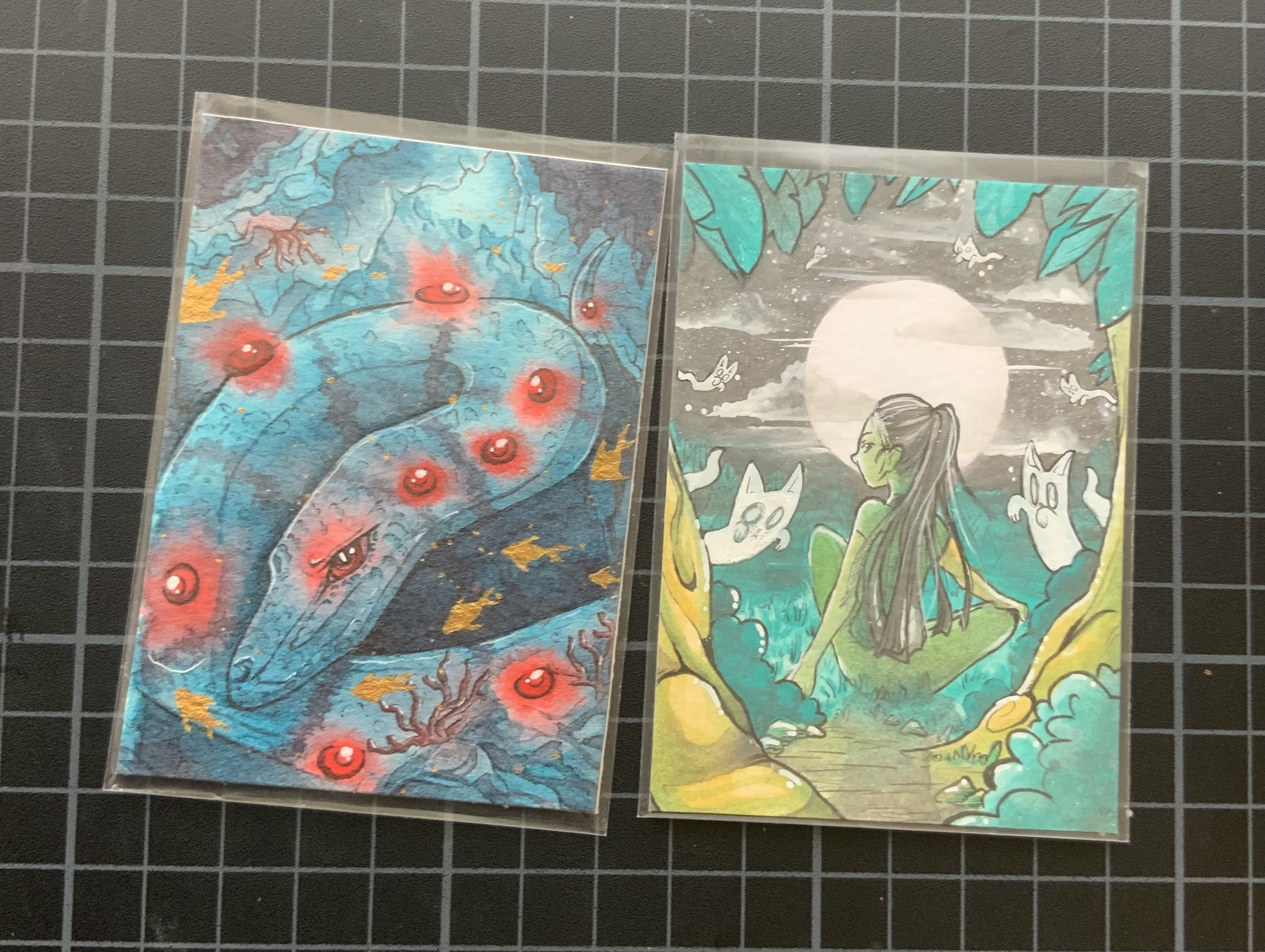@Atlicedrawsstuff - ein kleines Träumchen! Die Colo ist einfach so liebevoll und sorgfältig, die Drachenwesen sind niedlich und ich liebe die Gestaltung der Katzenheldin. Außerdem: Hydrangea!! Ich lüüübe Hortensien, also wirklich die perfekte Karte für mich. >U<