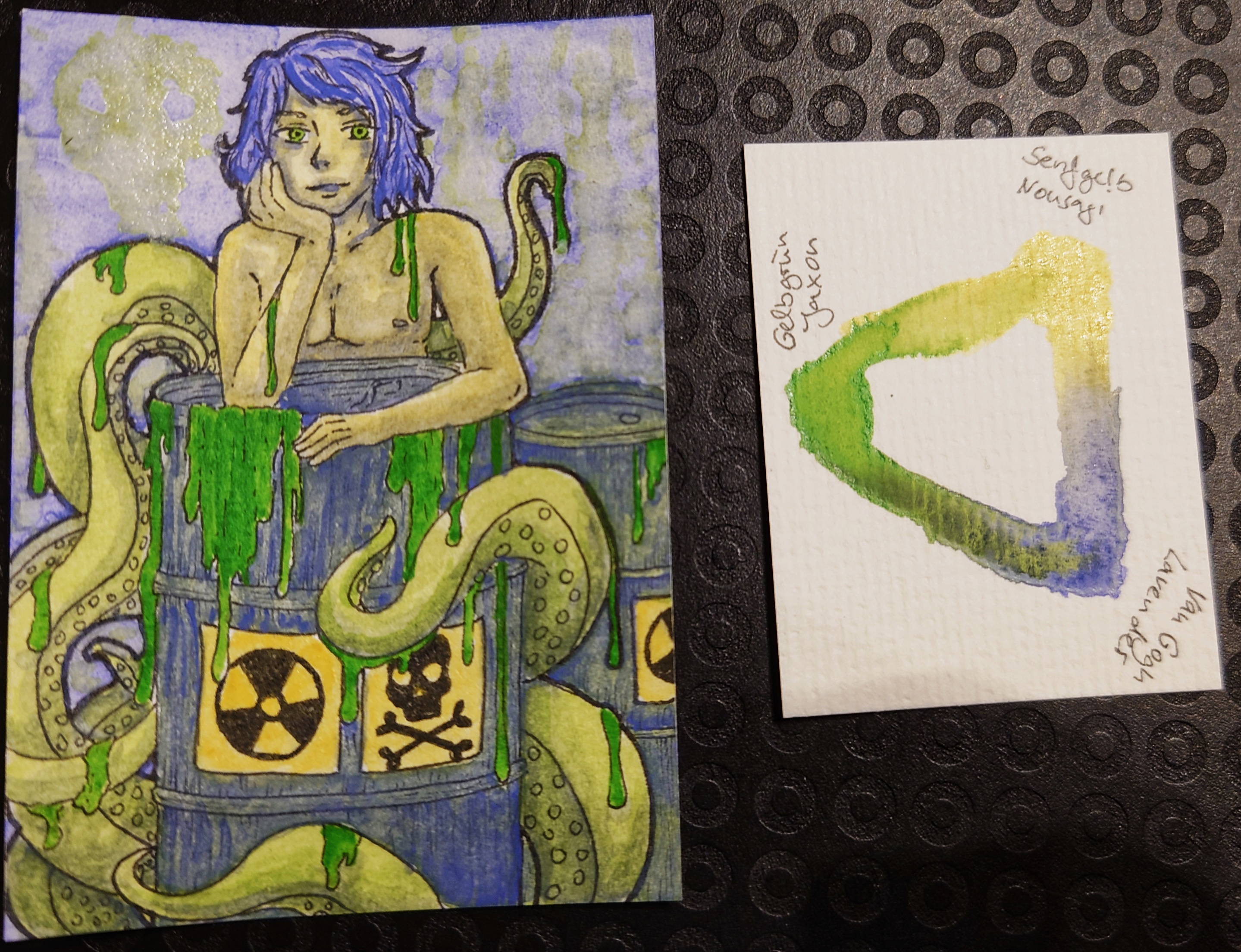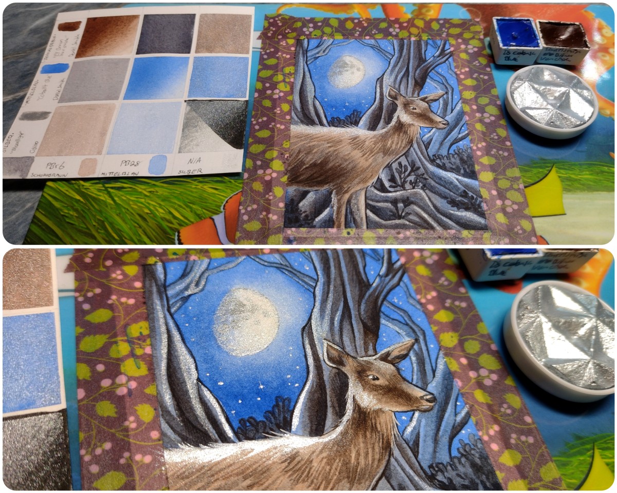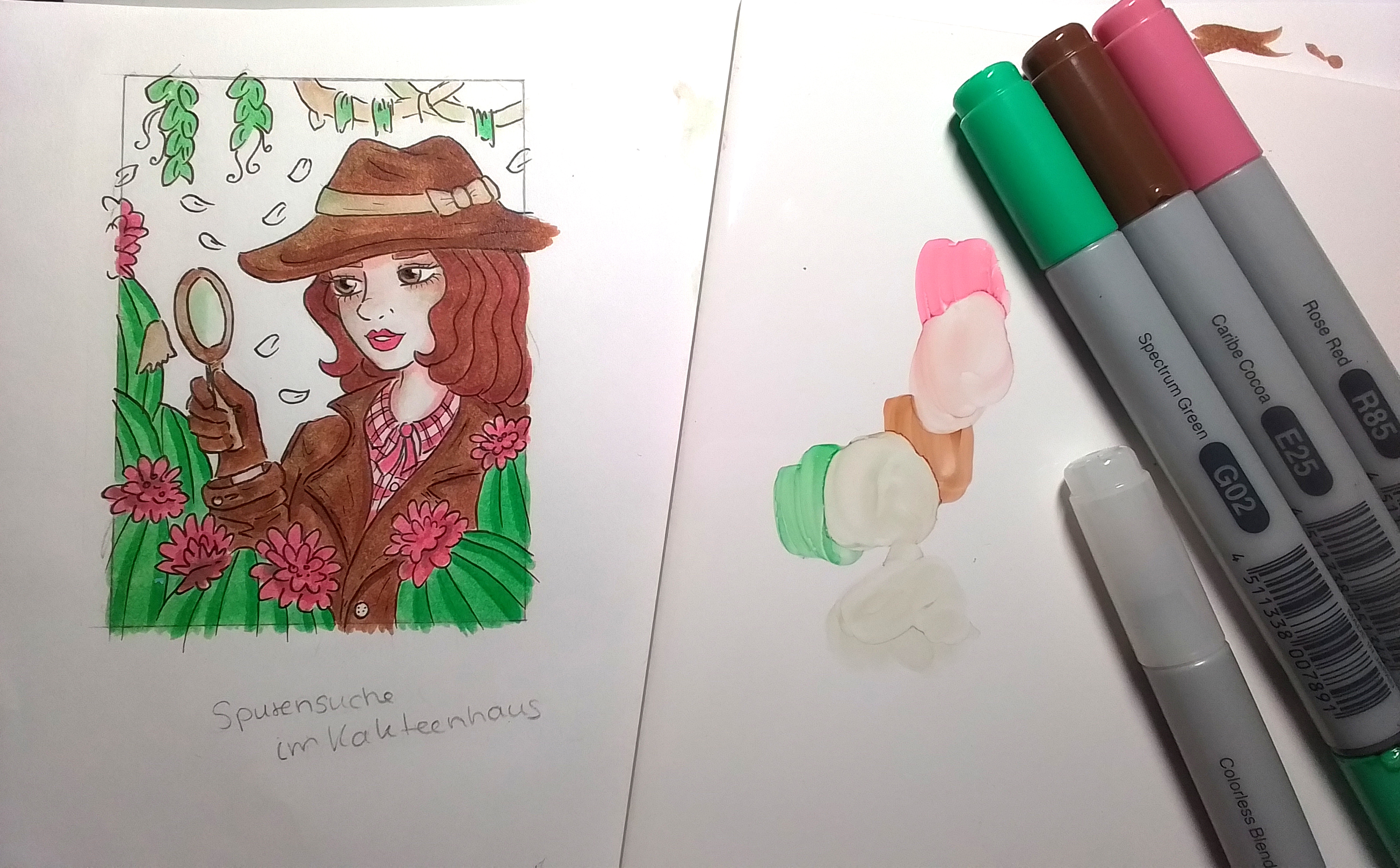 dann fiel mir ein mit den Copicfarben auf eine Fließenplatte zu malen, dort separat mit dem Blender zu mischen und wieder auf das Bild aufzutragen ^_^ das hatte ich vorher noch nie ausprobiert…