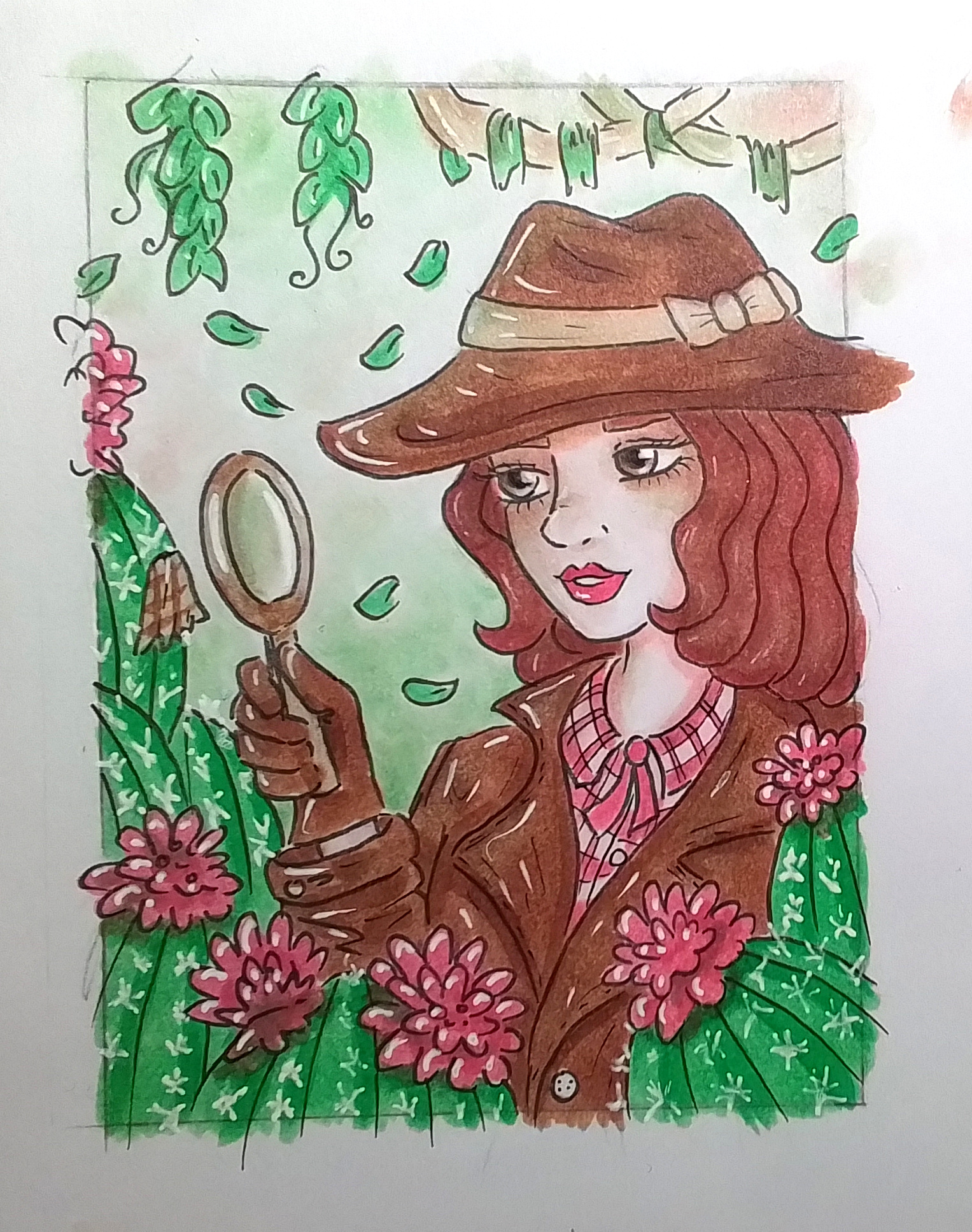 Ich dachte vielleicht könnte ich die hängenden Pflanzen oben pastellig erweitern, in der Mitte bin ich nicht sicher, wie ich es machen könnte…