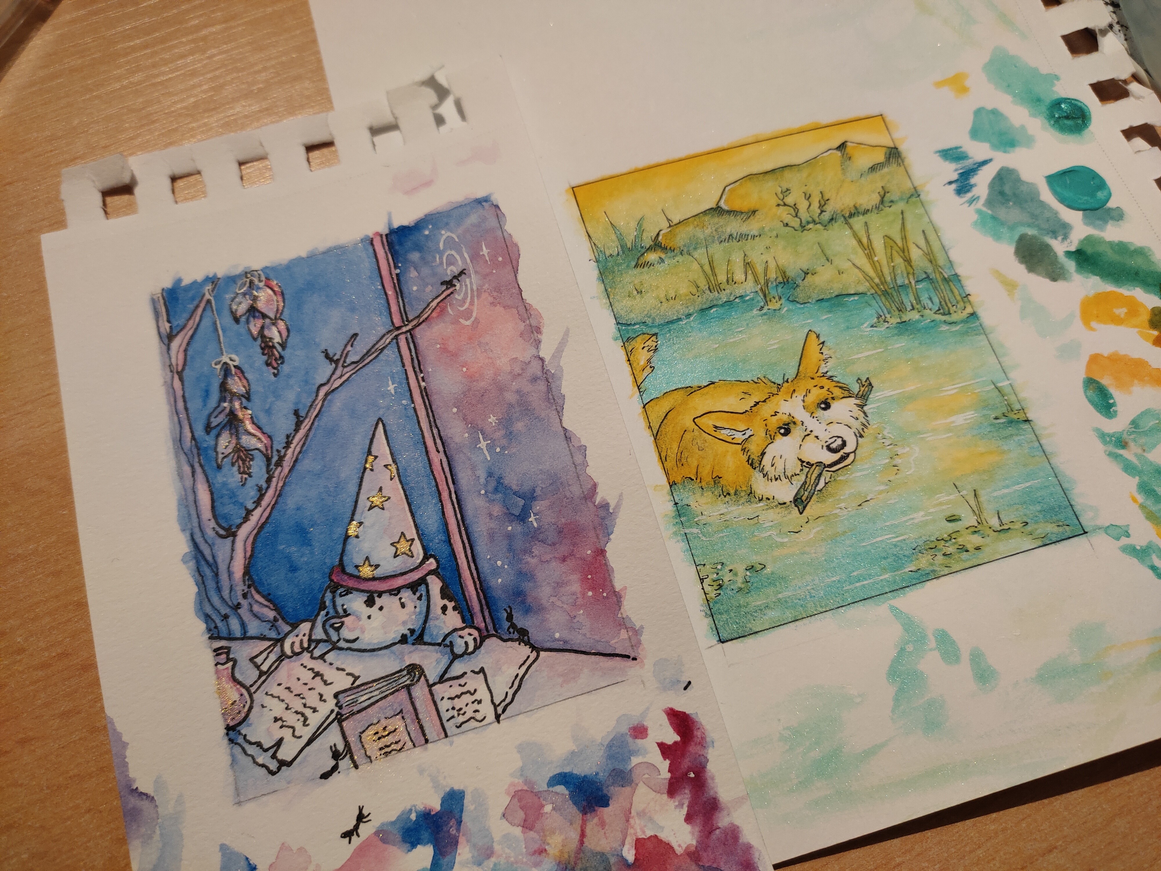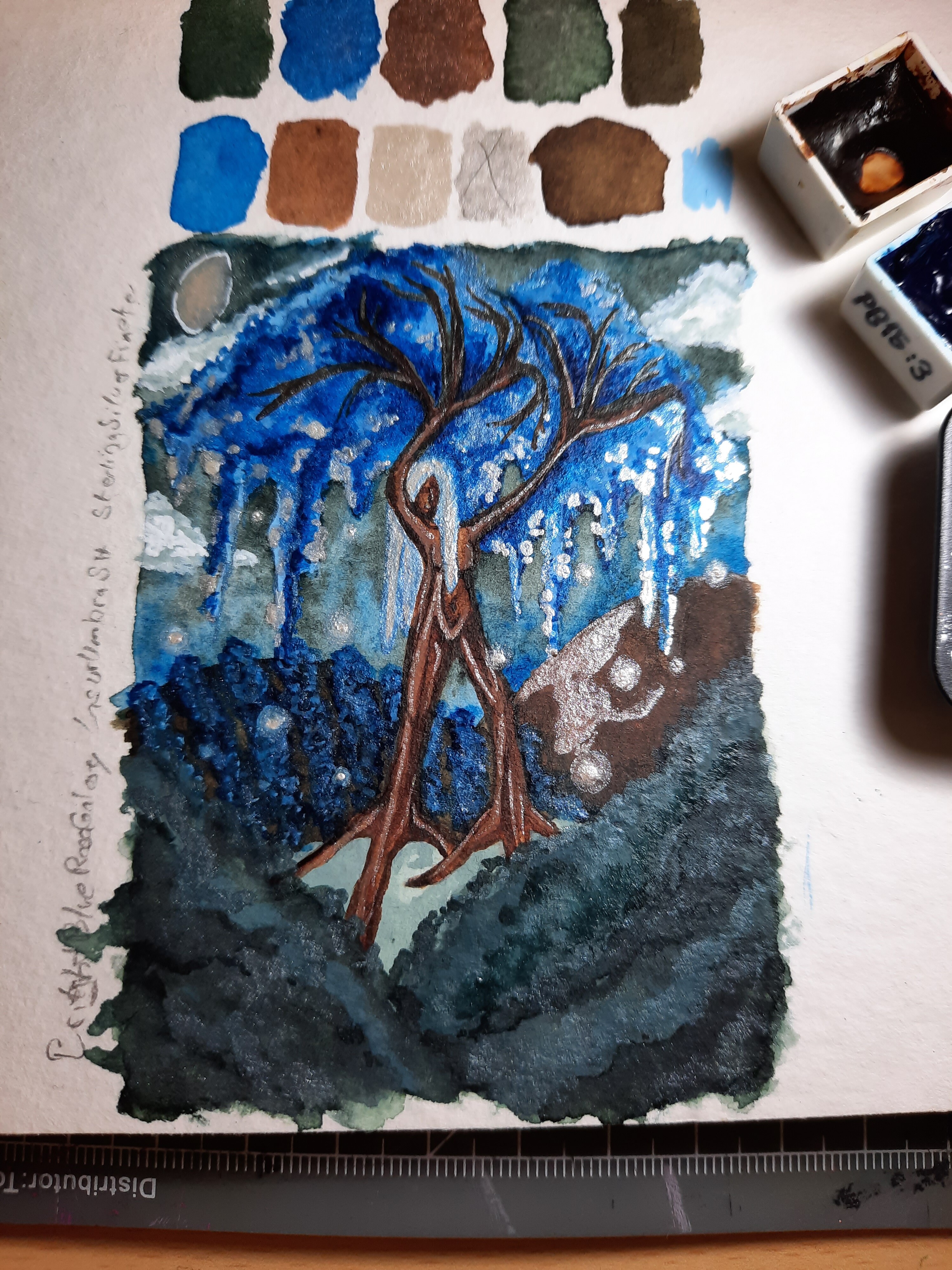 Um auch etwas zum Thema “weißer Gelstift” beizutragen: Damit hab ichs irgendwann aufgegeben, die waren mir immer entweder zu dick, haben nicht richtig funktioniert, oder ne Mischung aus beiden. Hatte dann ne ganze Weile die pH Martin’s Pen White Tusche, die ist super - ich verwende sie bloß zu wenig, die ist mir nach der Hälfte des Glases oder so immer eingetrocknet. Mittlerweile bin ich auch Team weiße Gouache/Acryl, lässt sich sowohl super fein als auch flächig mit Pinsel auftragen und ich kann entscheiden, ob ich es deckend oder etwas transparent möchte
