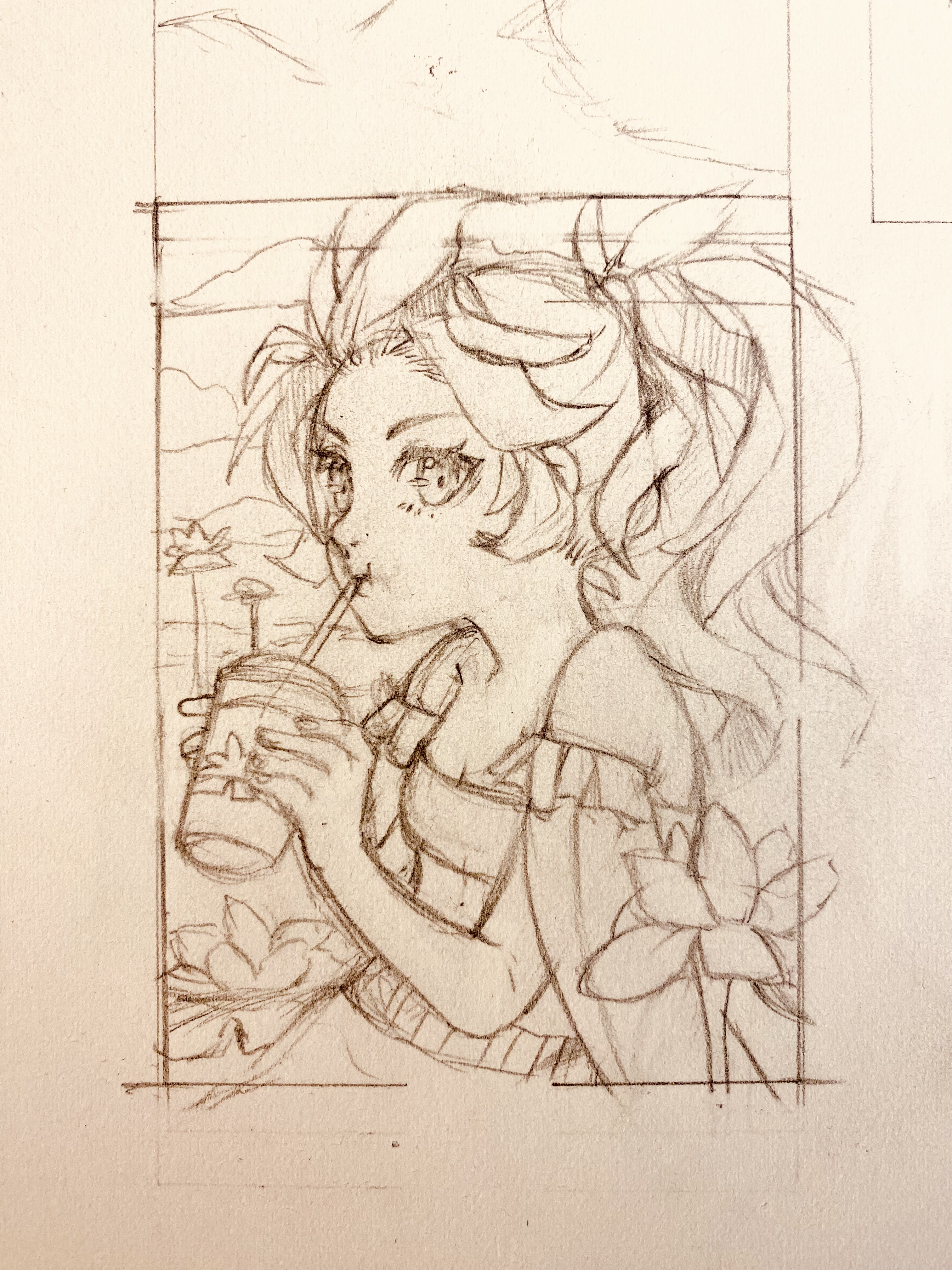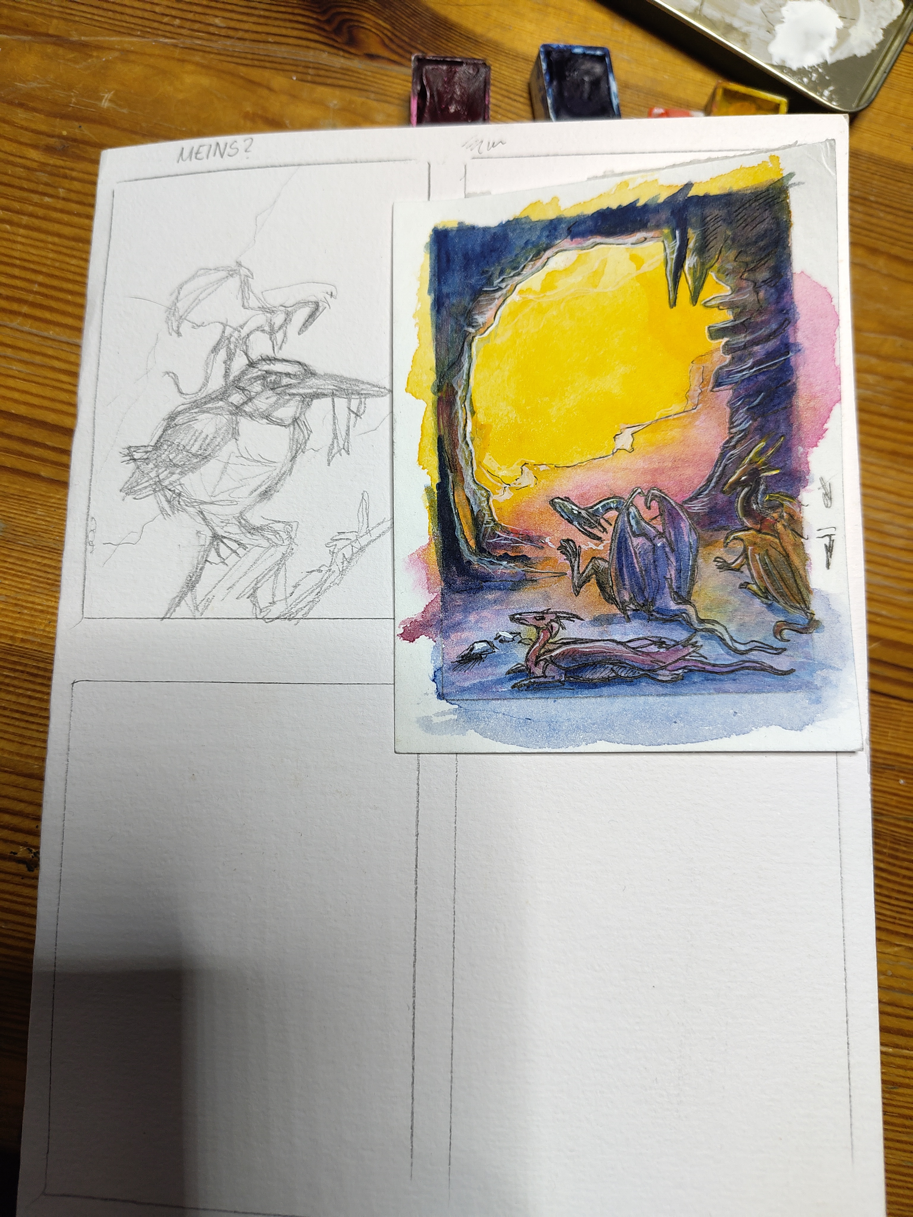 Hier auch mal ein kleines Lebenszeichen von mir. Die aktuellen Temperaturen lassen mich gerade in Zeitlupe zeichnen, aber ein Scribble davon ist schon gelined, yey! Fürs Gedankenkino schreibe ich mal meine Farbkombis dazu, aber welche Medien ich jeweils pro Farbe verwende, weiß ich selbst noch nicht :“D