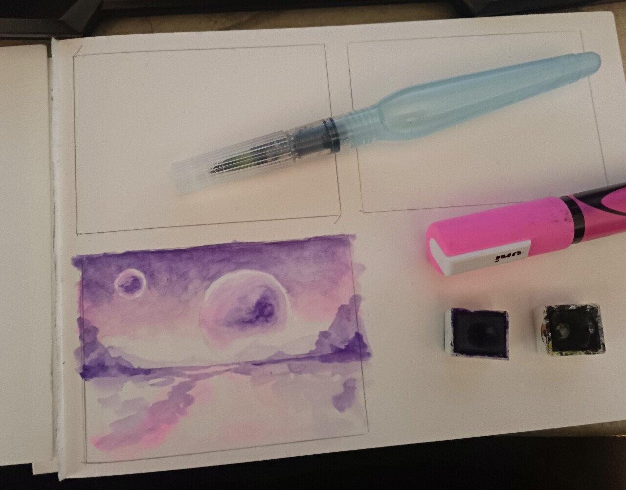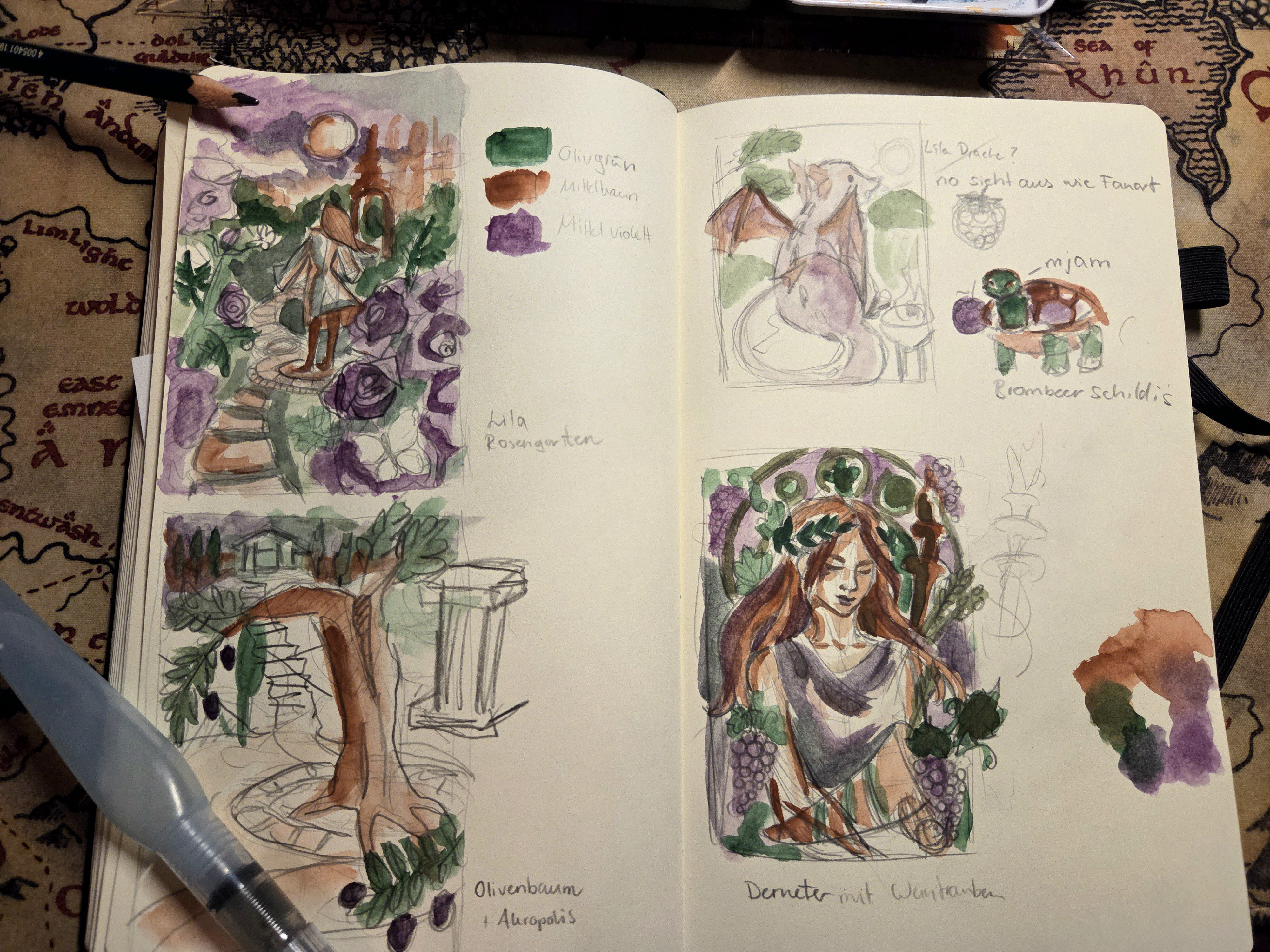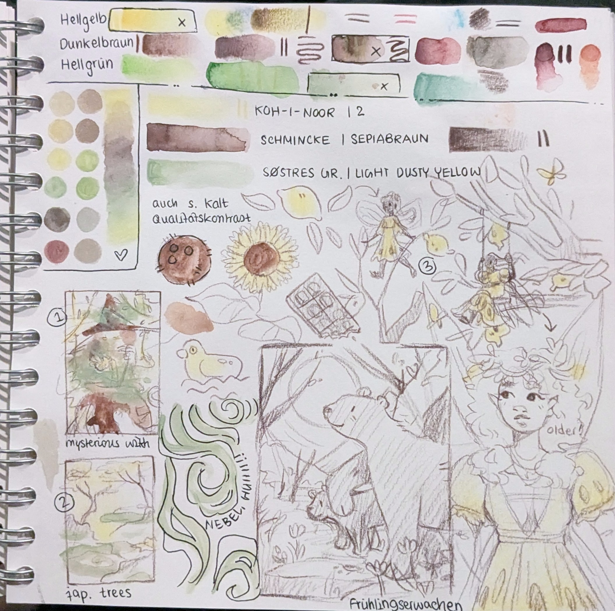 Die groben Skizzen sind jetzt noch mit aquarellen aber später dann evtl mit Öl (warte noch auf Olivgrün weil ich weder in aquarell noch Öl Oliv habe) - ich hoffe man erkennt was, meine skizzen sind nie besonders ordentlich
