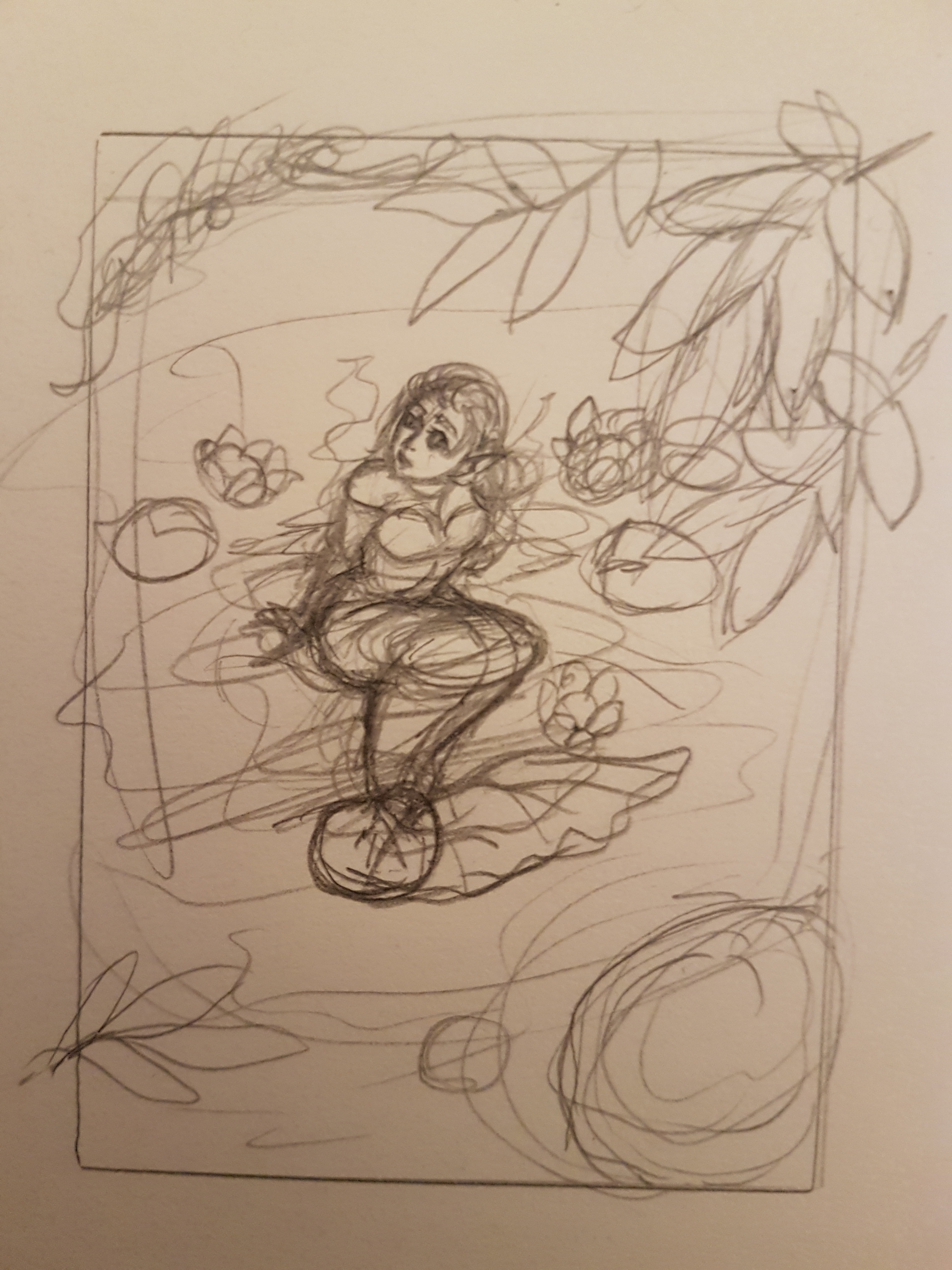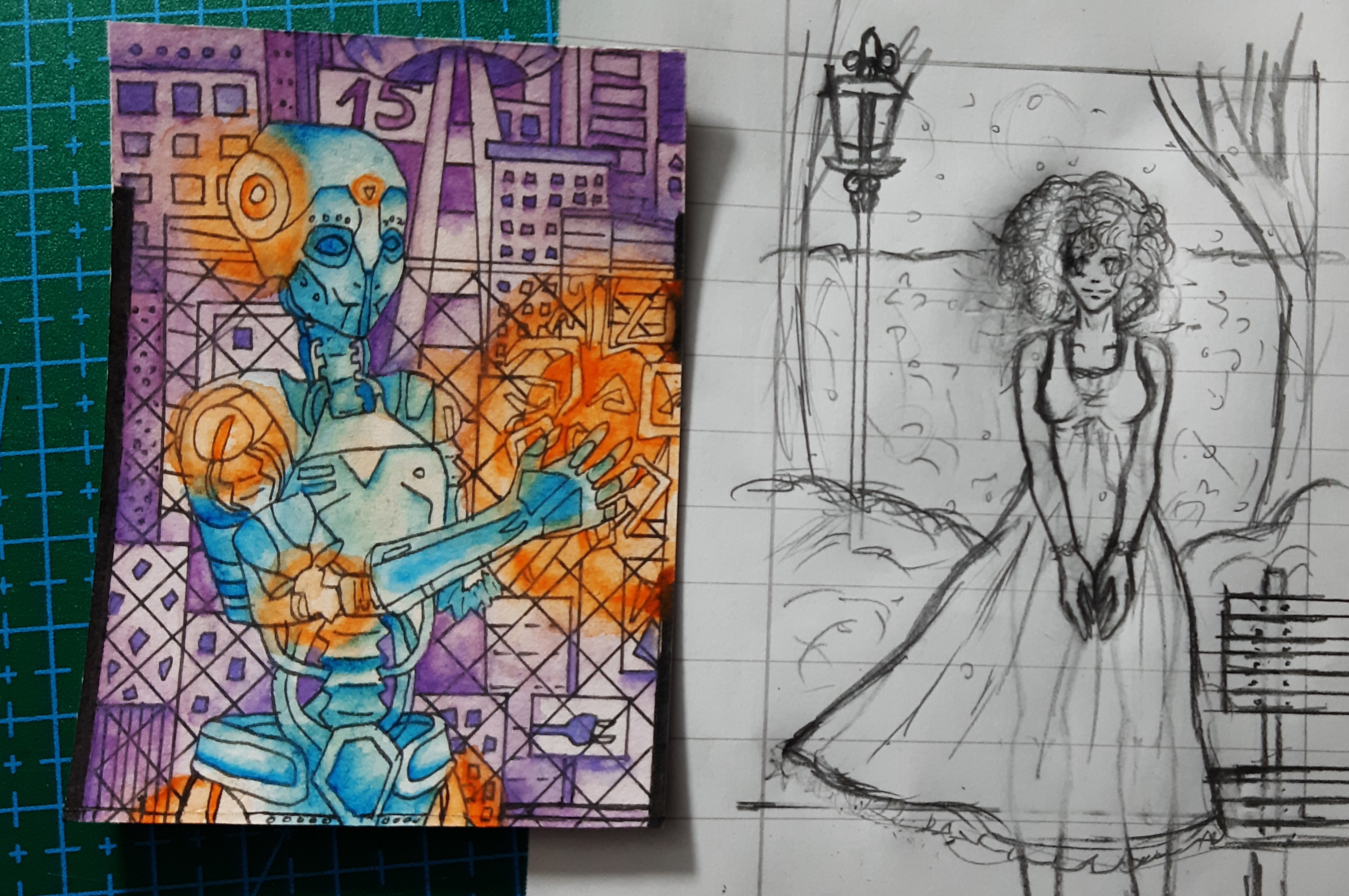 Das wäre meine Skizze für die letzte Karte. Diesmal werde ich mein Glück mit Aquarellbuntstiften versuchen.