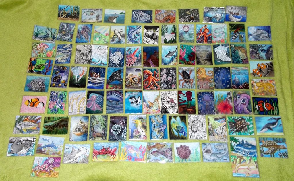 Bei mir gelandet sind die Karte “Quallentanz” von Rikaru mit den tollen, gleichzeitig bunt und transparent wirkenden Quallis :) Und mein absoluter Oberfavorit of Oberfavoritigkeit (Daaaanke, Prayer <3 ), das irre detaillierte und so verdammt schön colorierte “Korallenriff” von Pseudocreobotra, von dem ich nie gedacht hätte, dass ich es tatsächlich bekomme.