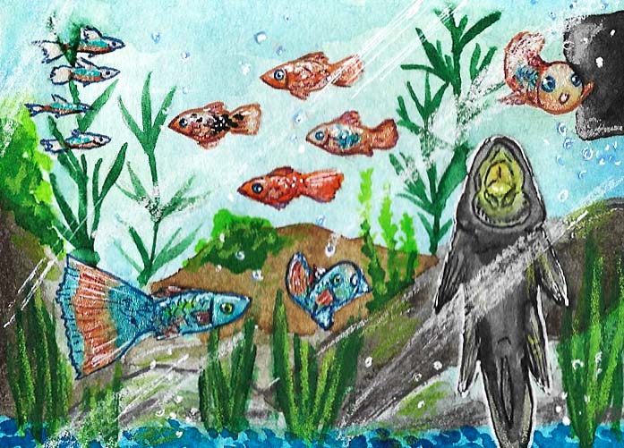 Ich wollte damit ein Aquarium darstellen, mit mehreren Fischen darin wie man sie eben kennt.
