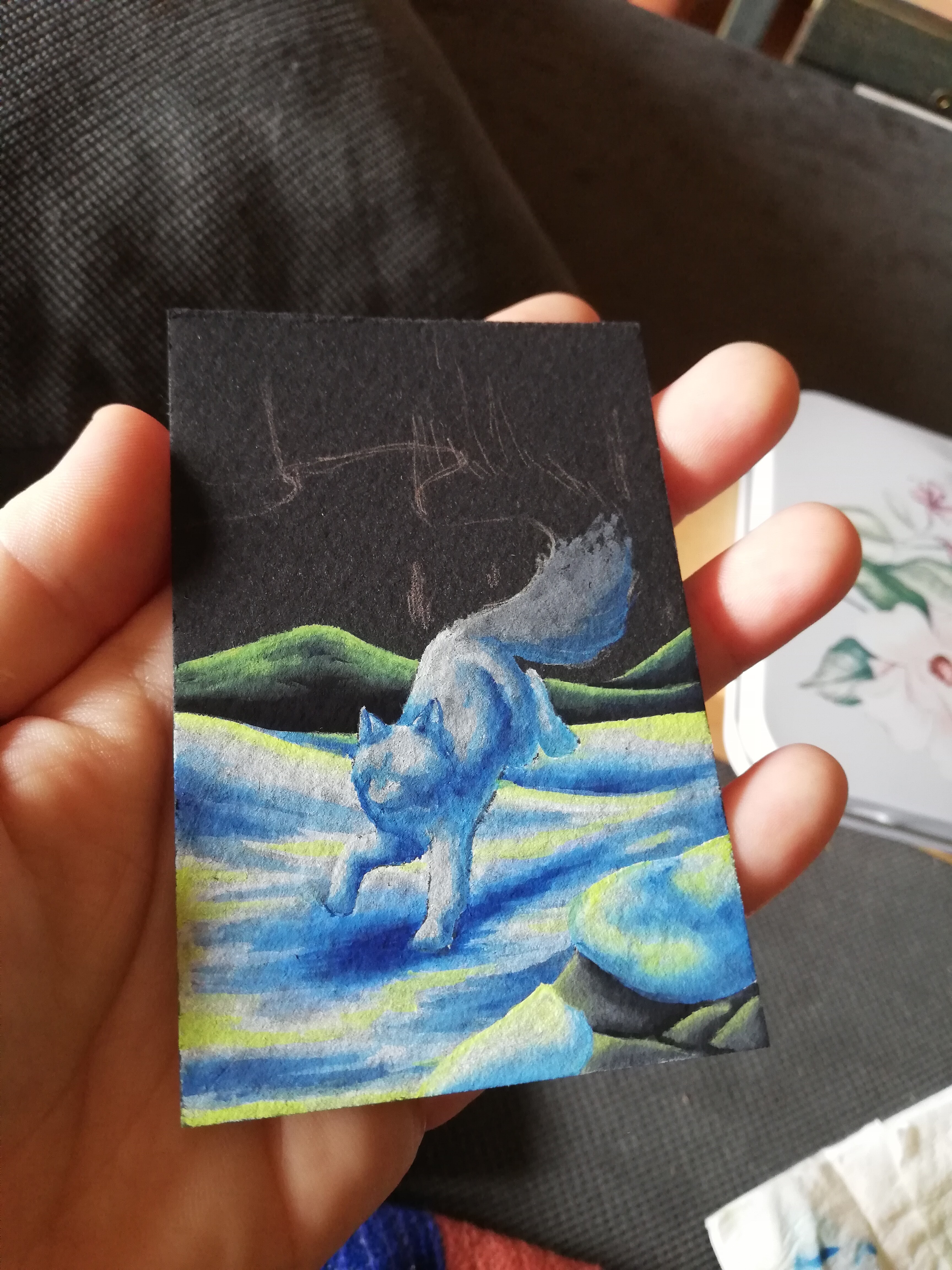 Ich bin gerade unschlüssig. Mir gefällt die Karte so. Das Portrait ist auch detailreich genug, dass du den Hintergrund so lassen kannst. Mit dem Fuchs vorne vor wäre sie noch einen Tucken interessanter, denke ich.