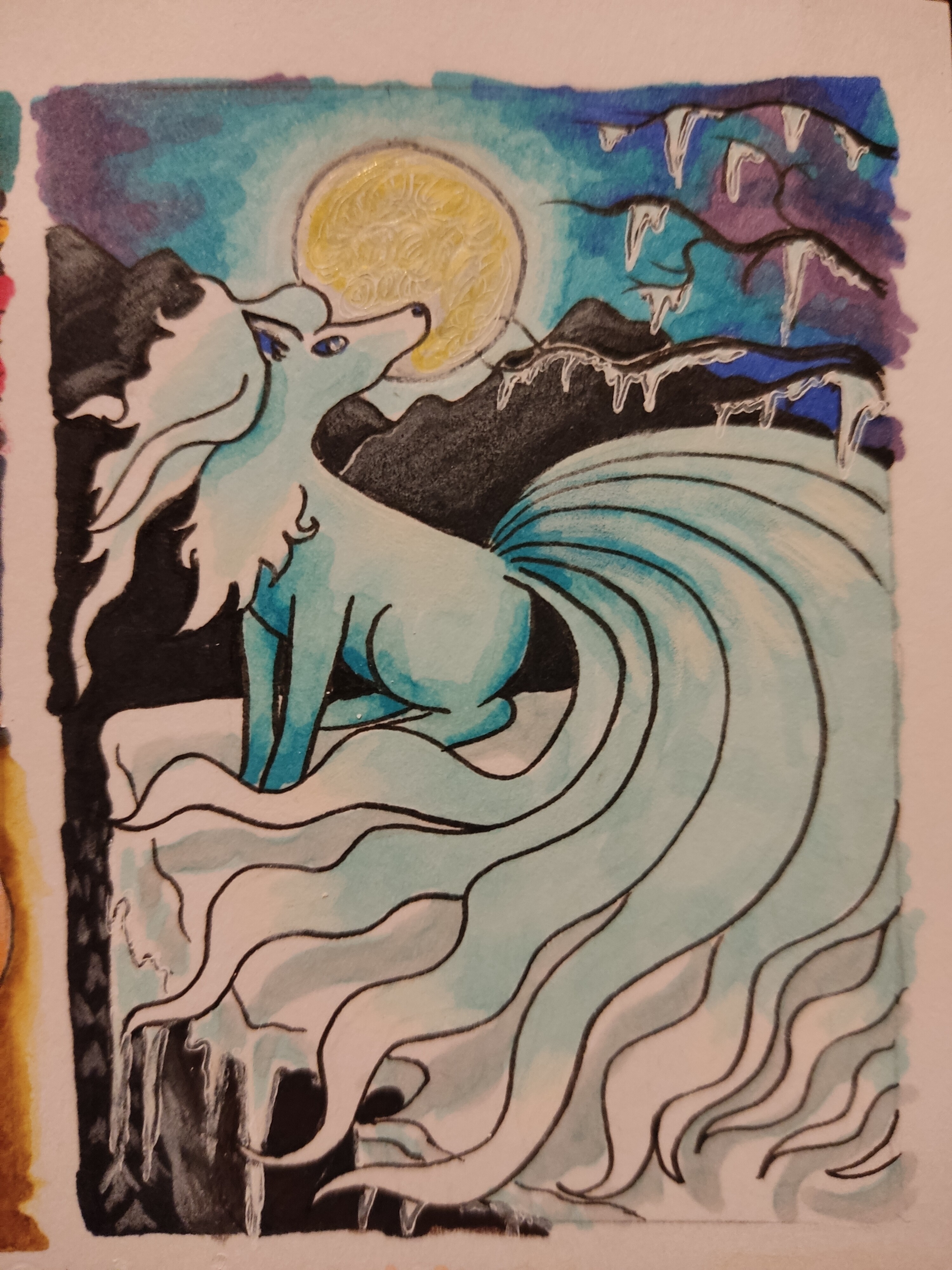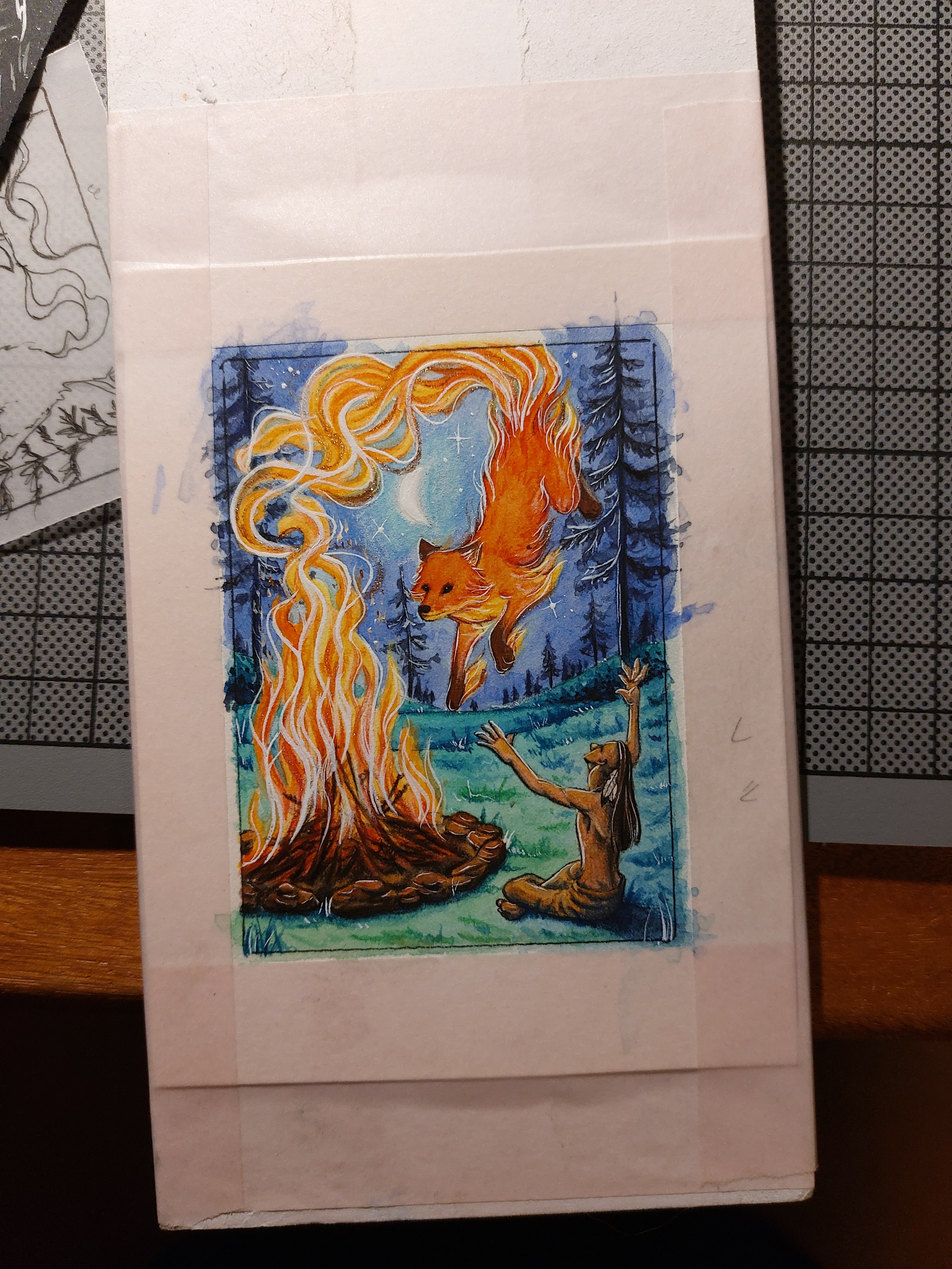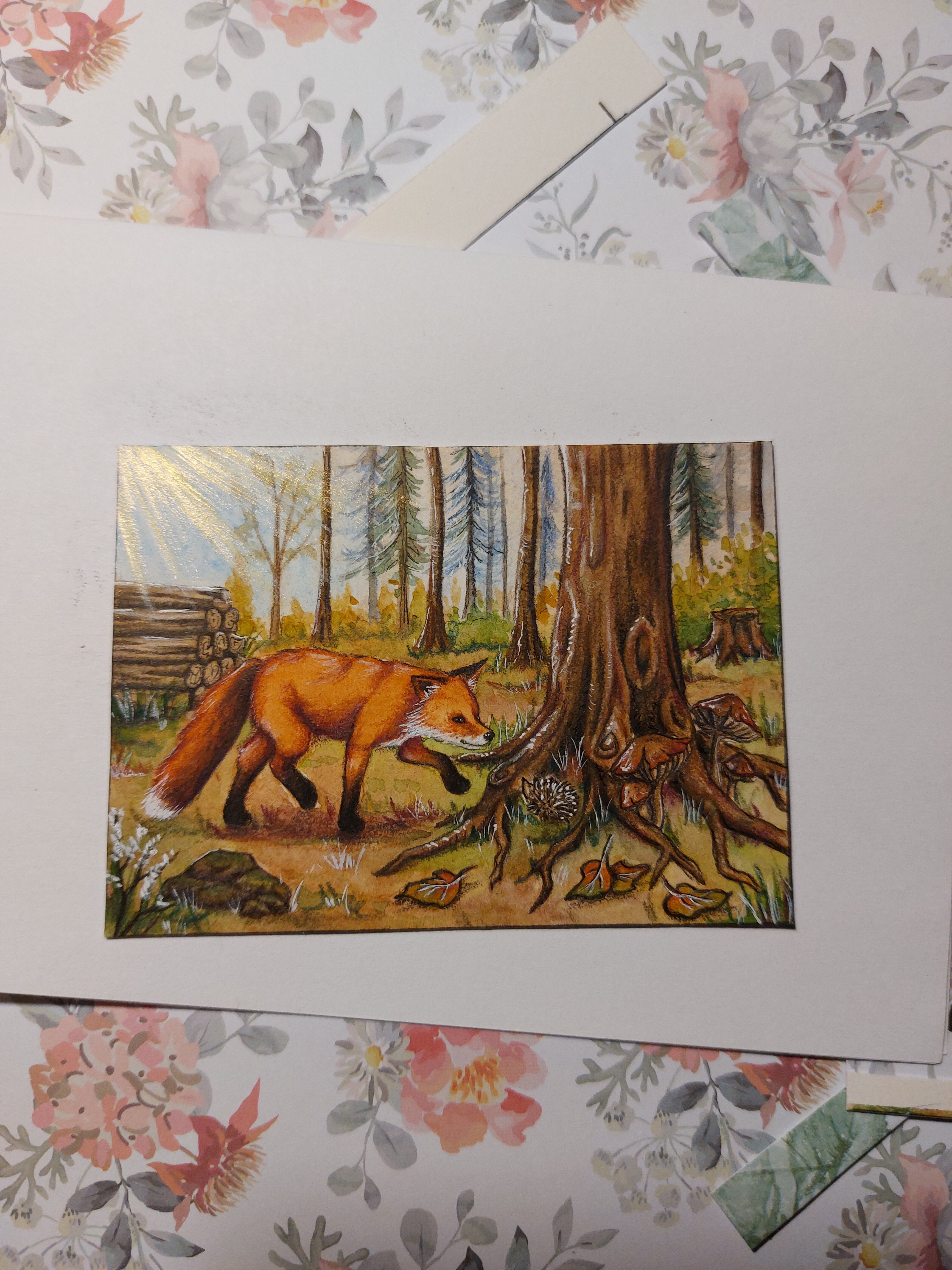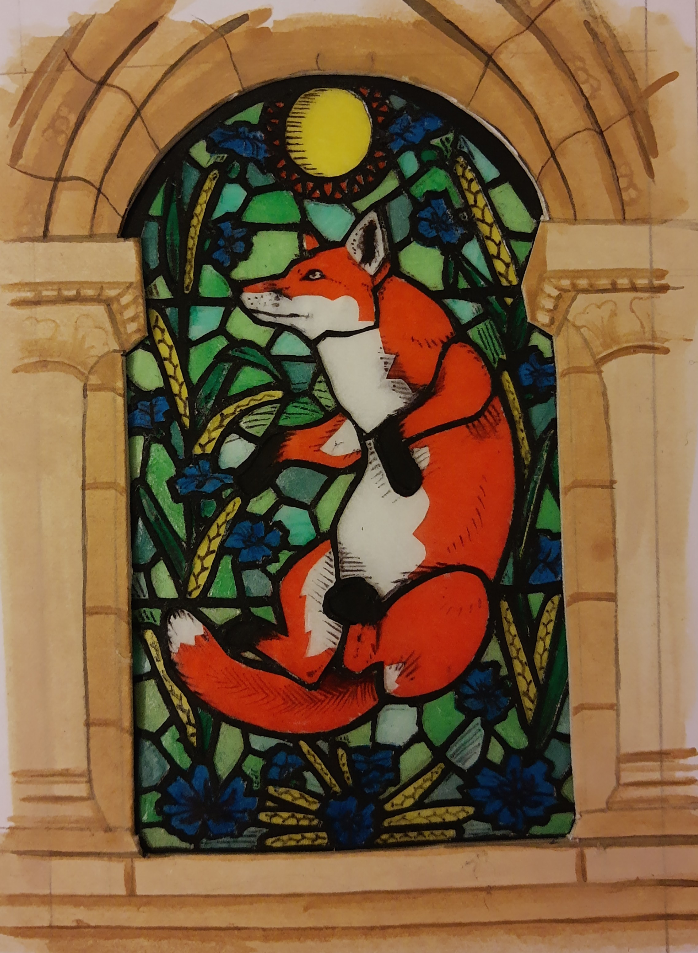hier bin ich noch suoer unsicher mit dem hintergrund. ich weiß nicjr, ob der fuchs in einen normalen wald gehen soll oder in einen wald aus riesigen pilzen, das muss ich mir noch überlegen
