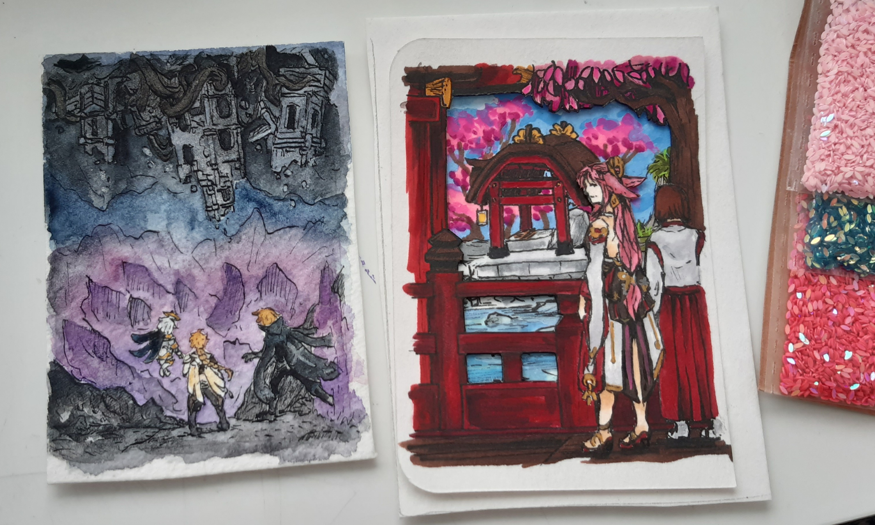 Hier mal mein Zwischenstand - eine Karten gelingt, eventuell mach ich das in grau auch bei der Ayaka Karte. Bei Nilou tanzen spiele ich mit den Gedanken noch andere Charts einzubauen, mal gucken :3