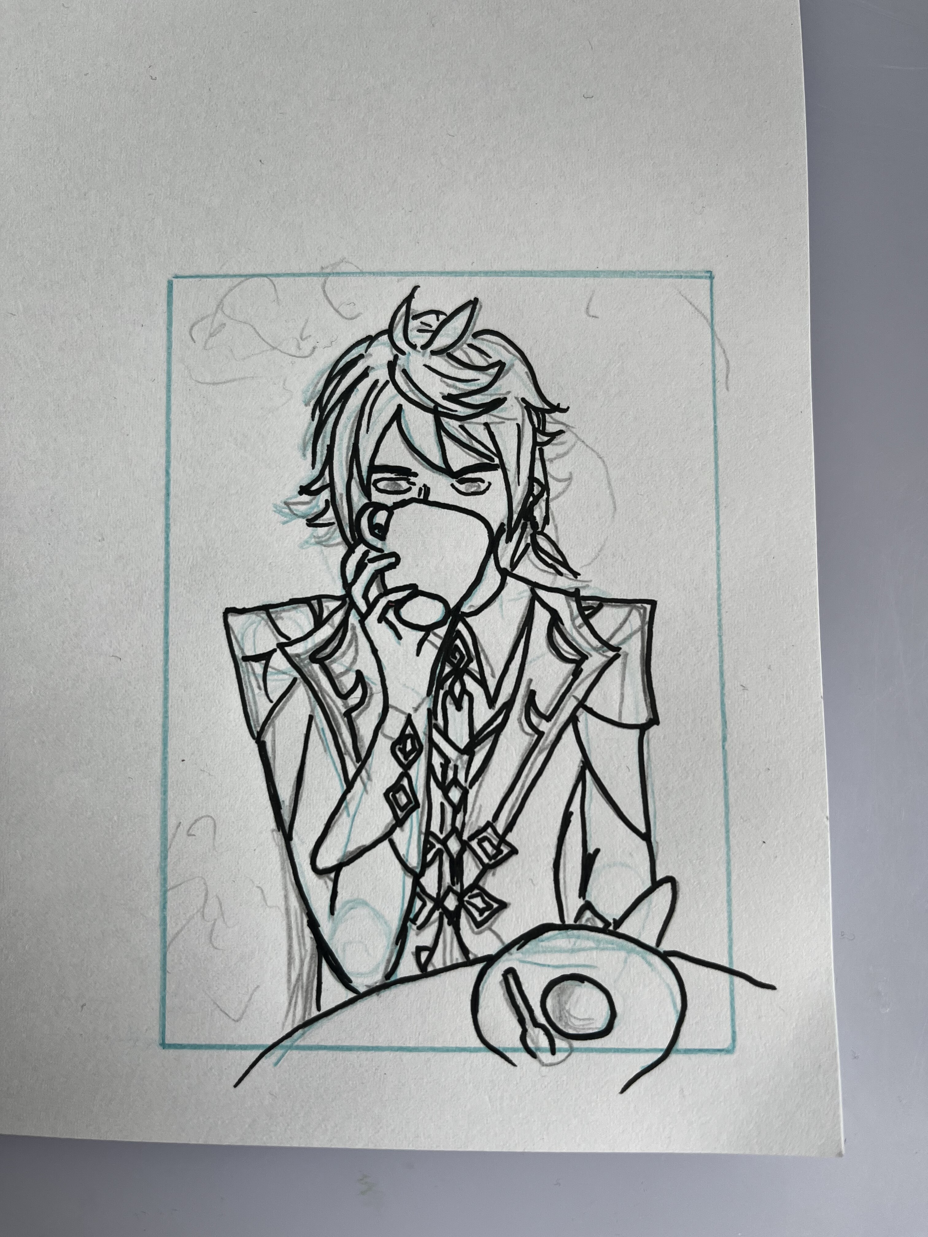 Achja die Skizze die ich gemacht habe hatte ich ja garnicht gezeigt. Die Details werden beim linen dann feiner und genauer, und natürlich dann auch mit Hintergrund