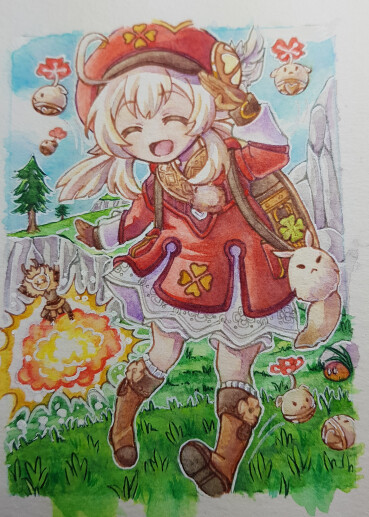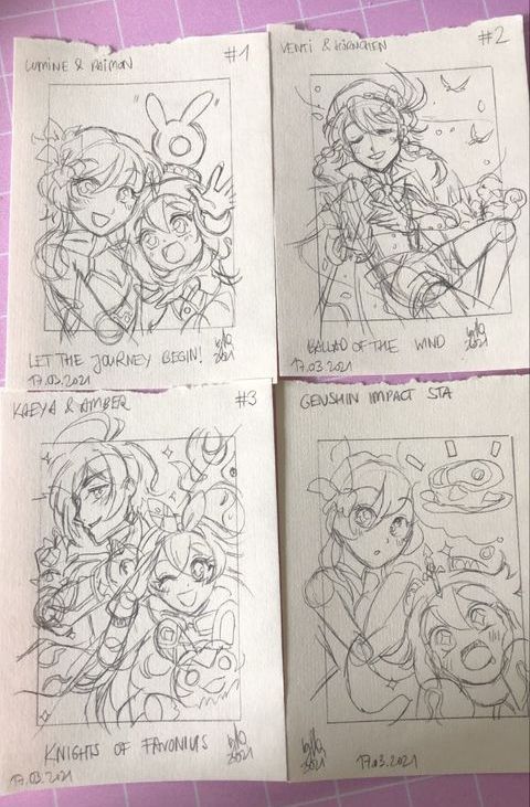 Die letzte Karte mit Paimon war eine Idee, aber irgendwie wollte sie sich nicht so hin entwickeln wie gedacht, daher ist sie einfach nur zur “Deko” mit auf dem Foto