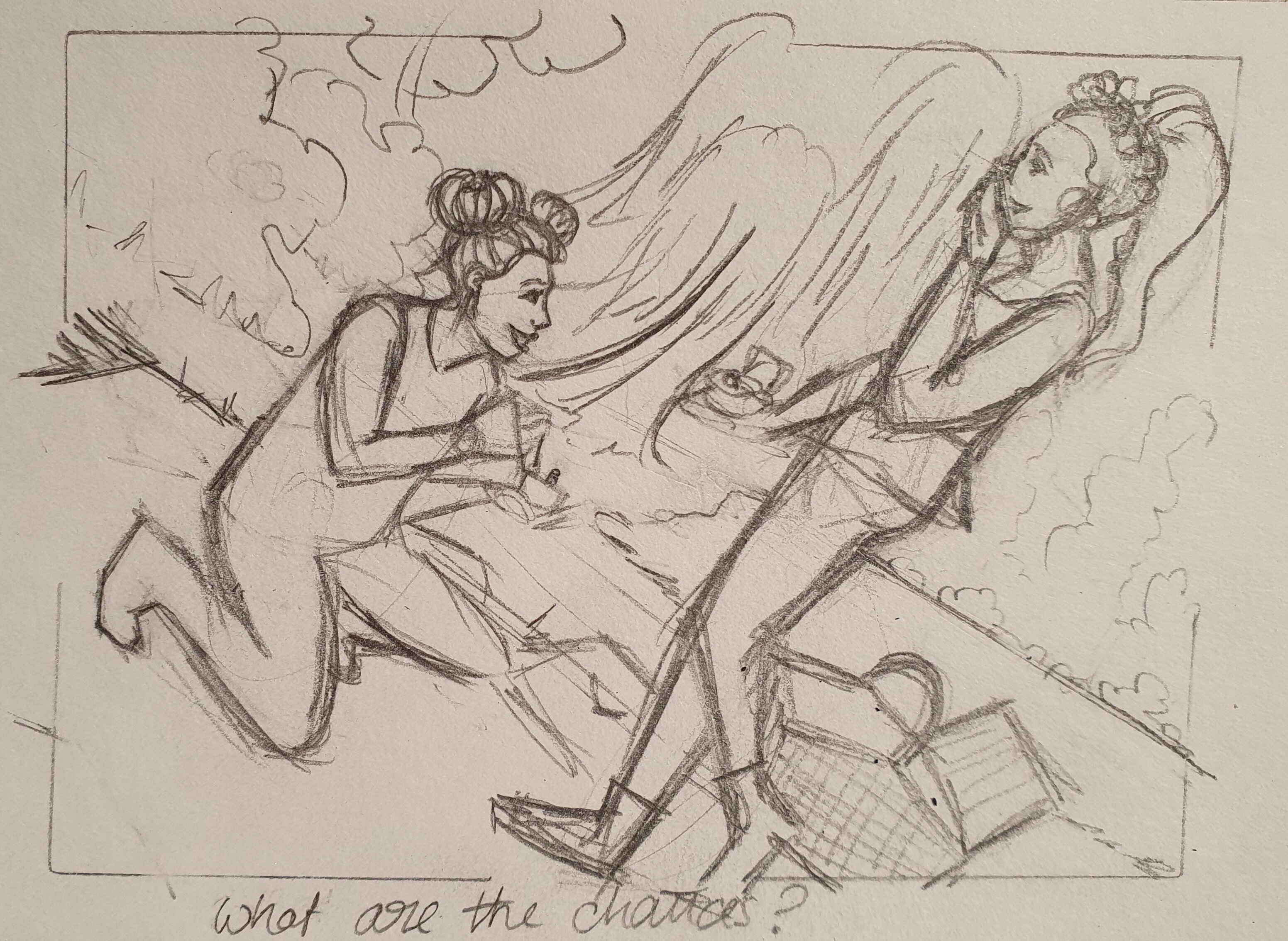 Meine ursprüngliche dritte Skizze hab ich verworfen und durch zwei Schäferinnen ersetzt (meine Skizzen sind leider immer ein bisschen sehr locker und wuselig xD)
